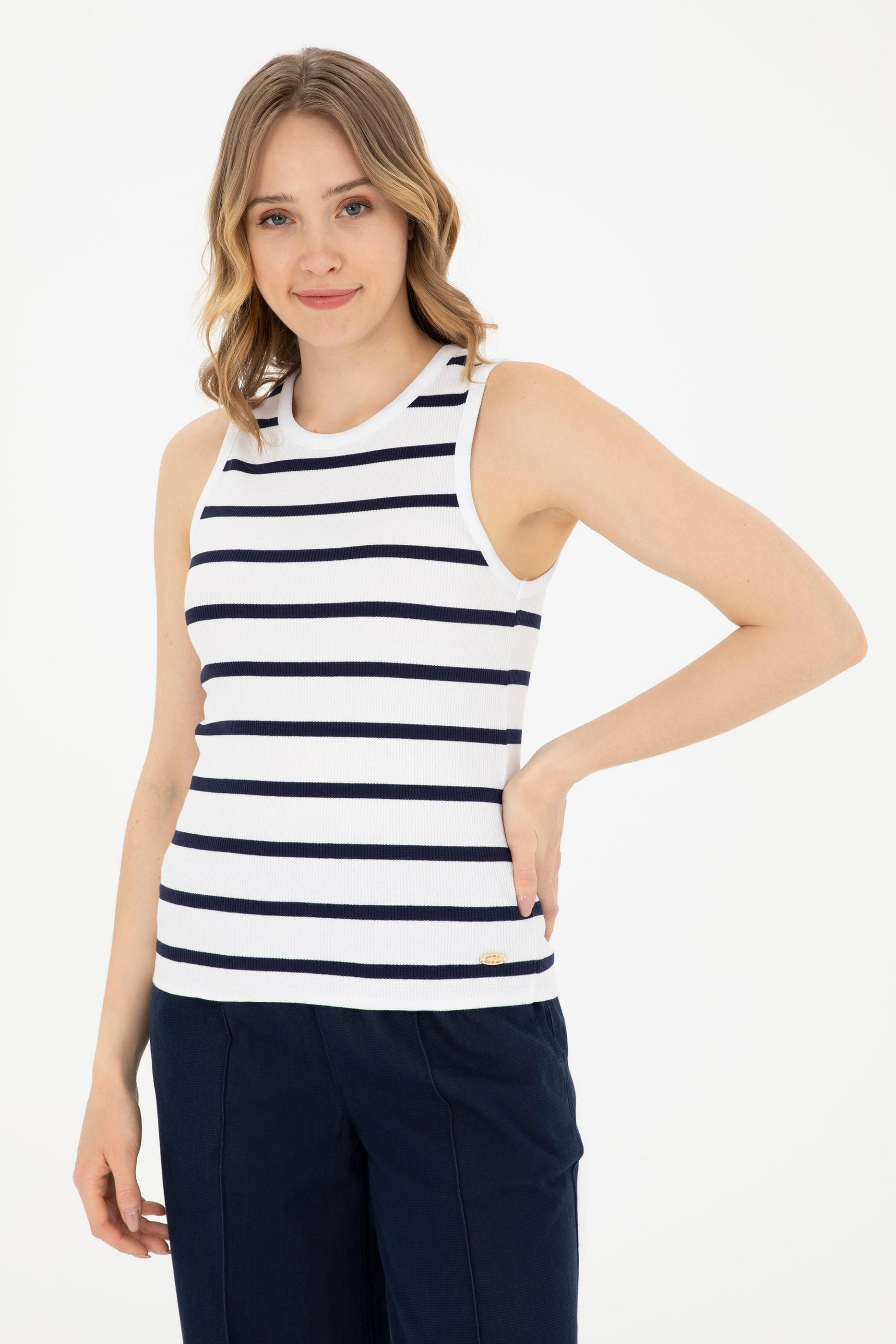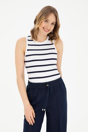 Kadın Beyaz Kolsuz Bisiklet Yaka Tişört