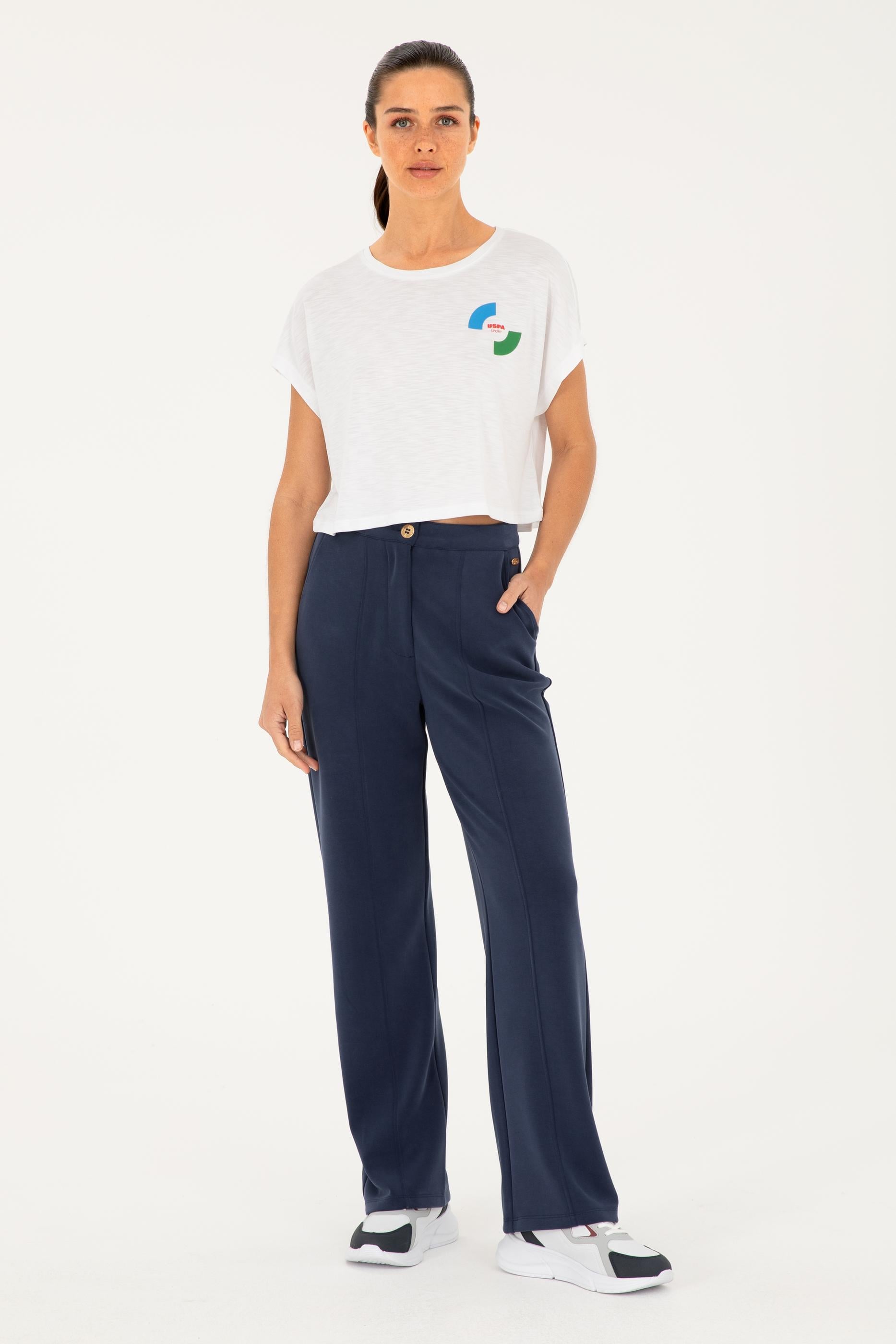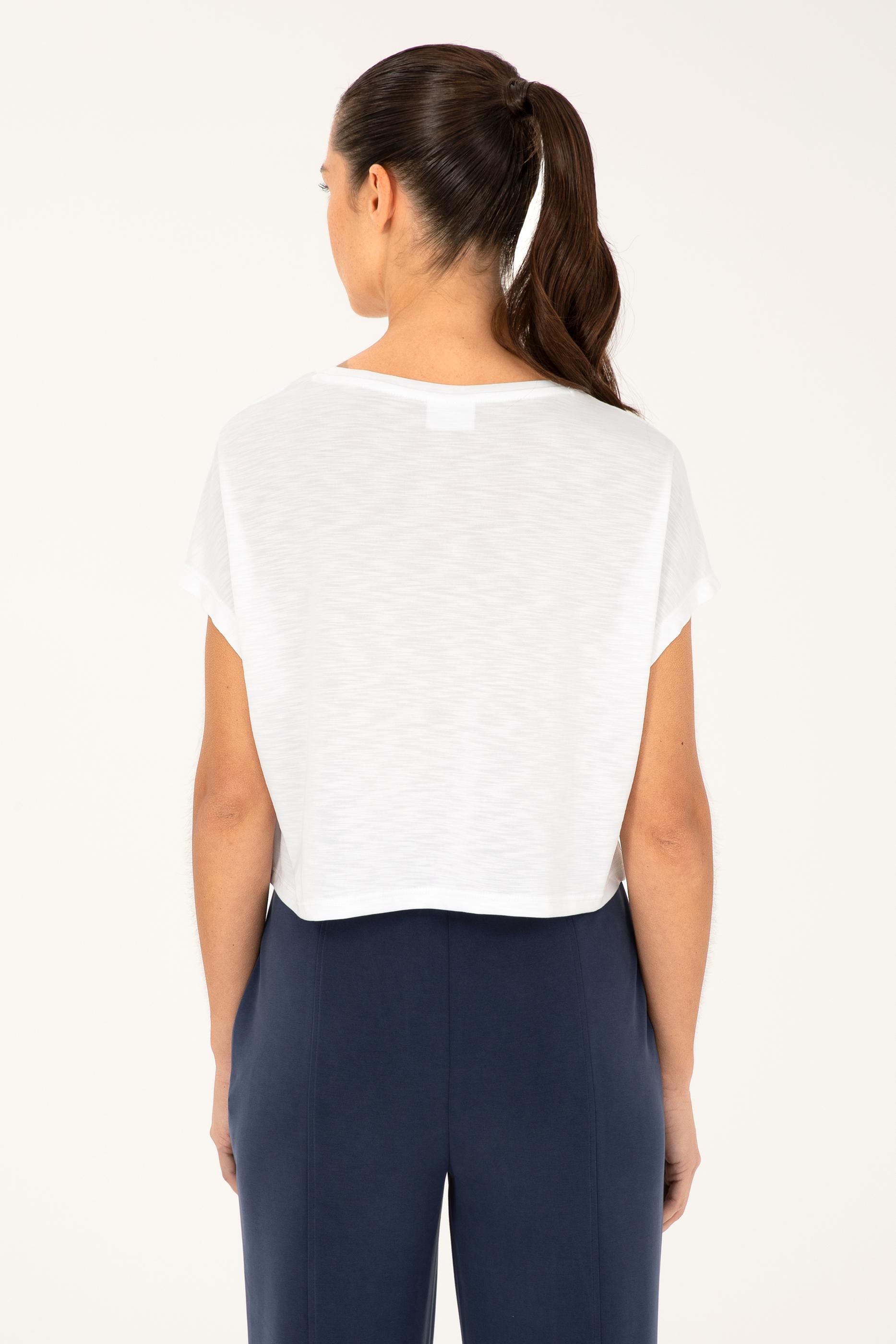 Kadın Beyaz Bisiklet Yaka Tişört