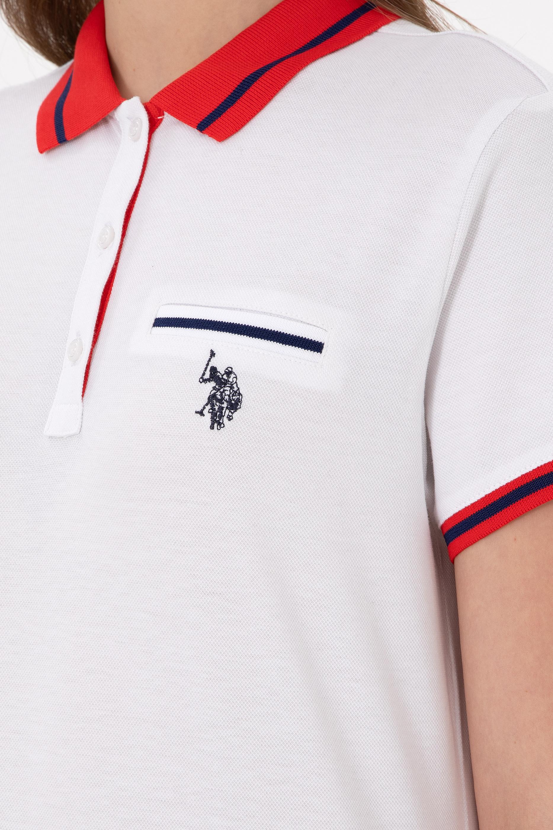 Yaka kollarda özenle tasarlanmış kırmızı detaylar tişörte modern bir hava katarken, göğüs kısmındaki küçük logo işlemeleri ile dikkat çekiyor. Gardırobunuzda mutlaka yer alması gereken bu parça, günlük şıklığınızı mükemmel şekilde tamamlayacak.