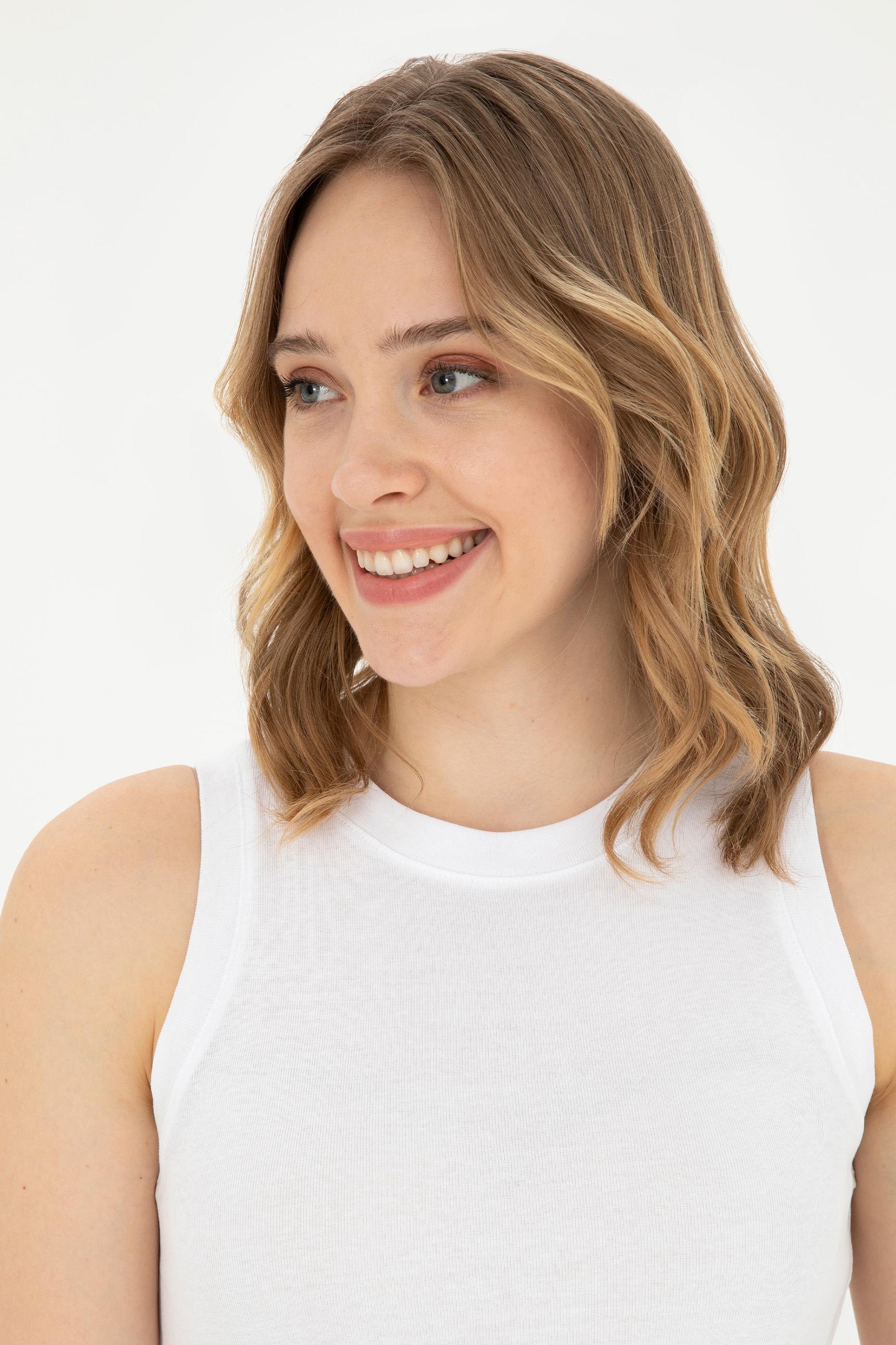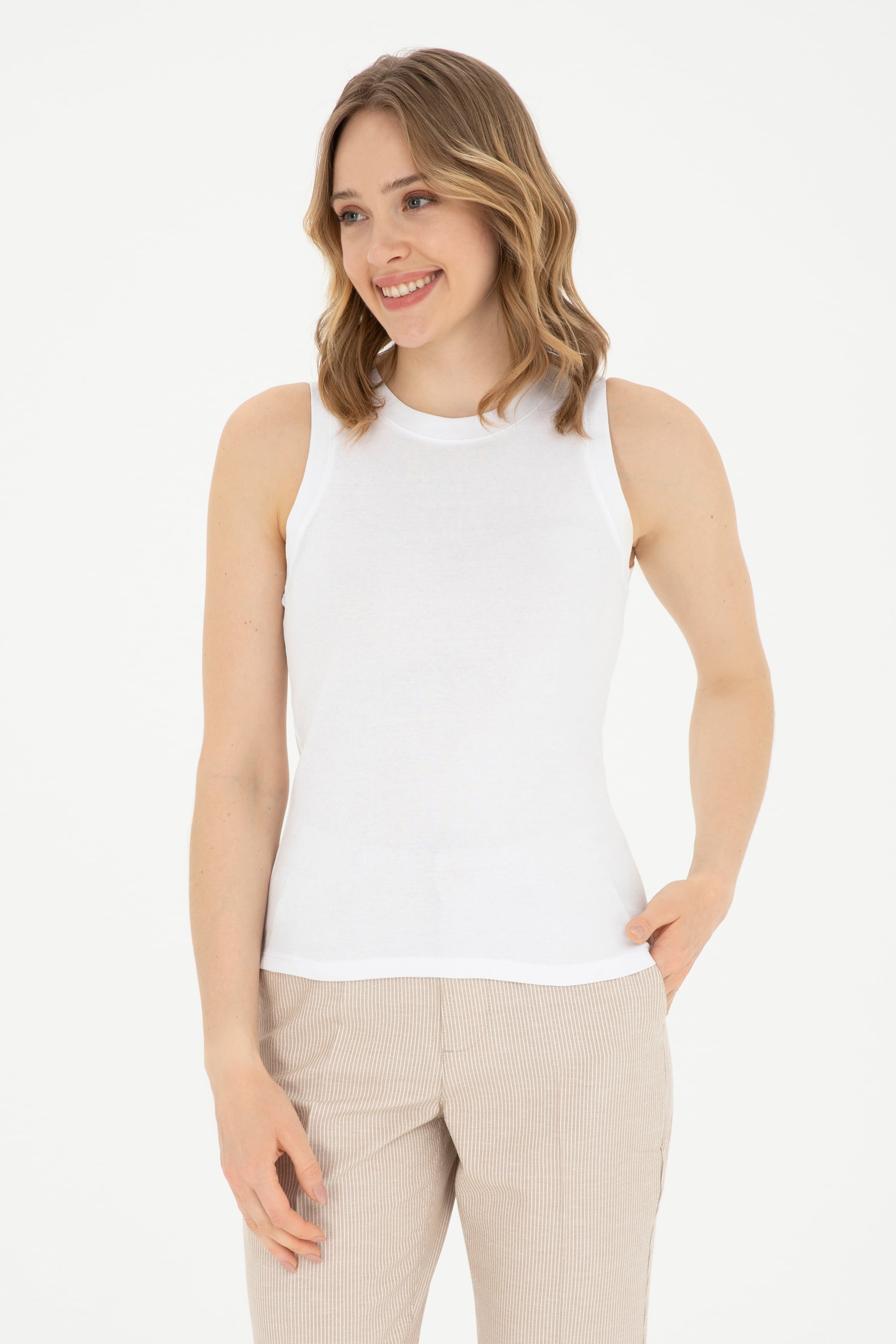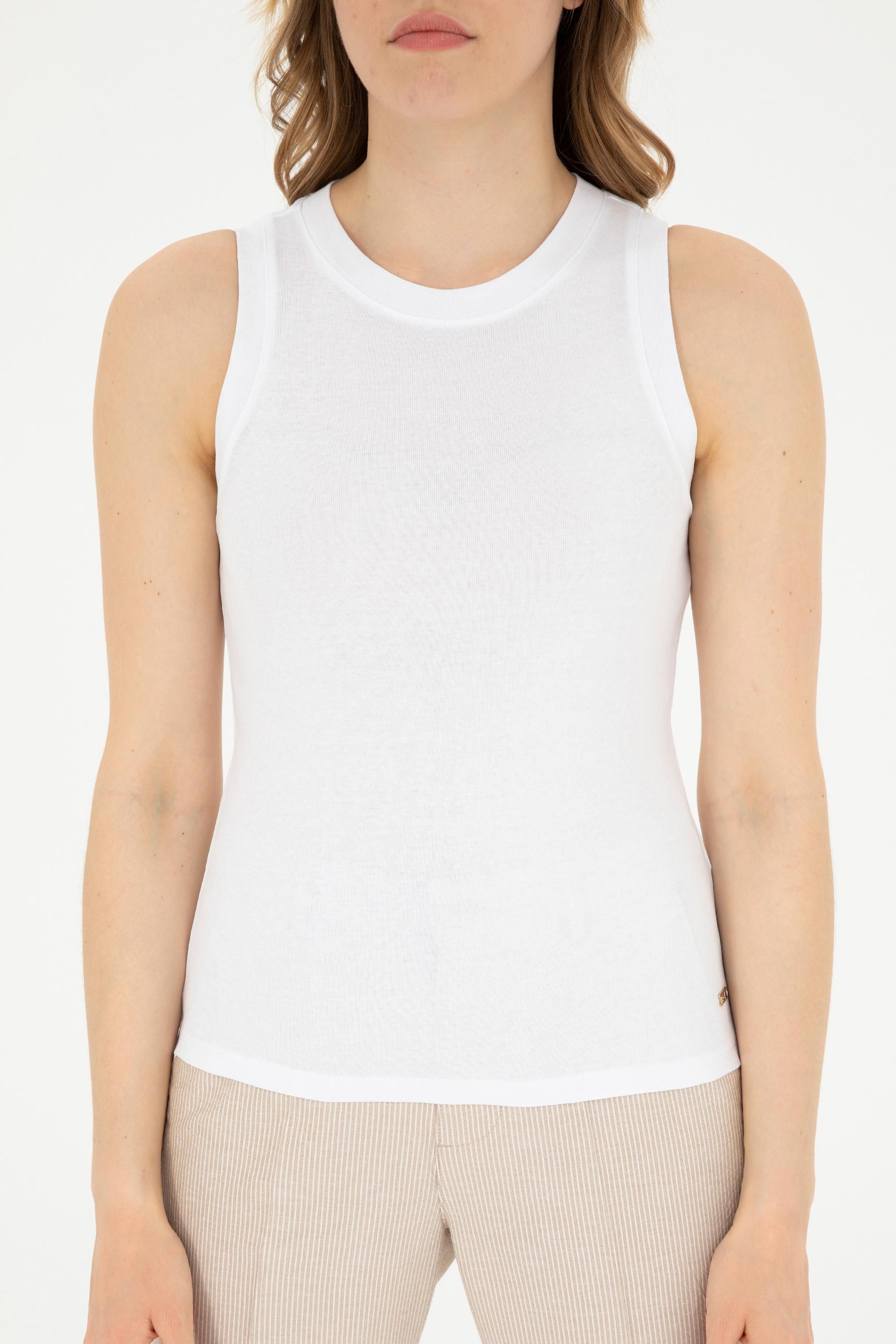 Kadın Beyaz Bisiklet Yaka Kolsuz Tişört