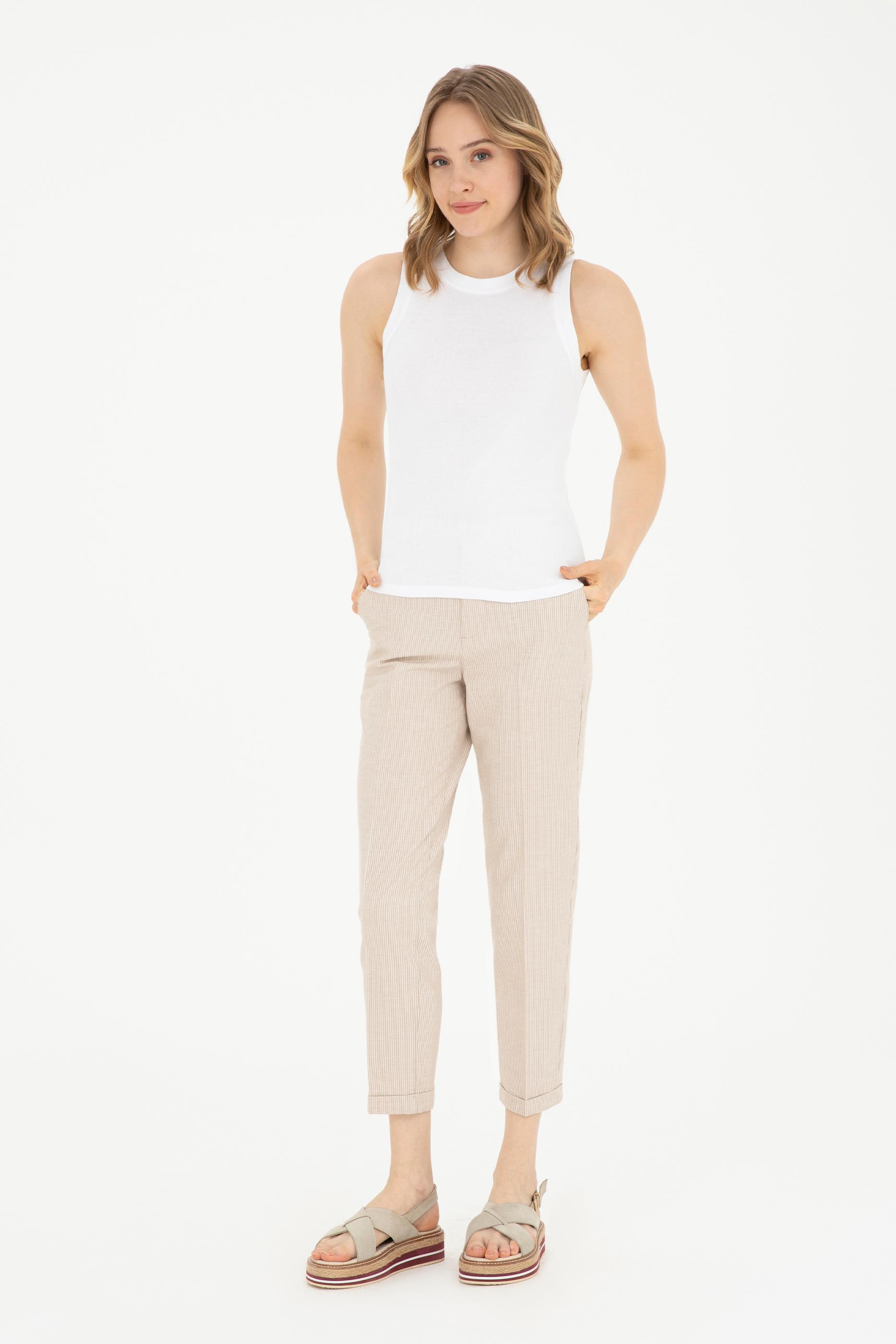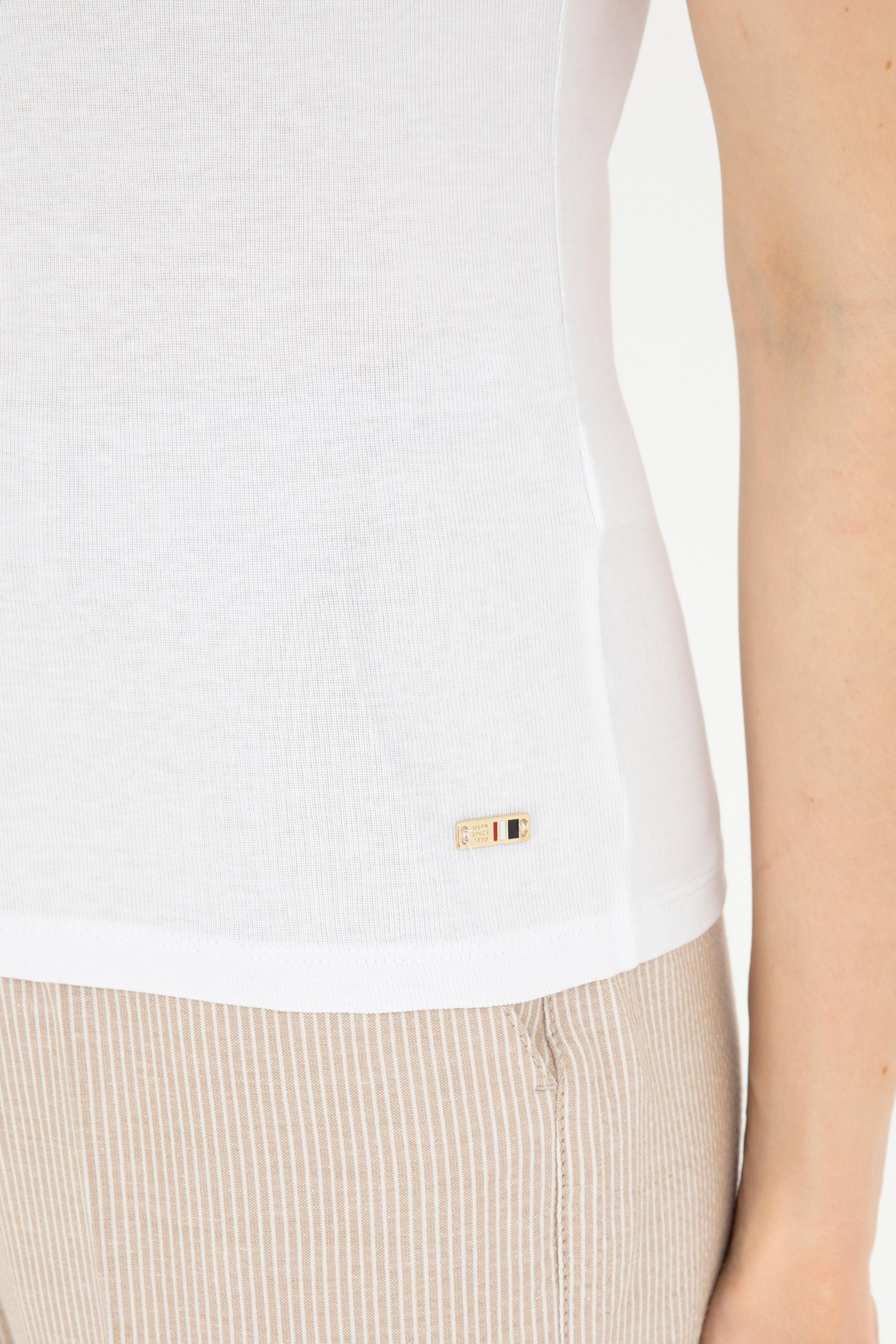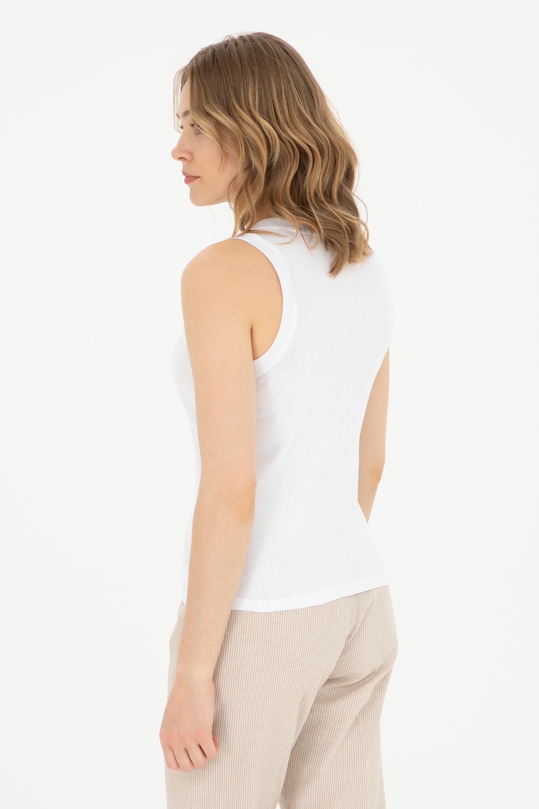Kadın Beyaz Bisiklet Yaka Kolsuz Tişört