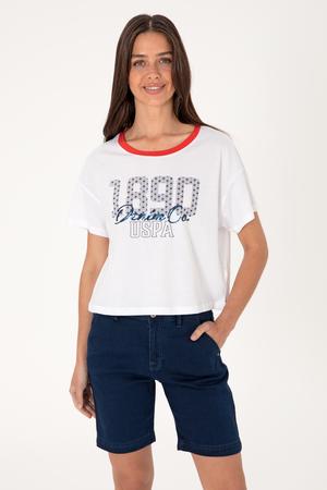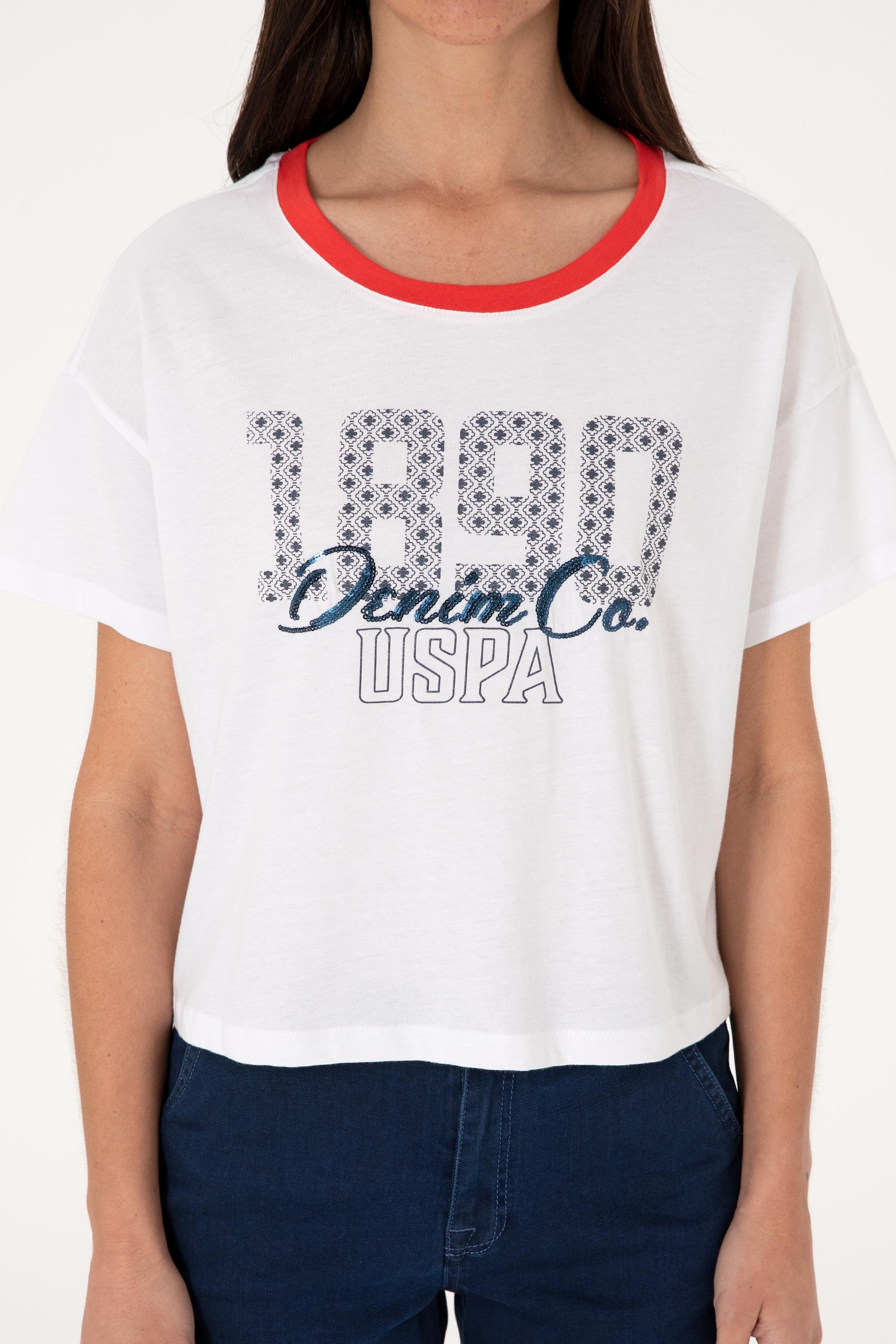 - Kadın Beyaz Bisiklet Yaka Tişört