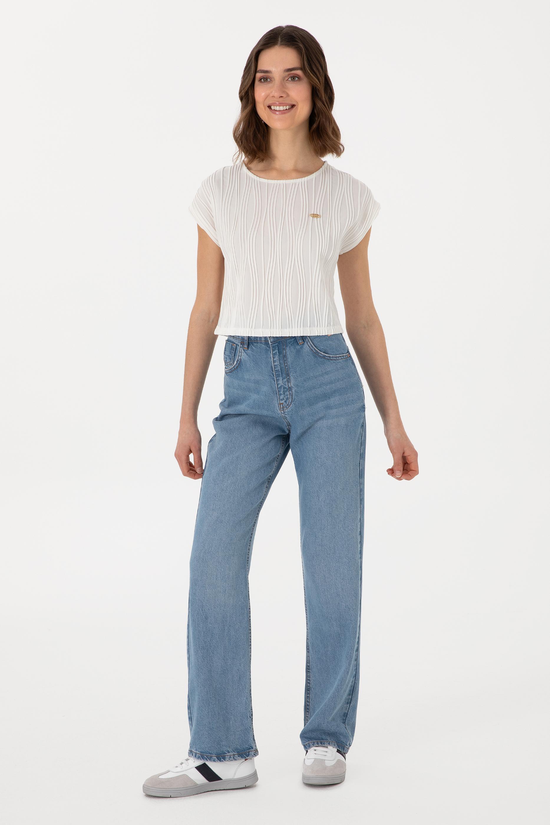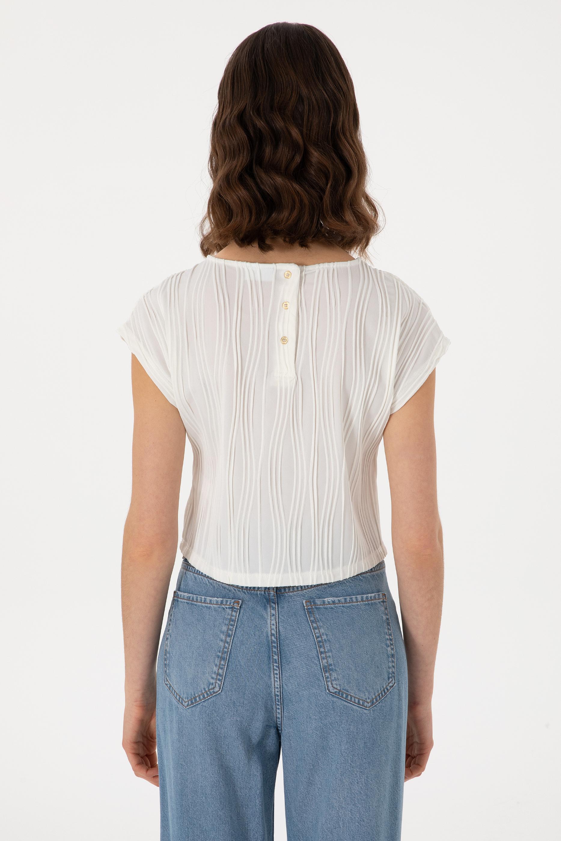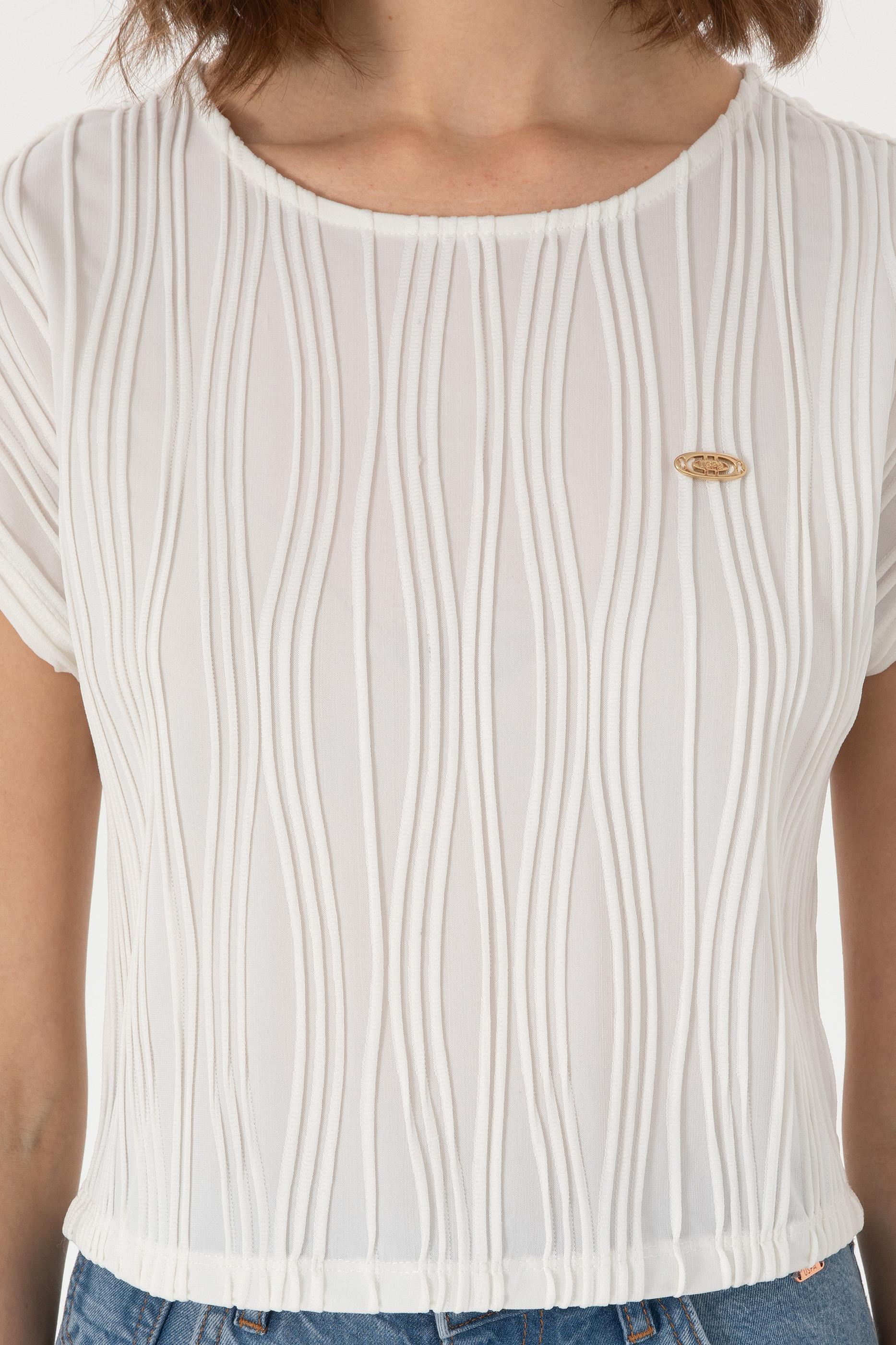 - Kadın Beyaz Crop Bisiklet Yaka Tişört