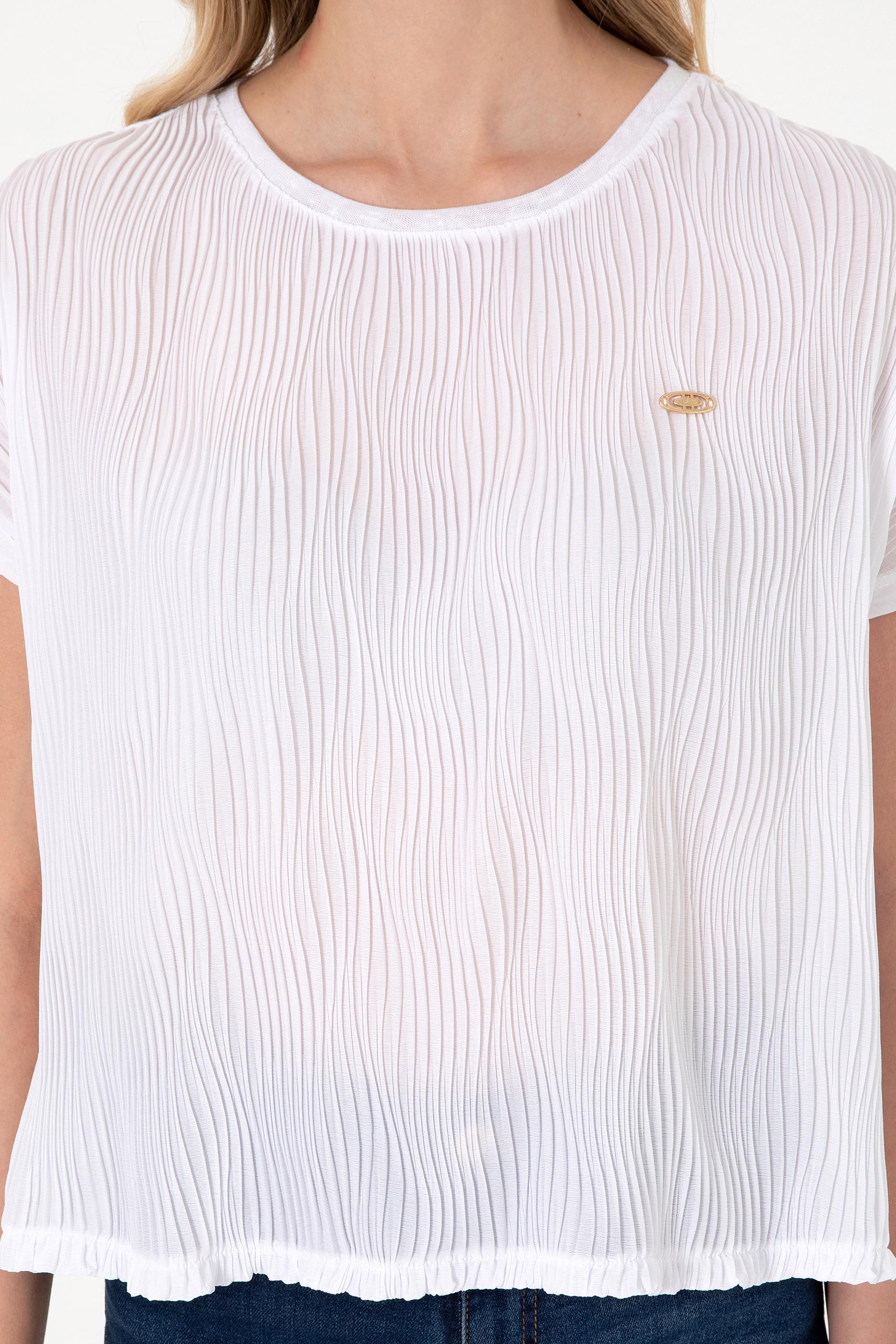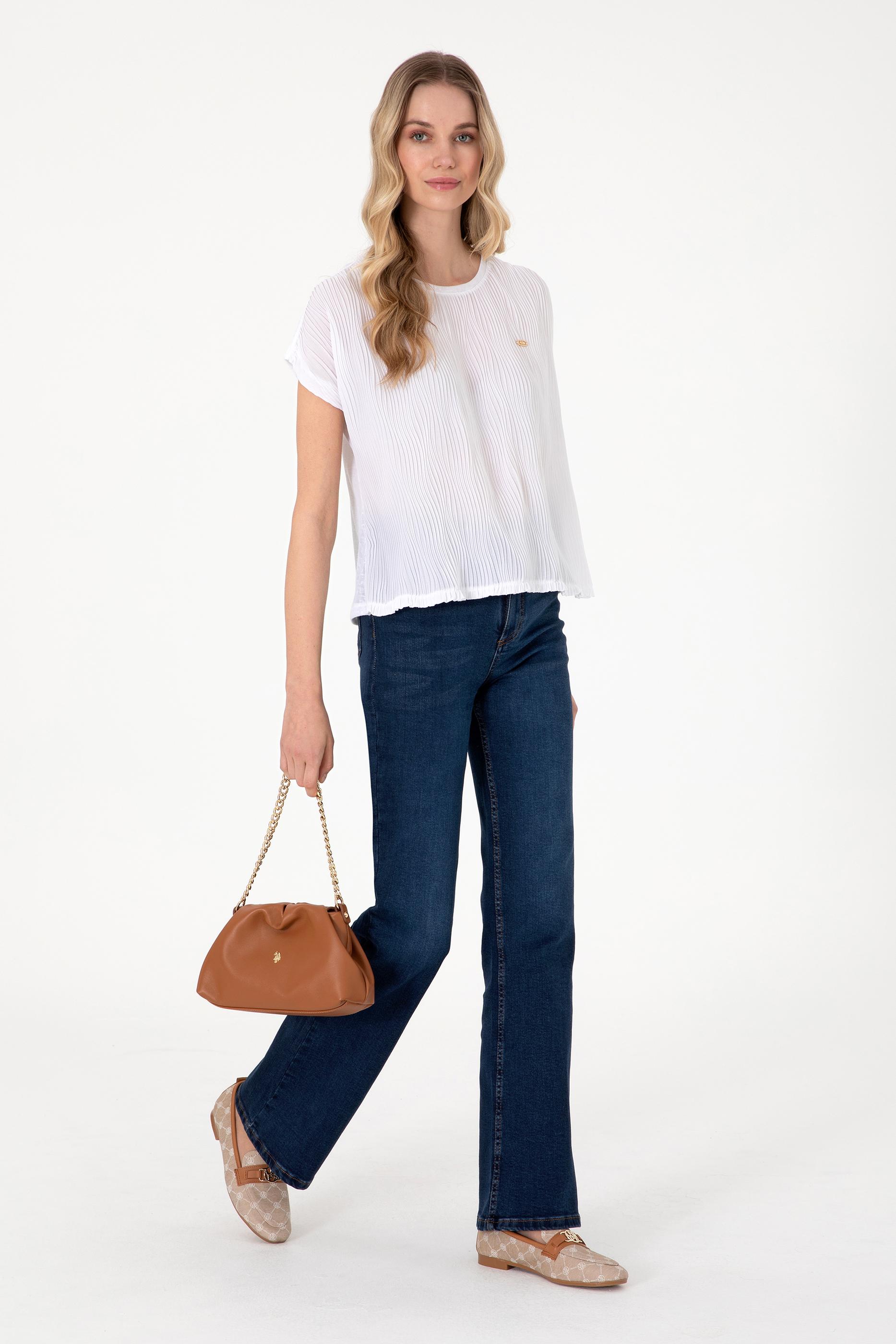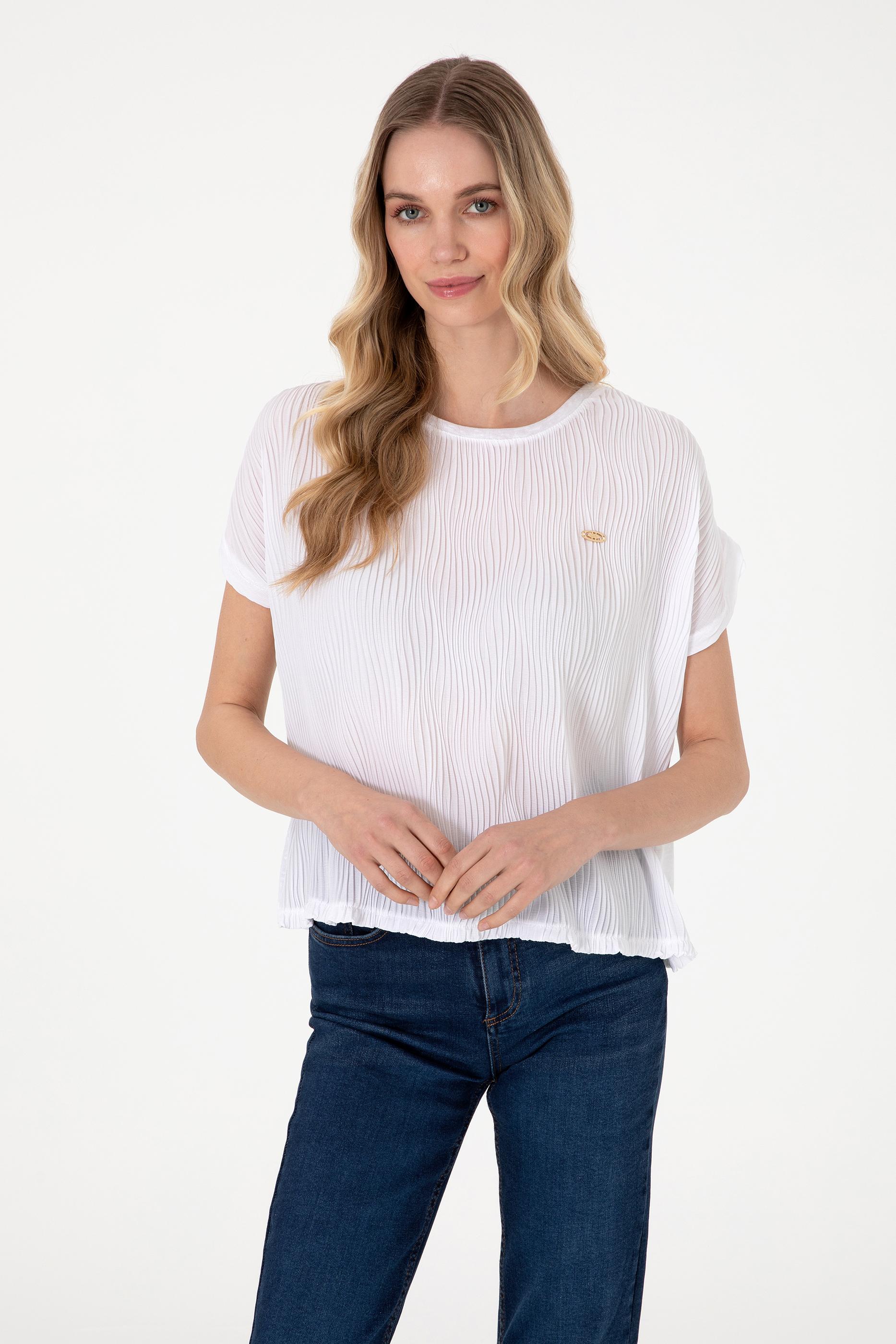 Kadın Beyaz Bisiklet Yaka Tişört