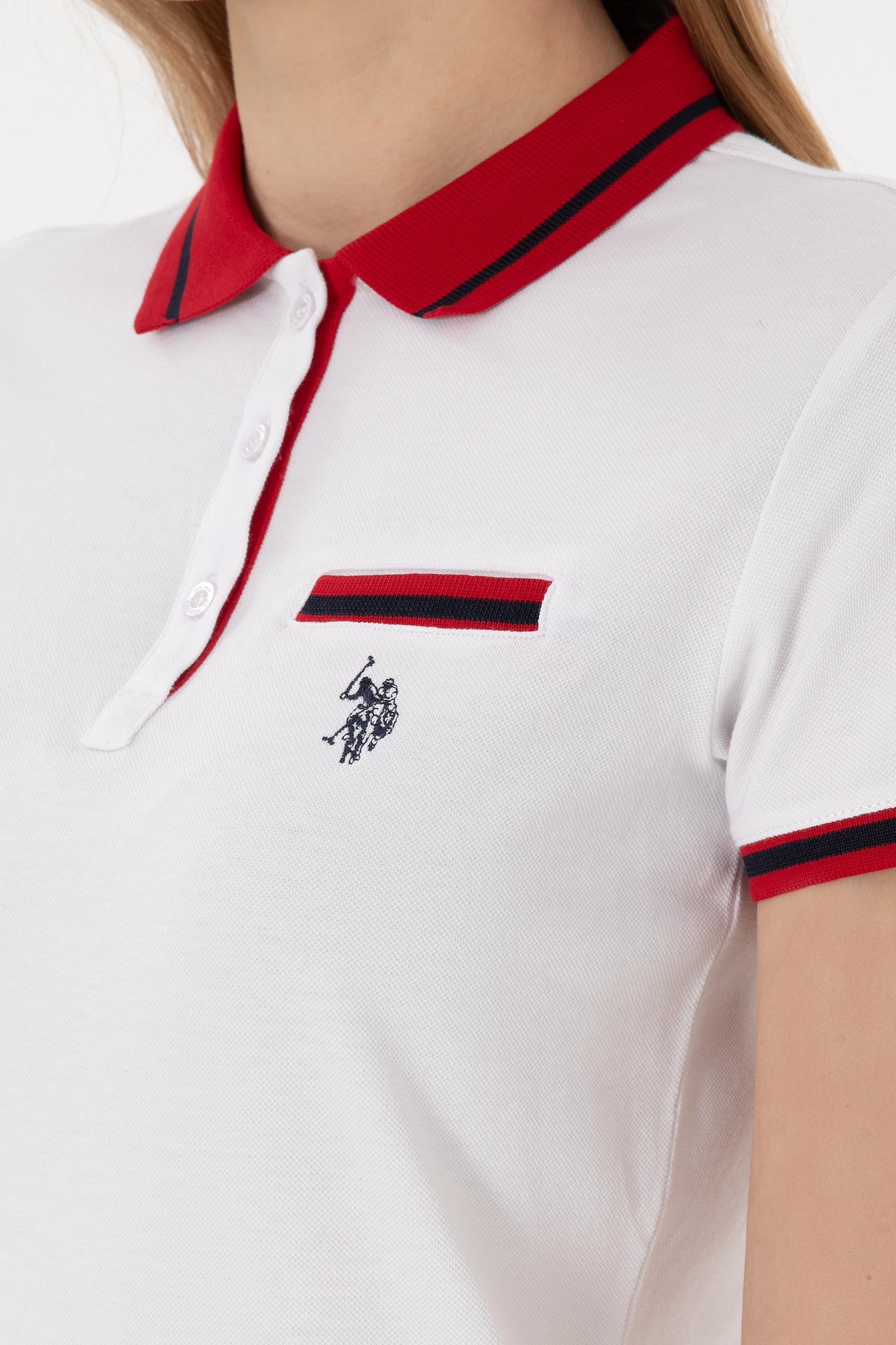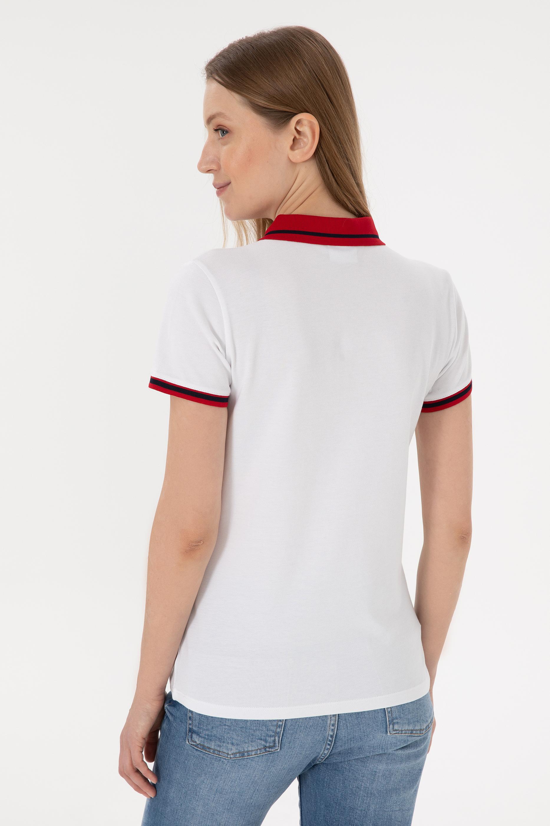 Modern kesimi ve şık detaylarıyla öne çıkan U.S. Polo Assn. kadın beyaz slim fit tişört, tarzınıza zarif bir dokunuş katıyor. Polo yaka tasarımı ve kırmızı renkli yakasıyla klasik bir şıklık sunarken, slim fit kesimi sayesinde vücut hatlarınızı nazikçe vurguluyor. Sol göğüste yer alan cep detayı ve üzerinde bulunan marka logosu, tişörte özel ve özgün bir hava katıyor. Beyaz rengi dinamik bir görünüm yaratırken, tişörtü hem günlük hayatınızda hem de spor kombinlerinizde rahatlıkla tercih edebilirsiniz. Jeanlerden şortlara kadar pek çok farklı alt giyimle uyum sağlayarak, stilinizi kolayca tamamlar. U.S. Polo Assn. kalitesiyle tasarlanan bu polo yaka tişört, gardırobunuzun en özel parçalarından biri olmaya aday. Her anınızda şıklığı ve rahatlığı birlikte yaşamak için ideal seçim!