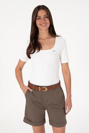 U.S. Polo Assn. beyaz kare yaka tişört, sade çizgilerini zarif bir duruşla buluşturuyor. Bel hattını nazikçe kavrayan kalıbı, vücuda dengeli bir oturuş sağlarken, kısa kollu yapısı onu gün boyu rahatlıkla tercih edilebilecek bir parça haline getiriyor. Kare yaka detayı ise klasik siyah renge modern bir dokunuş kazandırıyor. Farklı stillerle kombinlenmeye uygun bu tişört, günlük görünümlerde şıklığı yakalamak isteyenler için şık ve işlevsel bir alternatif sunuyor.