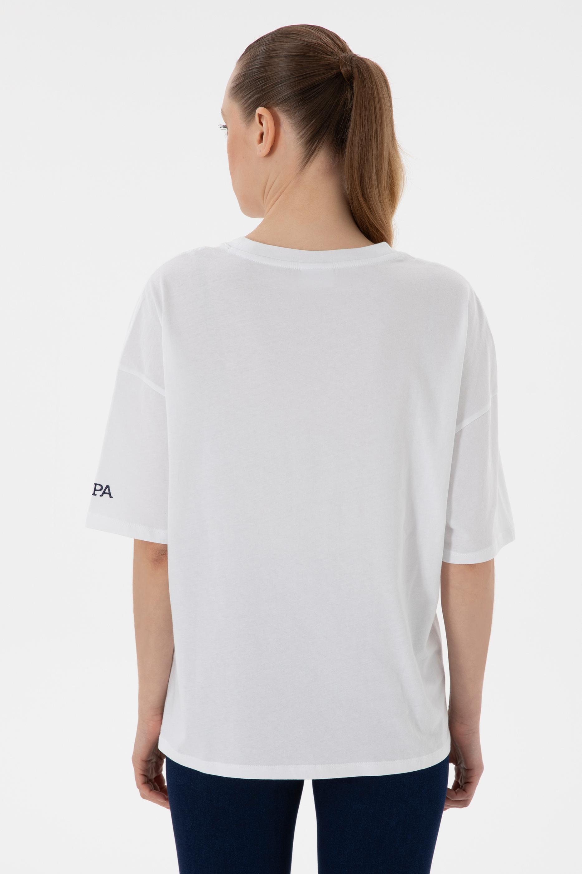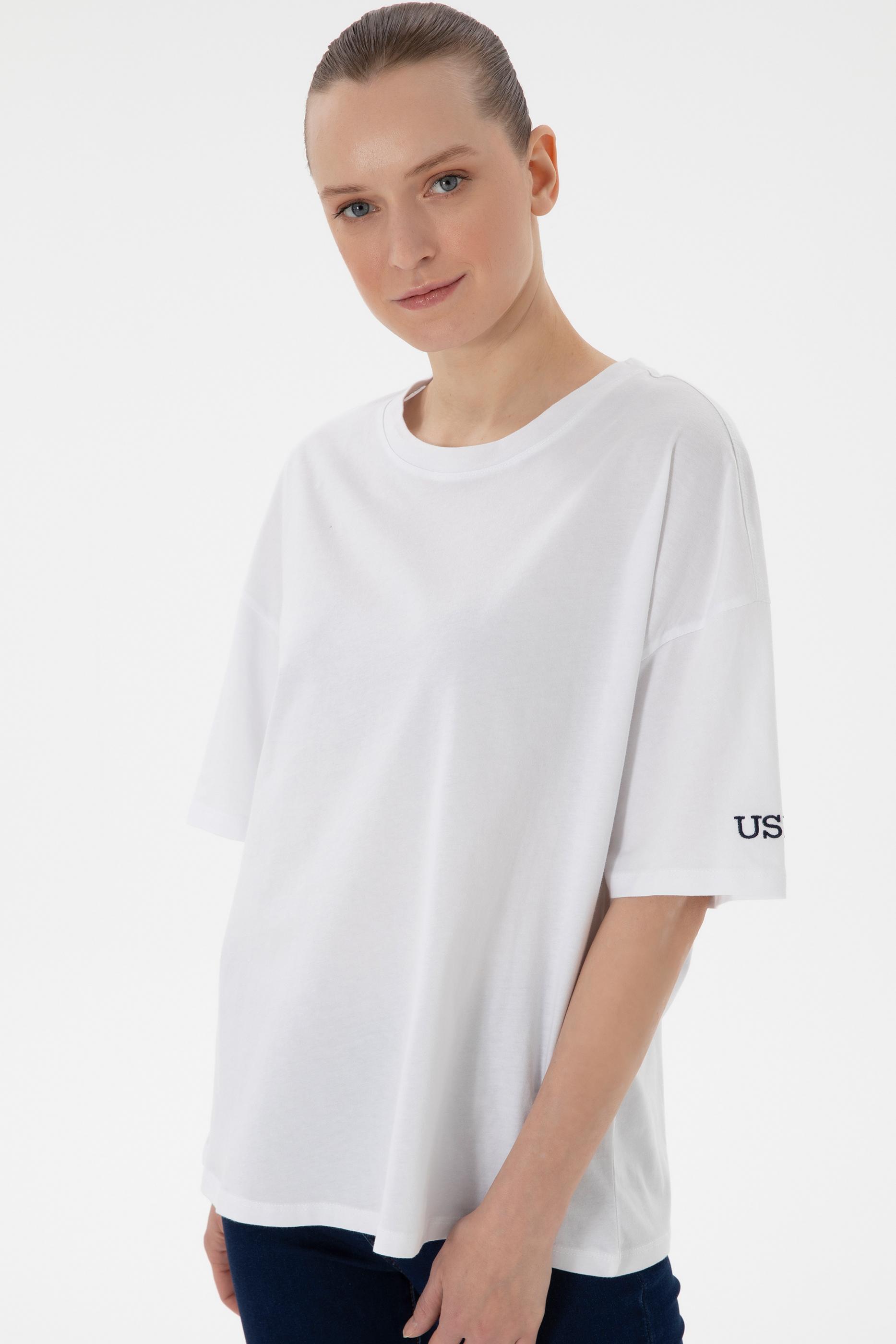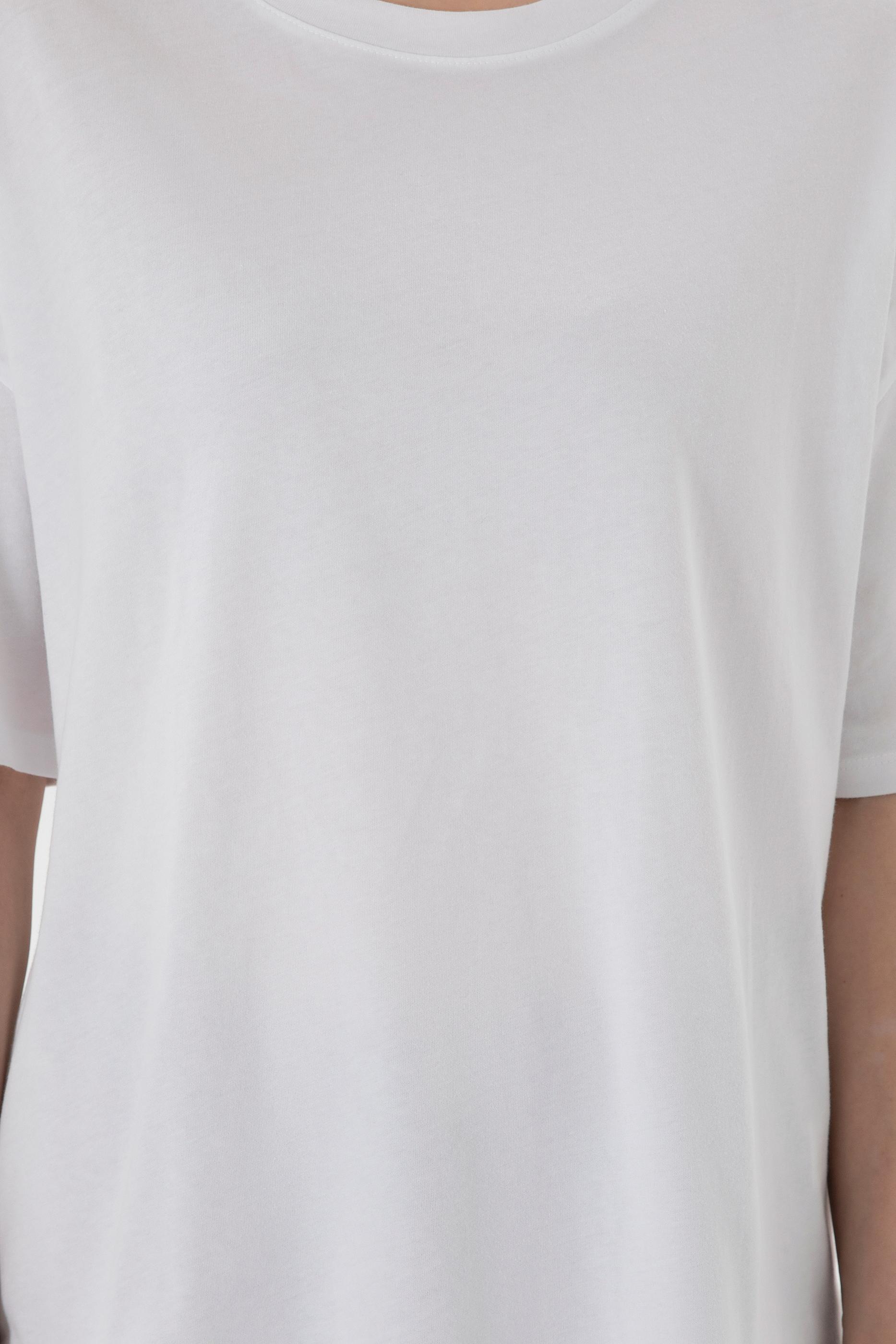 Kadın Beyaz Oversize Bisiklet Yaka Tişört