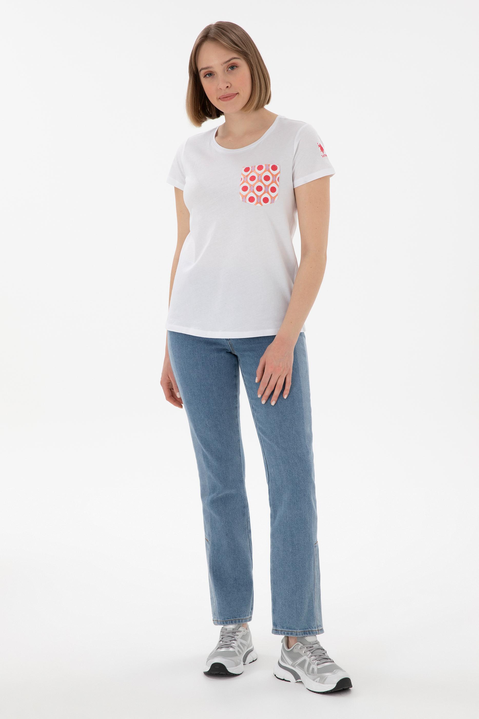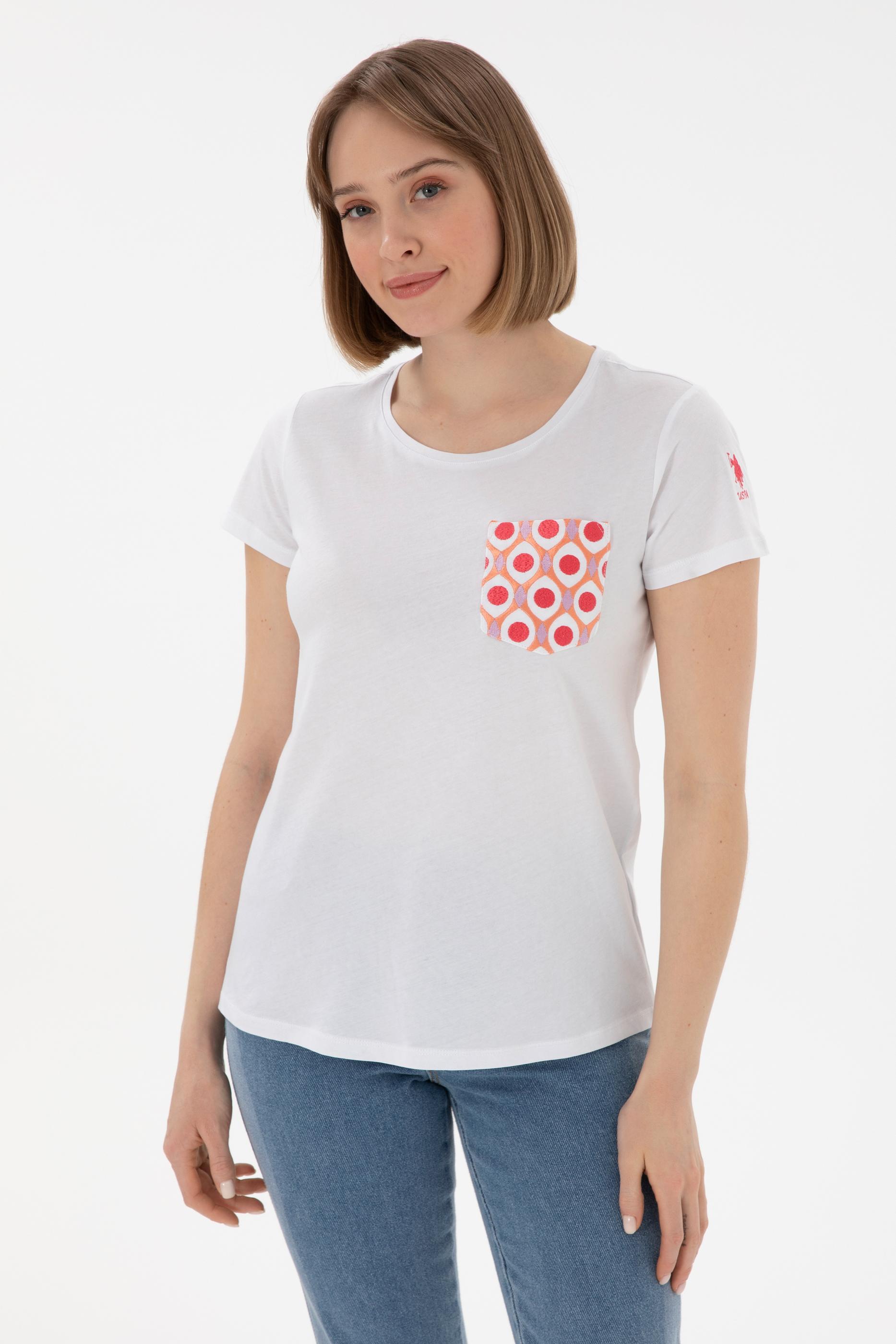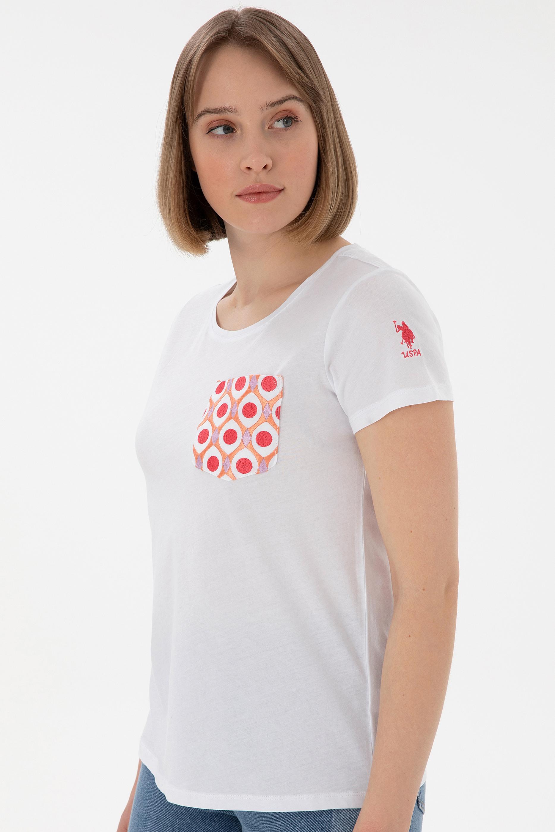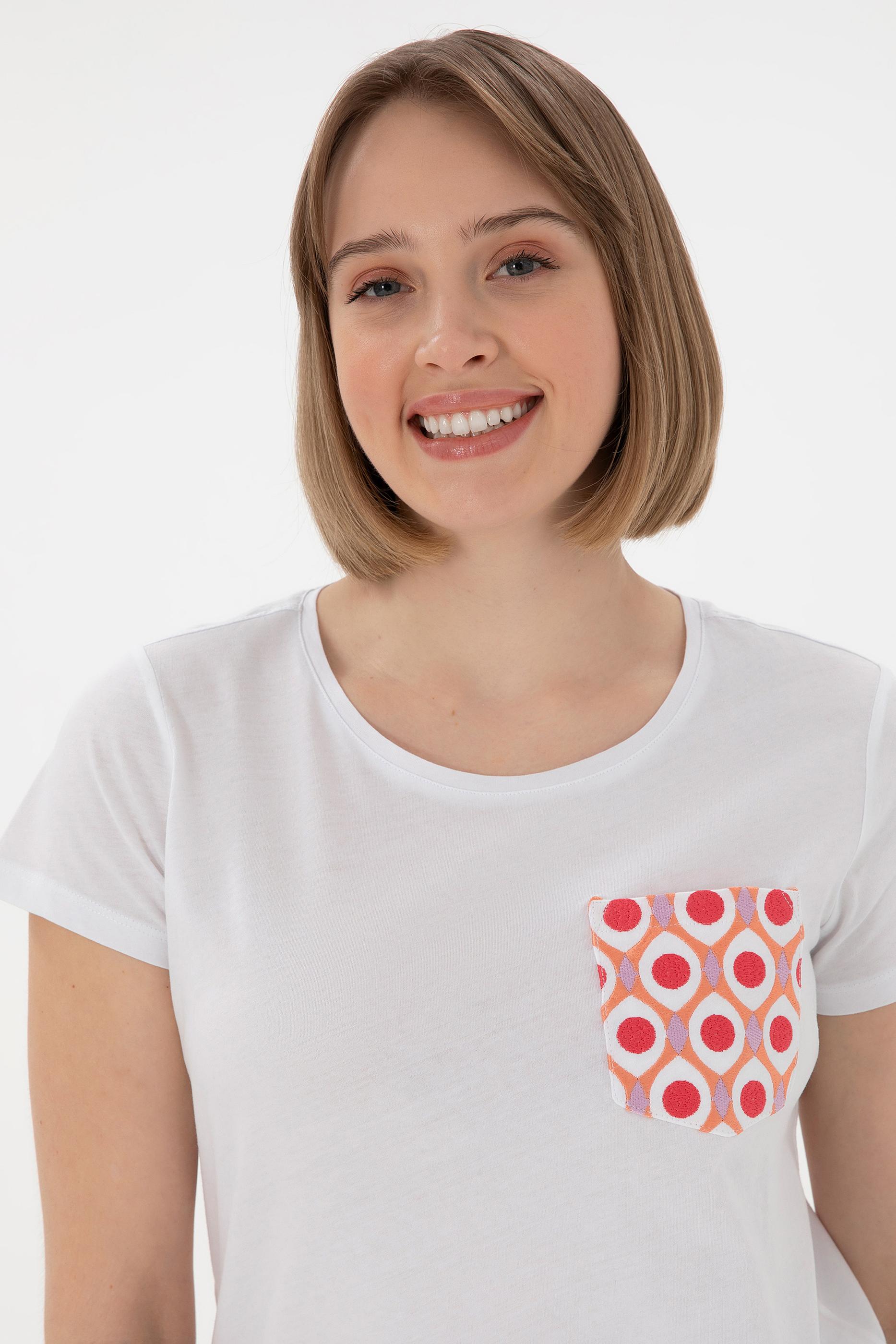 Kadın Beyaz Bisiklet Yaka Tişört