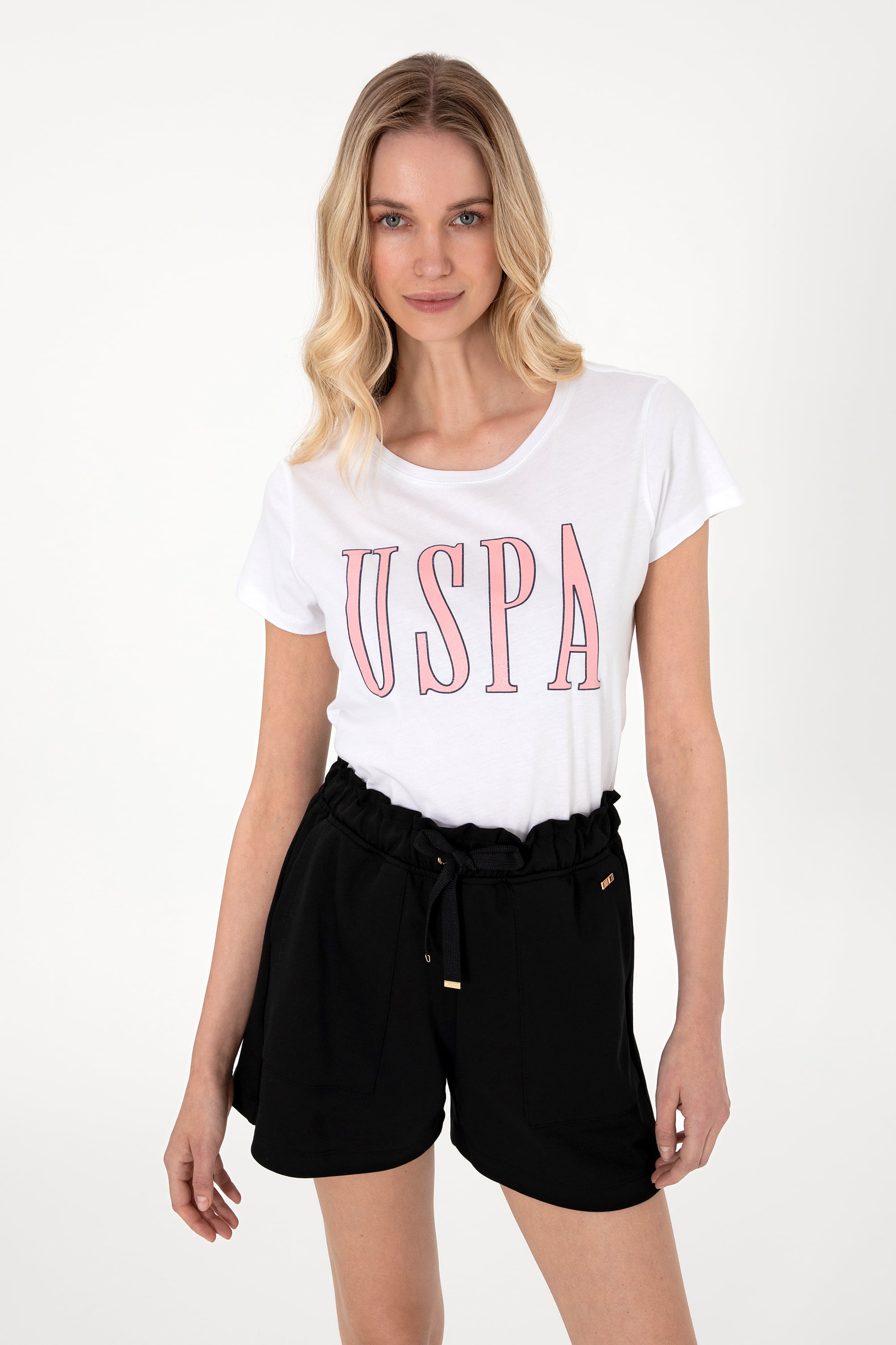 - Kadın Beyaz Bisiklet Yaka Tişört