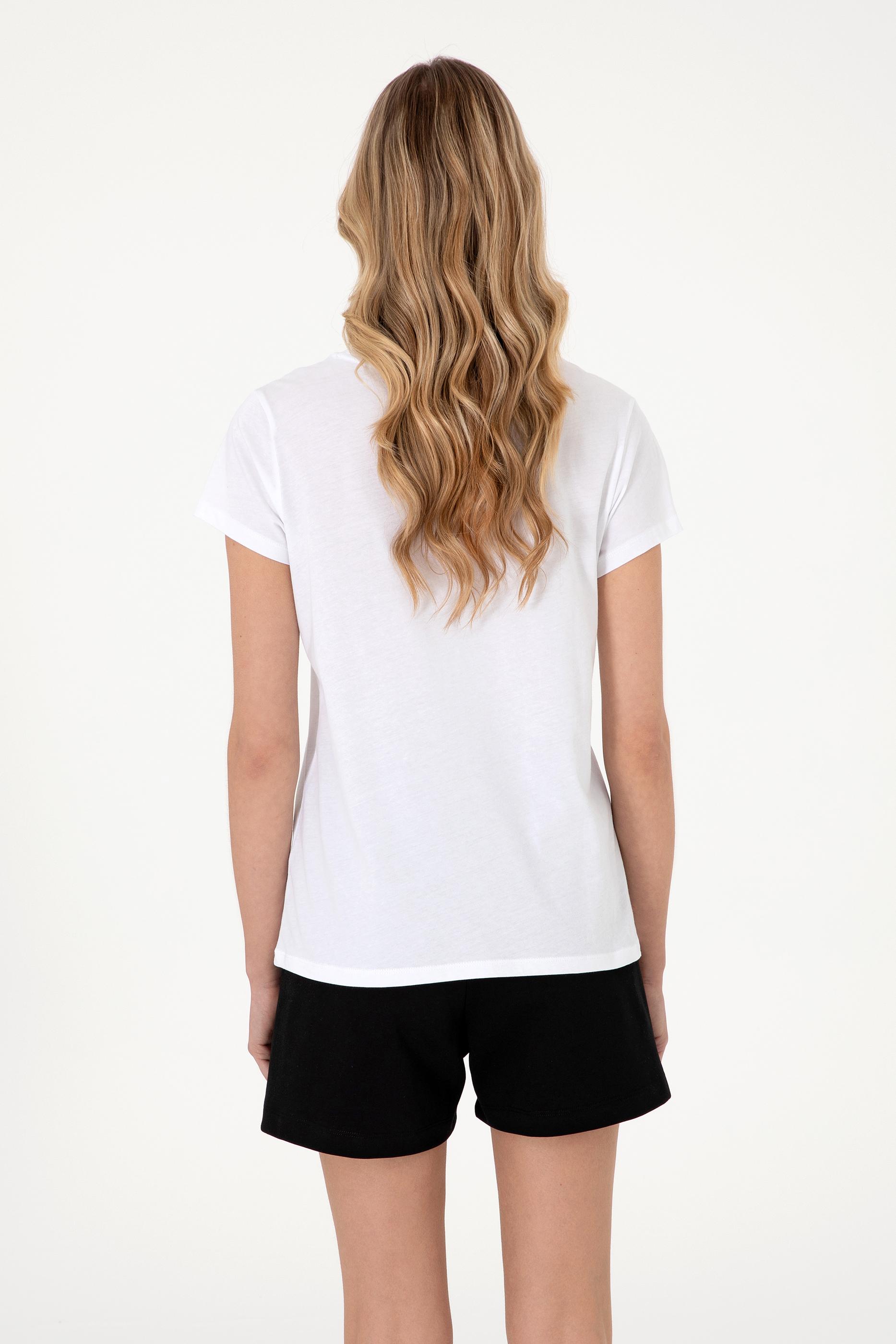 Kadın Beyaz Bisiklet Yaka Tişört