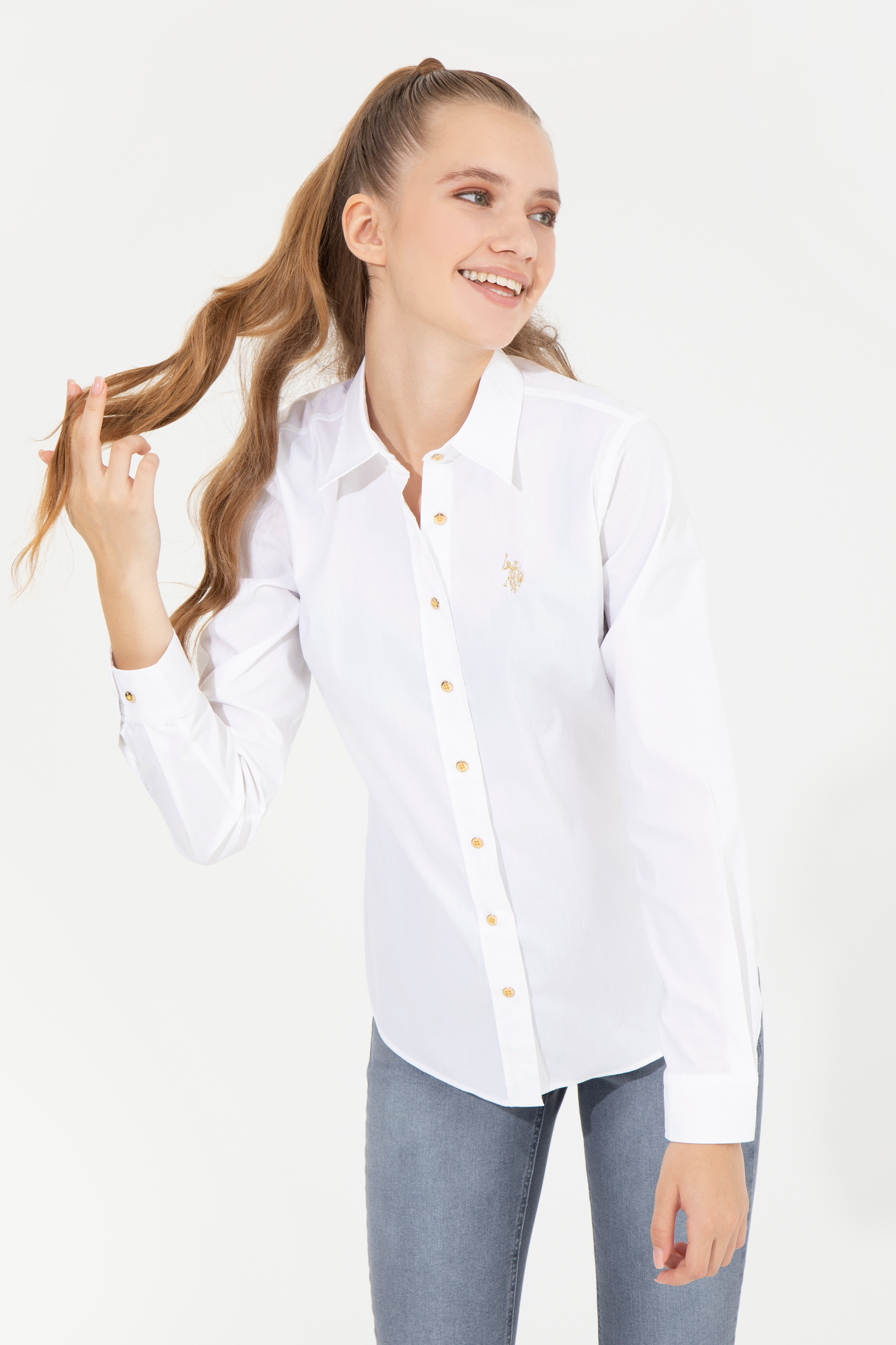 - Kadın Beyaz Uzun Kollu Basic Gömlek