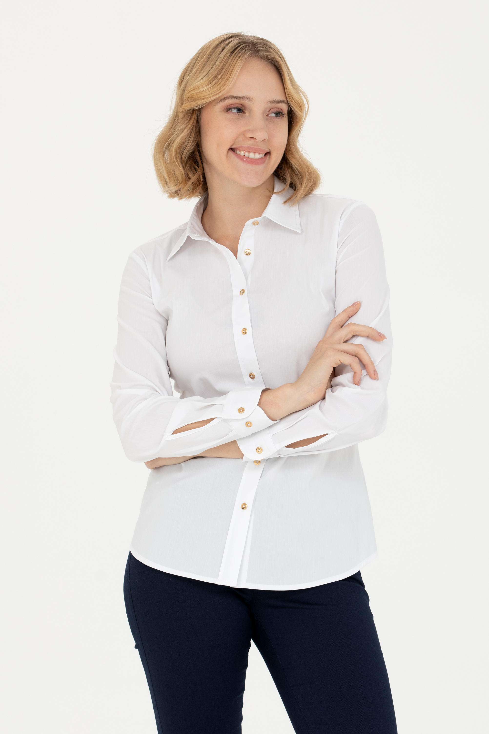 Kadın Beyaz Uzun Kollu Basic Gömlek