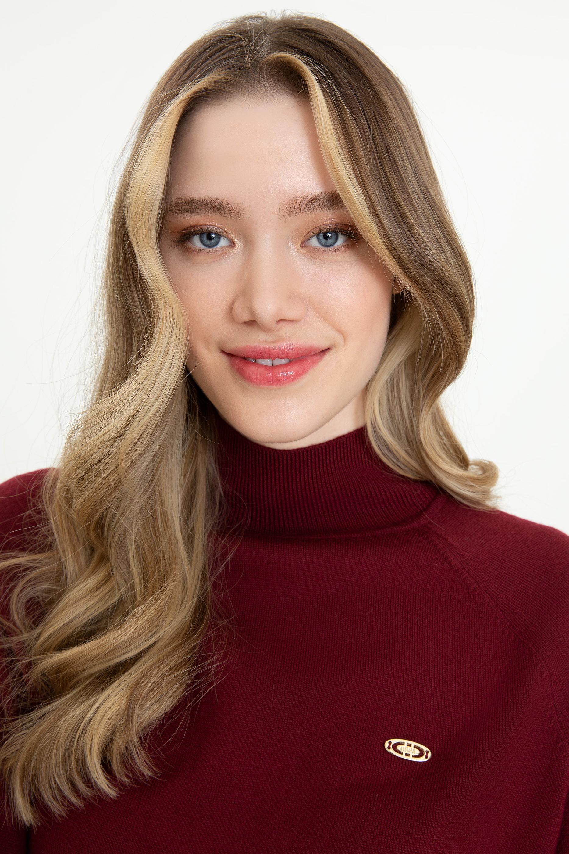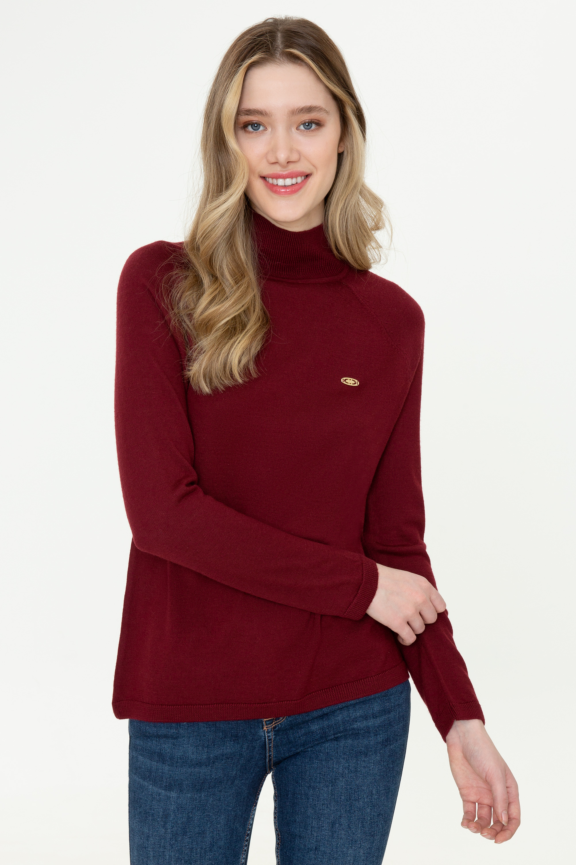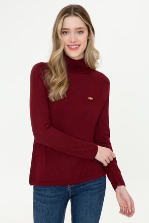 Kadın Bordo Balıkçı Yaka Triko Kazak Basic