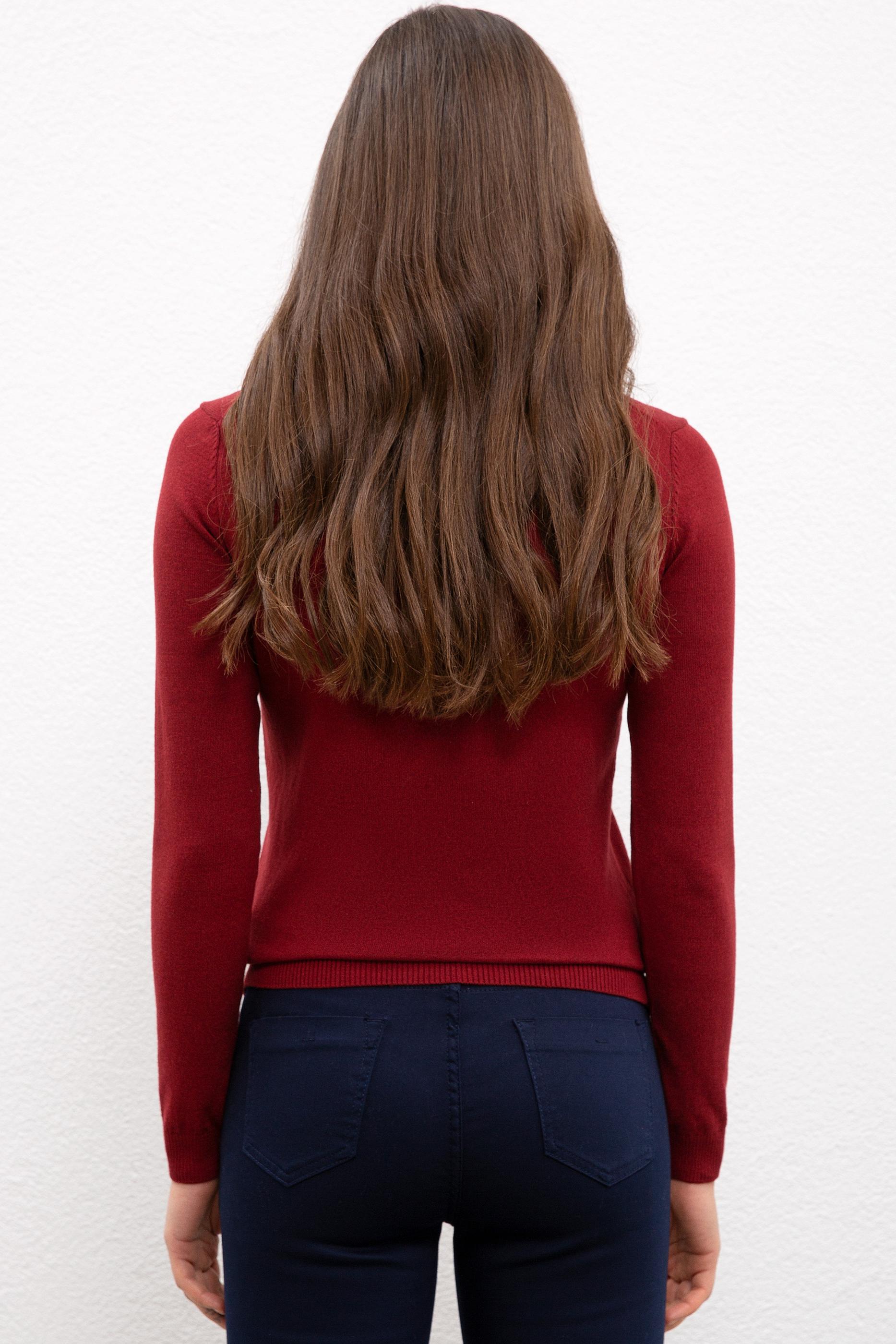 Kadın Bordo Basic V Yaka Kazak