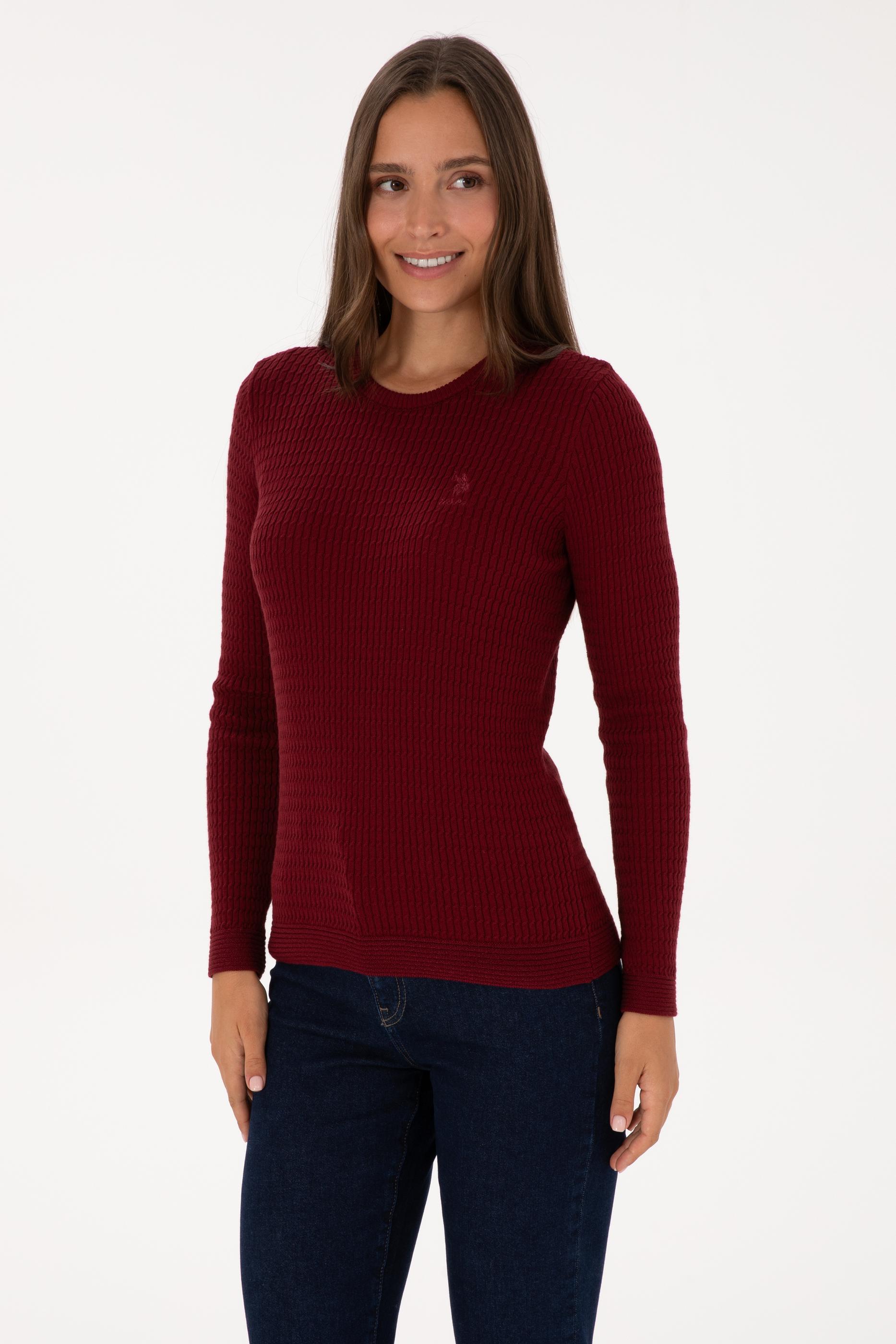 Kadın Bordo Bisiklet Yaka Basic Kazak