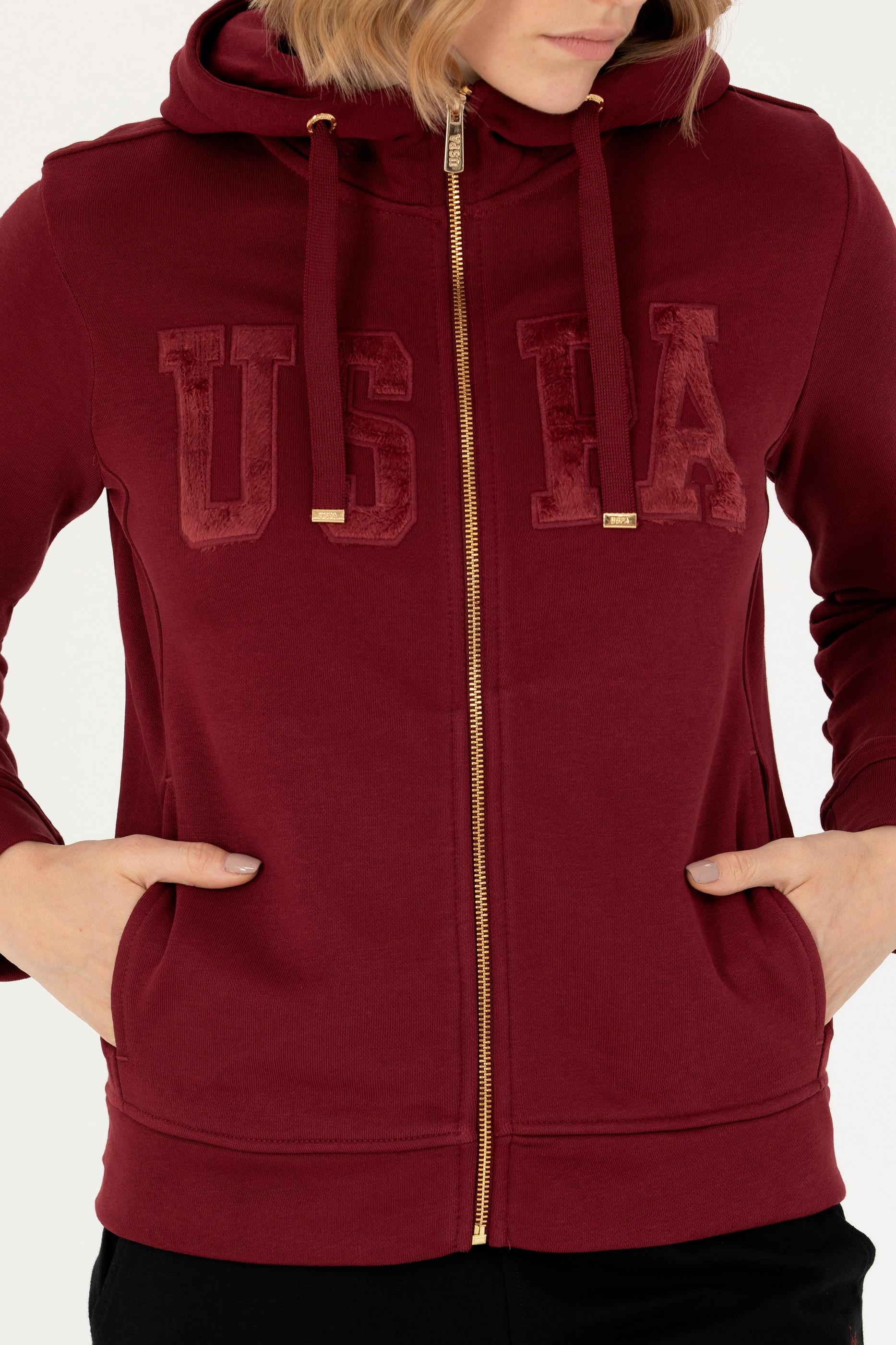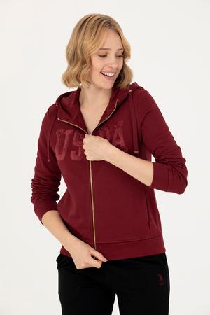 - Kadın Bordo Kapüşonlu Basic Sweatshirt