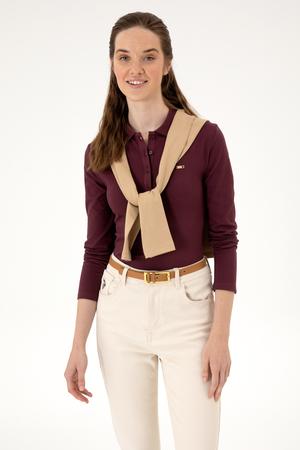 Kadın Bordo Basic Polo Yaka Sweatshırt