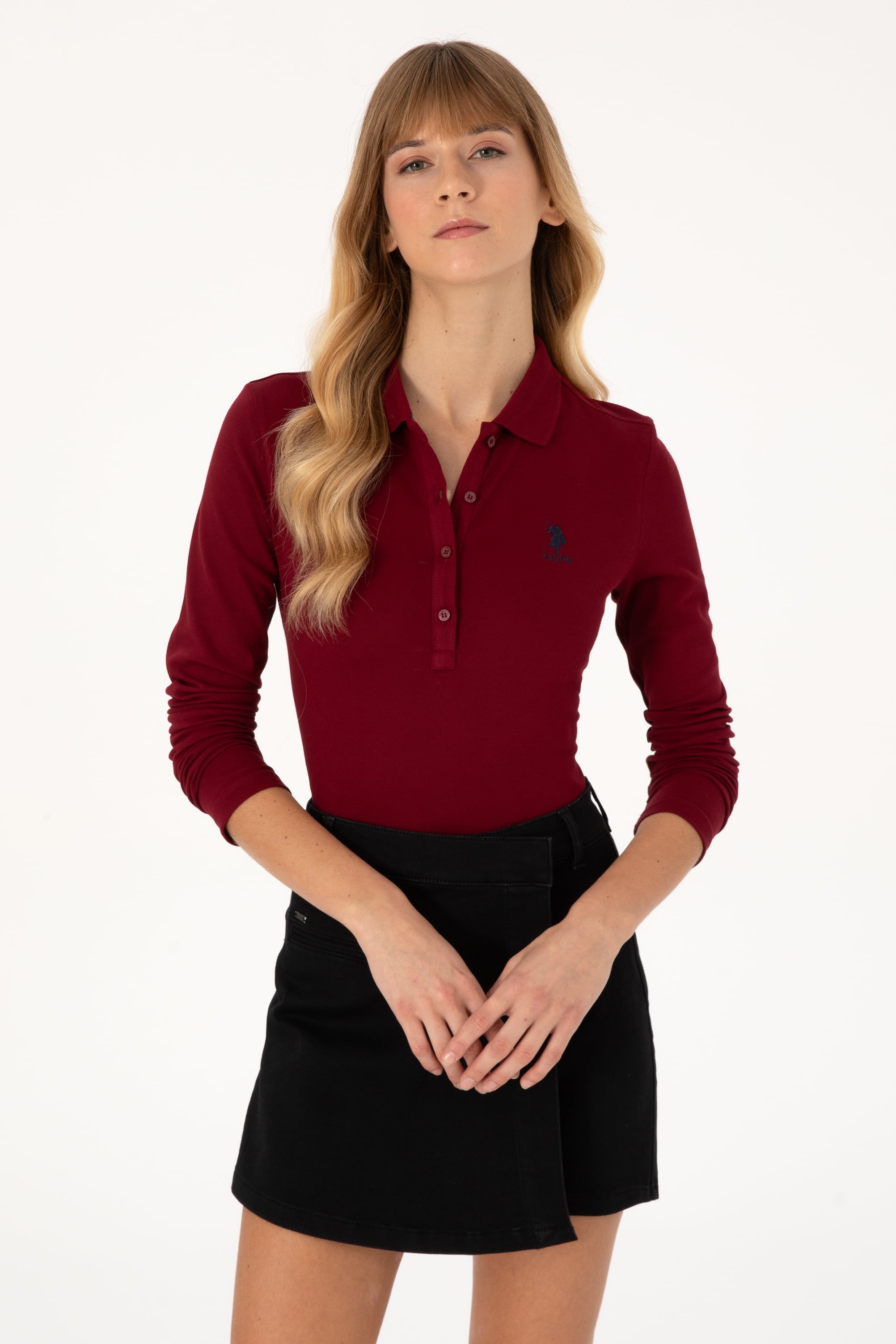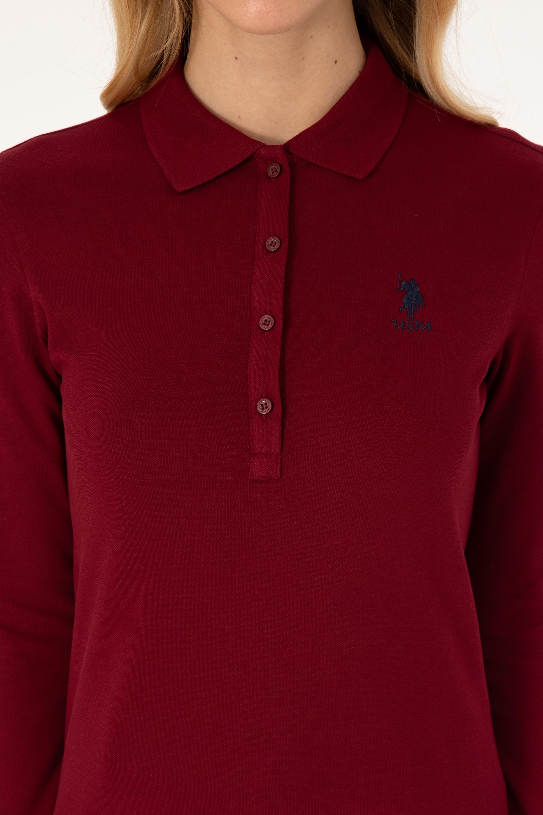 Kadın Bordo Basic Polo Yaka Sweatshirt