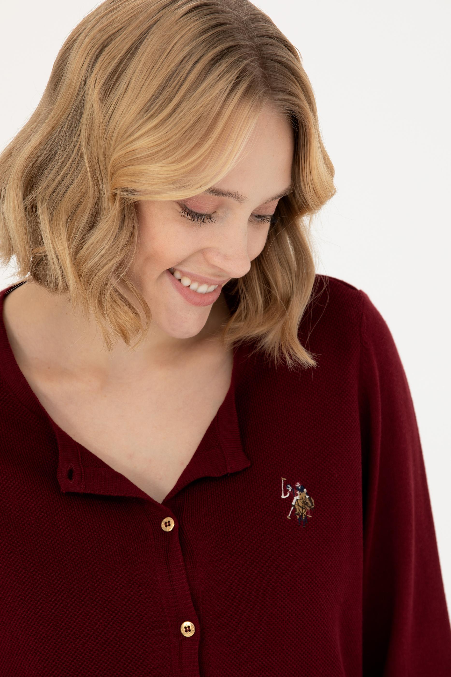 Kadın Bordo Basic Triko Hırka