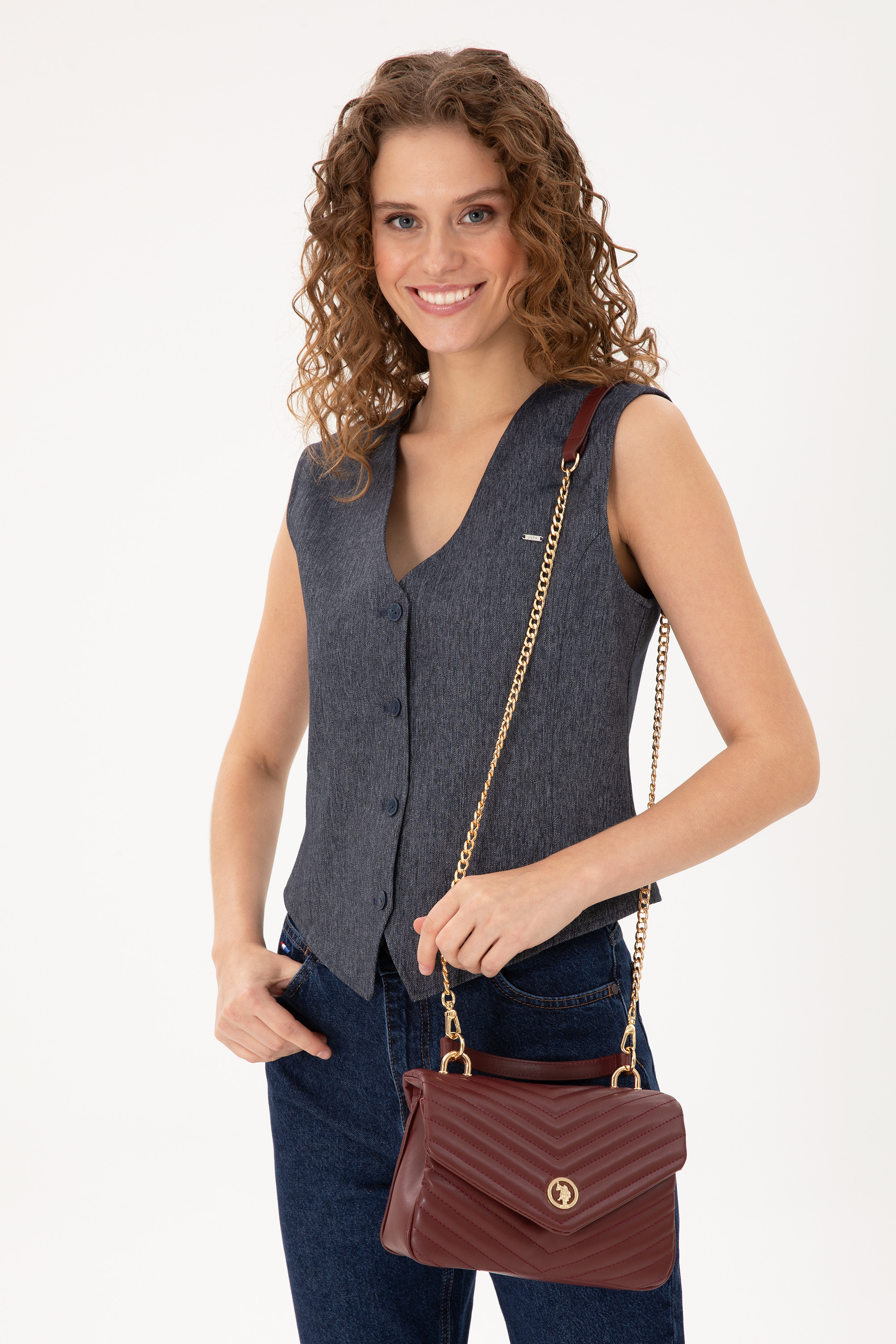 - Kadın Bordo Zincir Askılı Kol Çantası