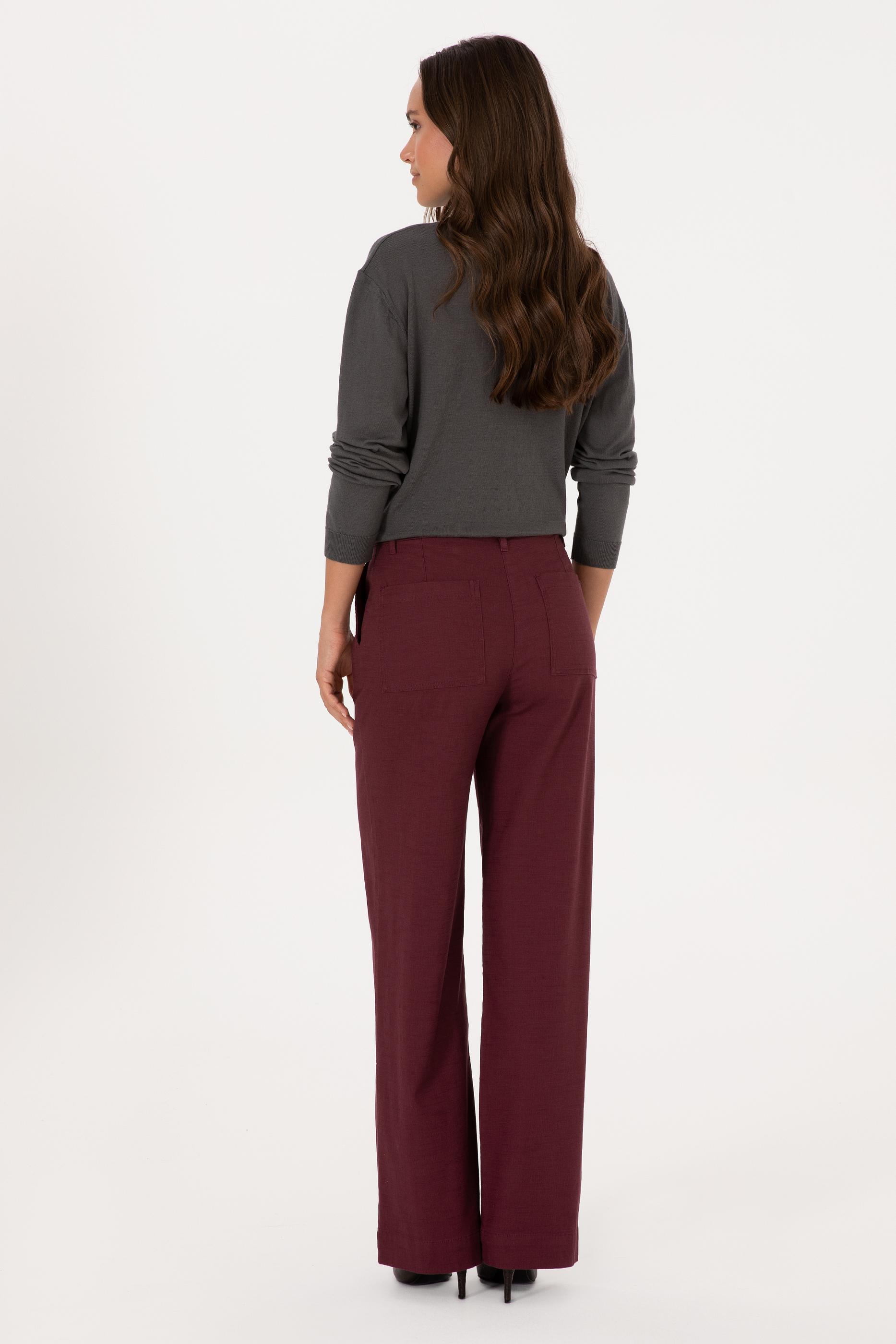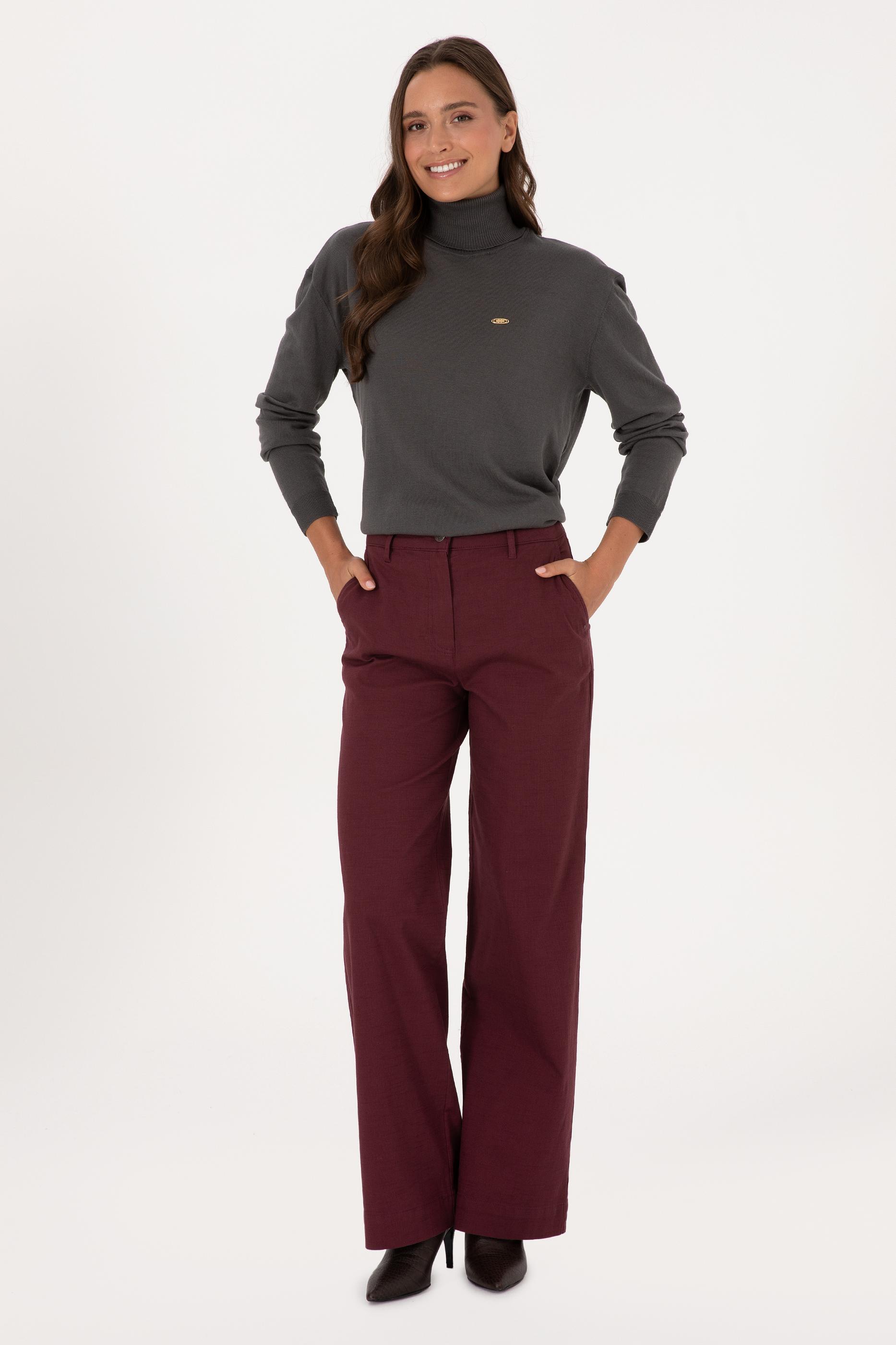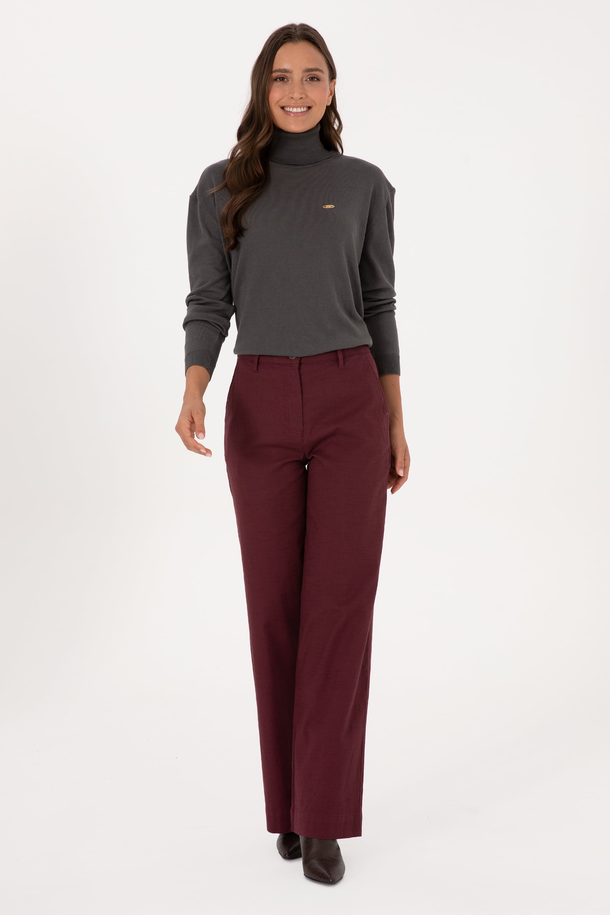 Kadın Bordo Loose Fit Kanvas Pantolon