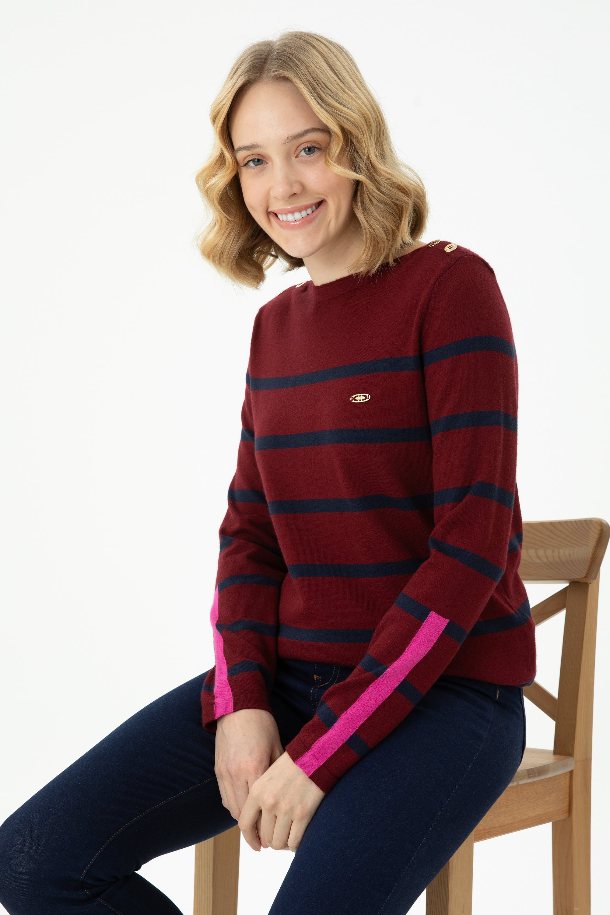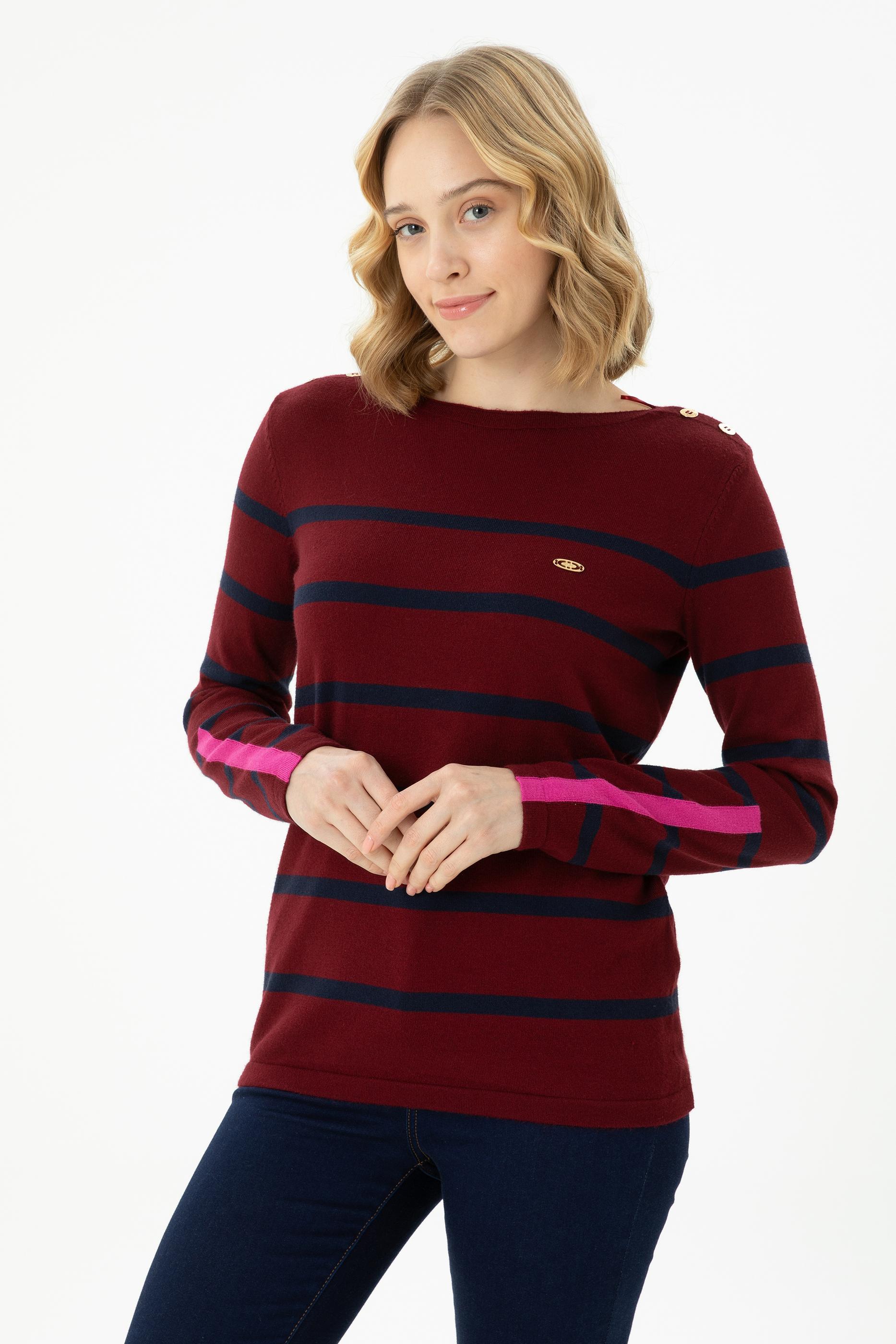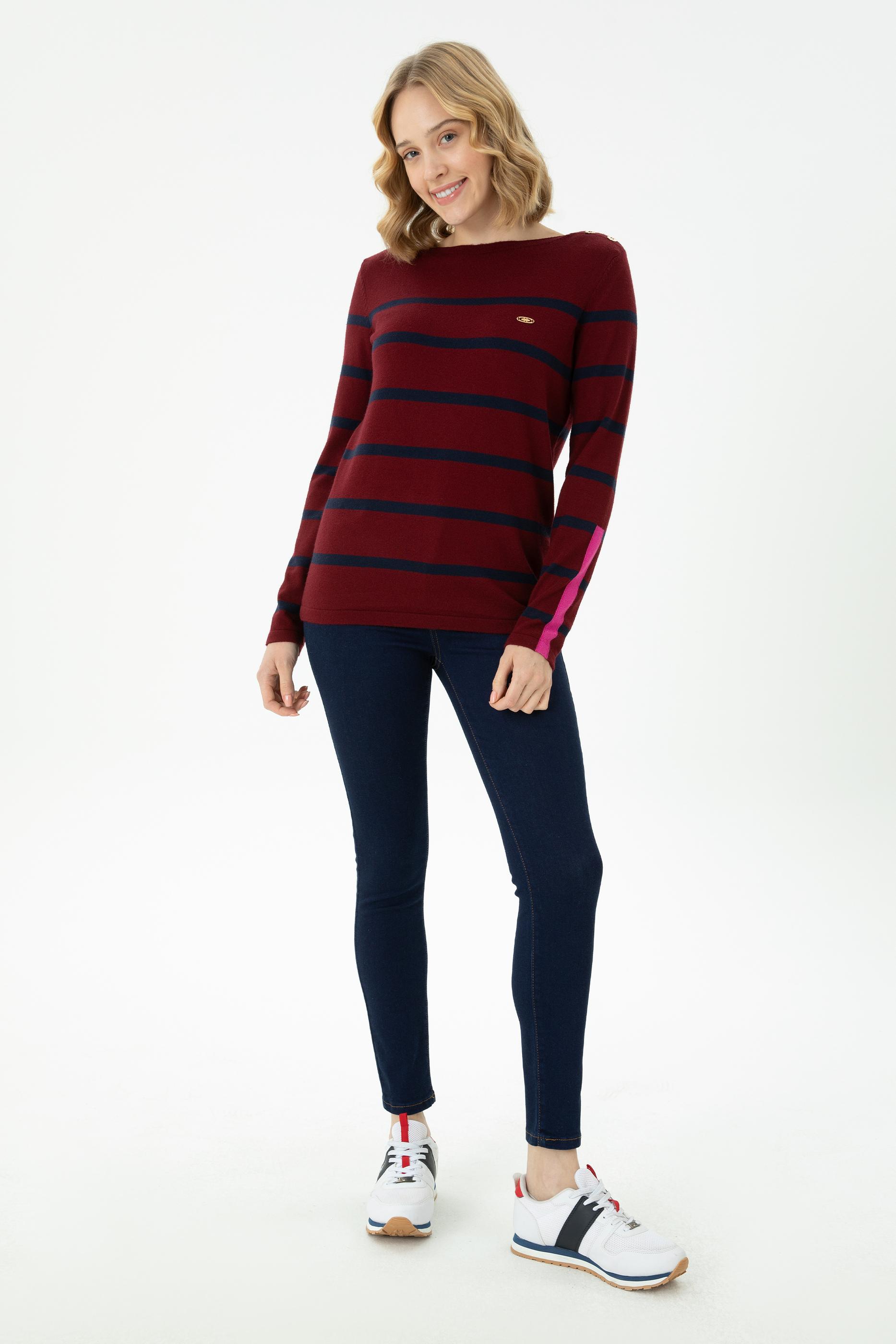 Kadın Bordo Bisiklet Yaka Kazak