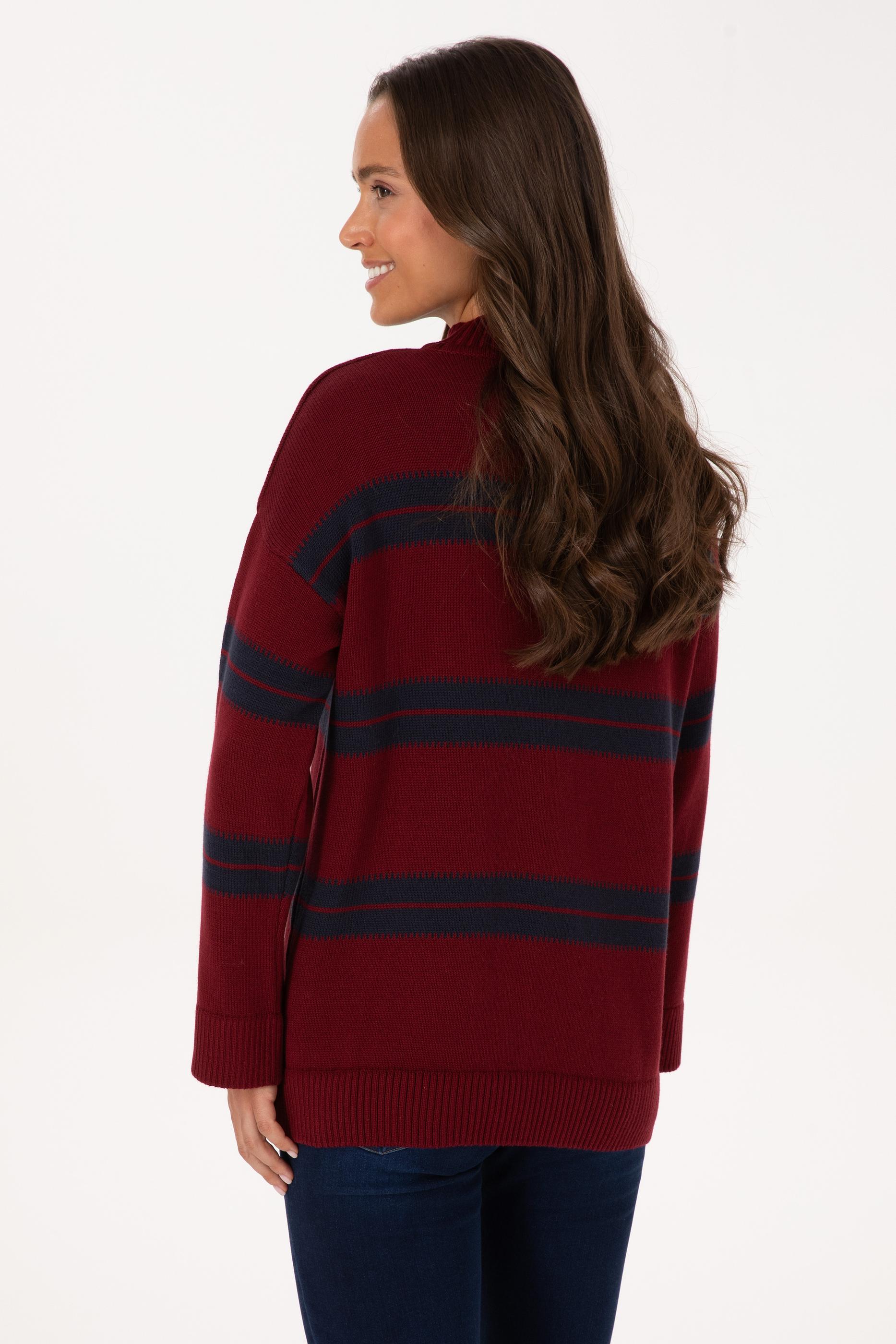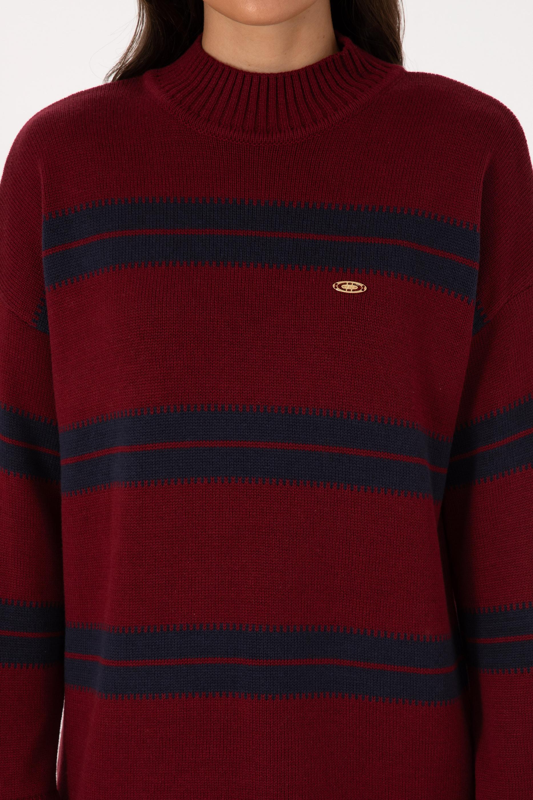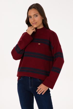 Kadın Bordo Balıkçı Yaka Çizgili Kazak