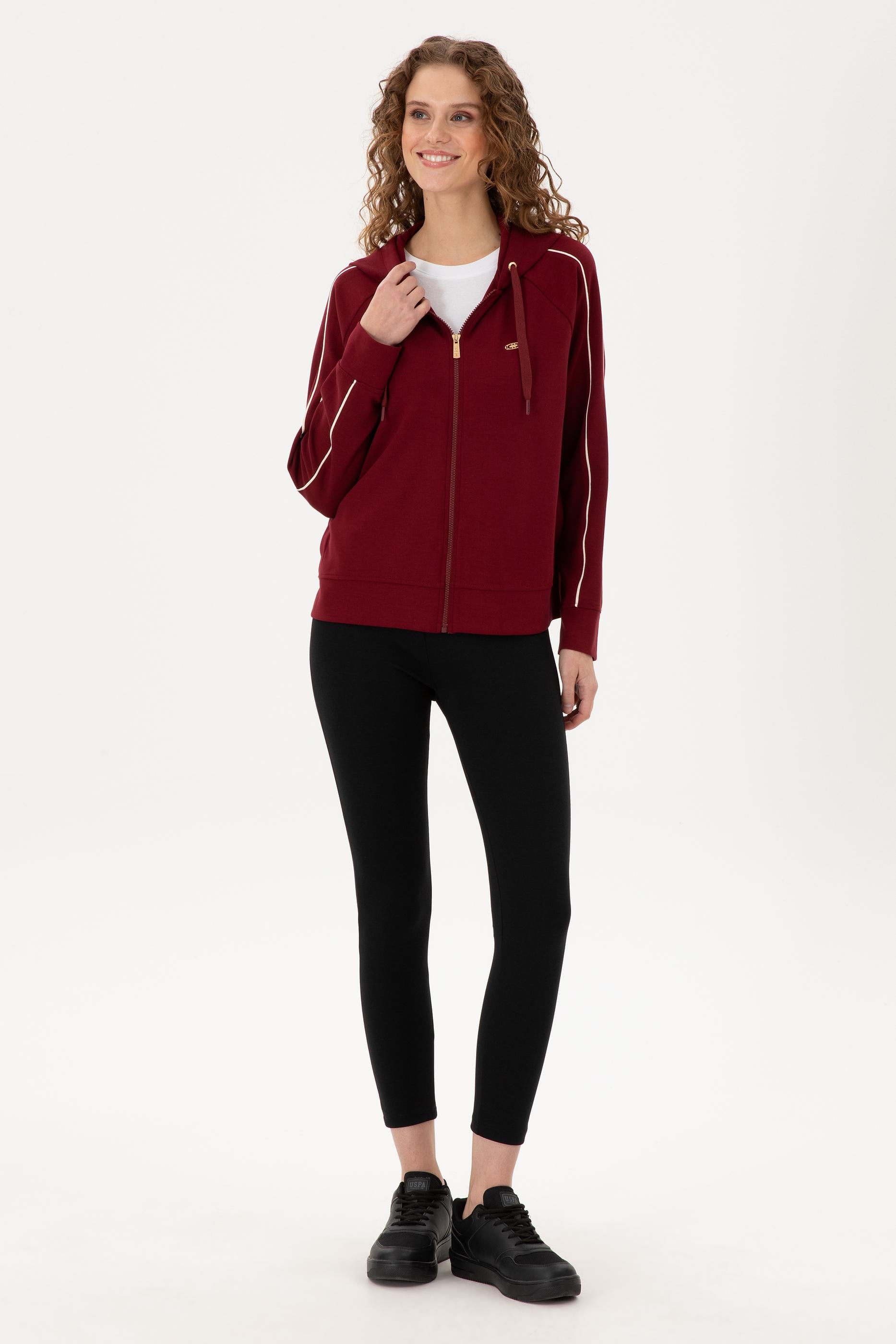 Kadın Bordo Kapüşonlu Fermuarlı Sweatshirt
