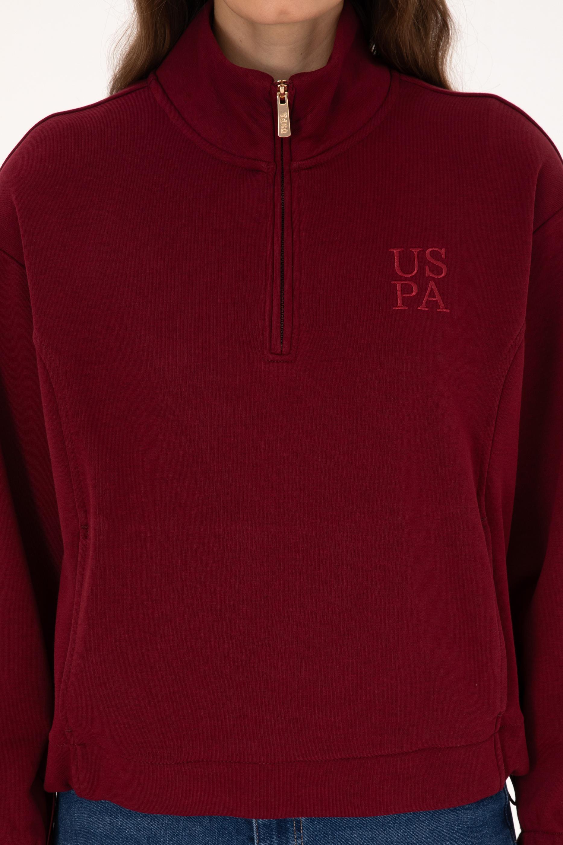 Kadın Bordo Fermuarlı Dik Yaka Sweatshirt