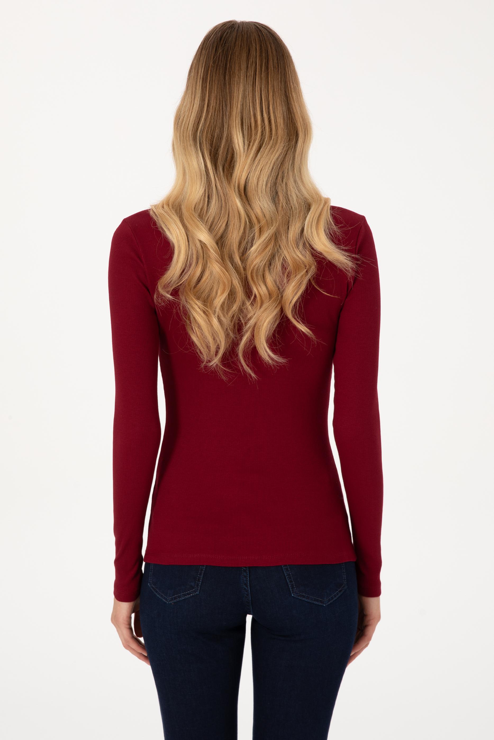 Kadın Bordo Balıkçı Yaka Sweatshırt