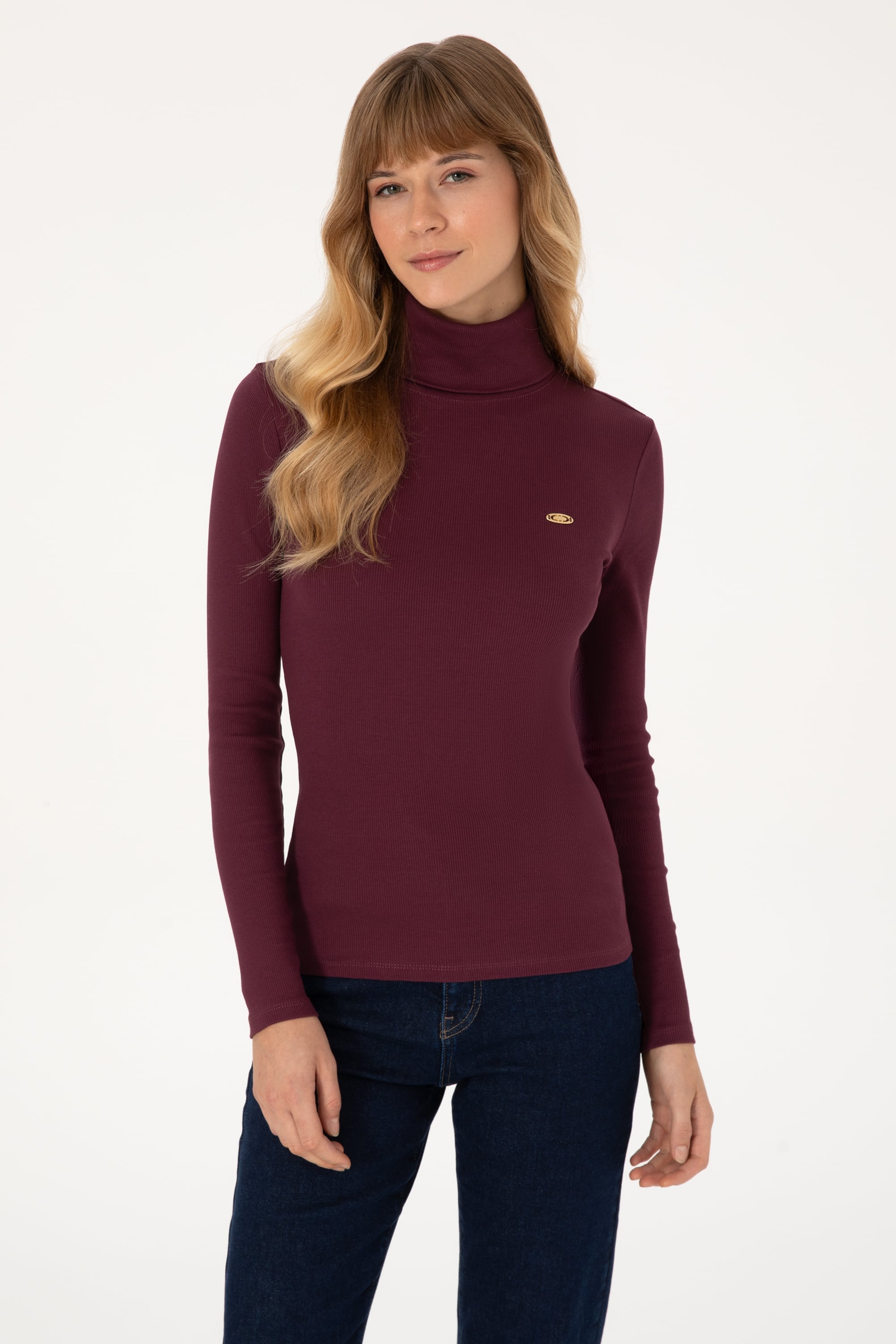 Kadın Bordo Balıkçı Yaka Sweatshırt - 50313430030