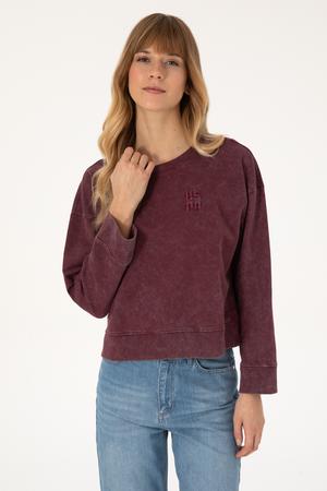 - Kadın Bordo Yıkamalı Bisiket Yaka Sweatshirt