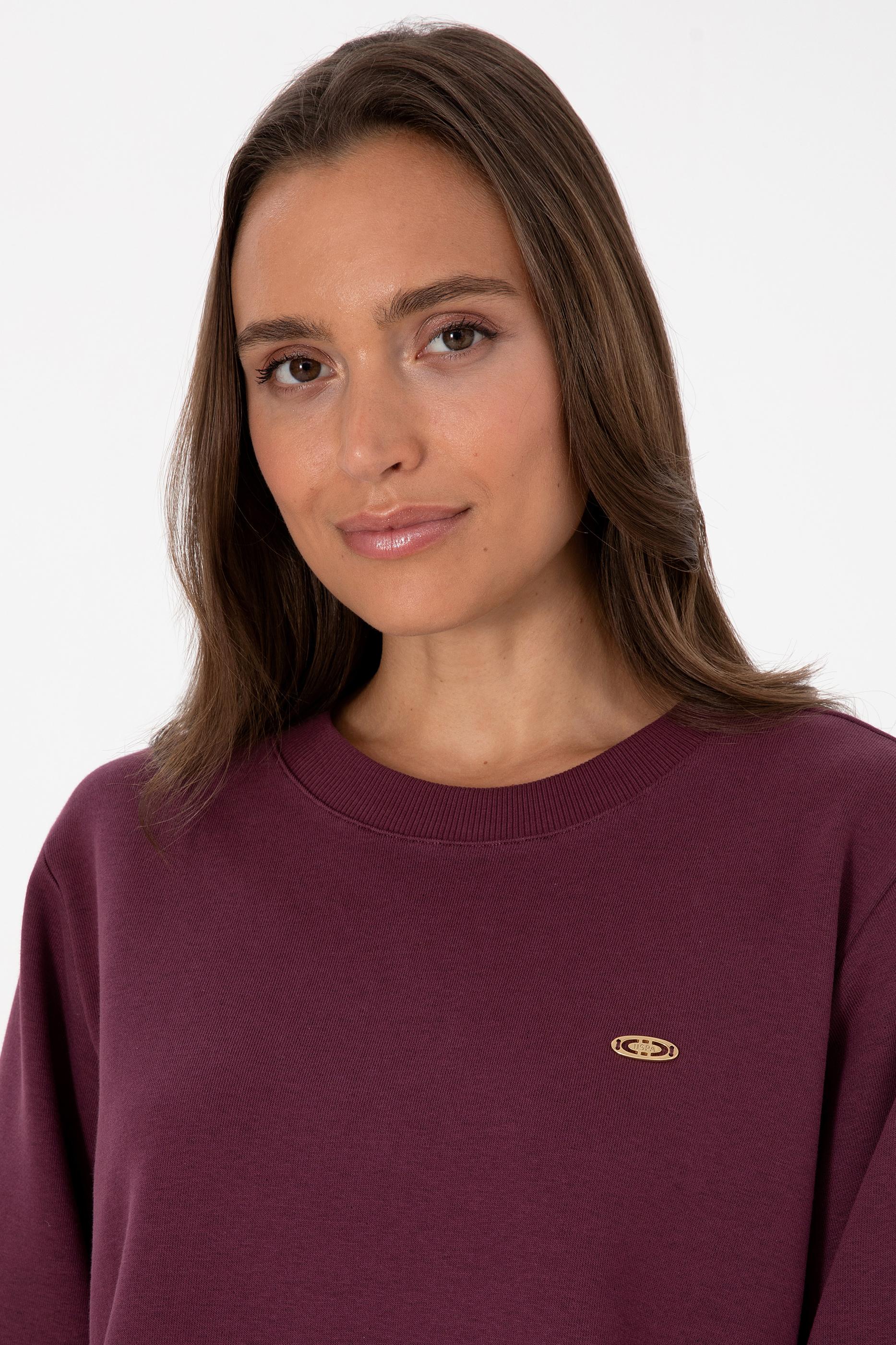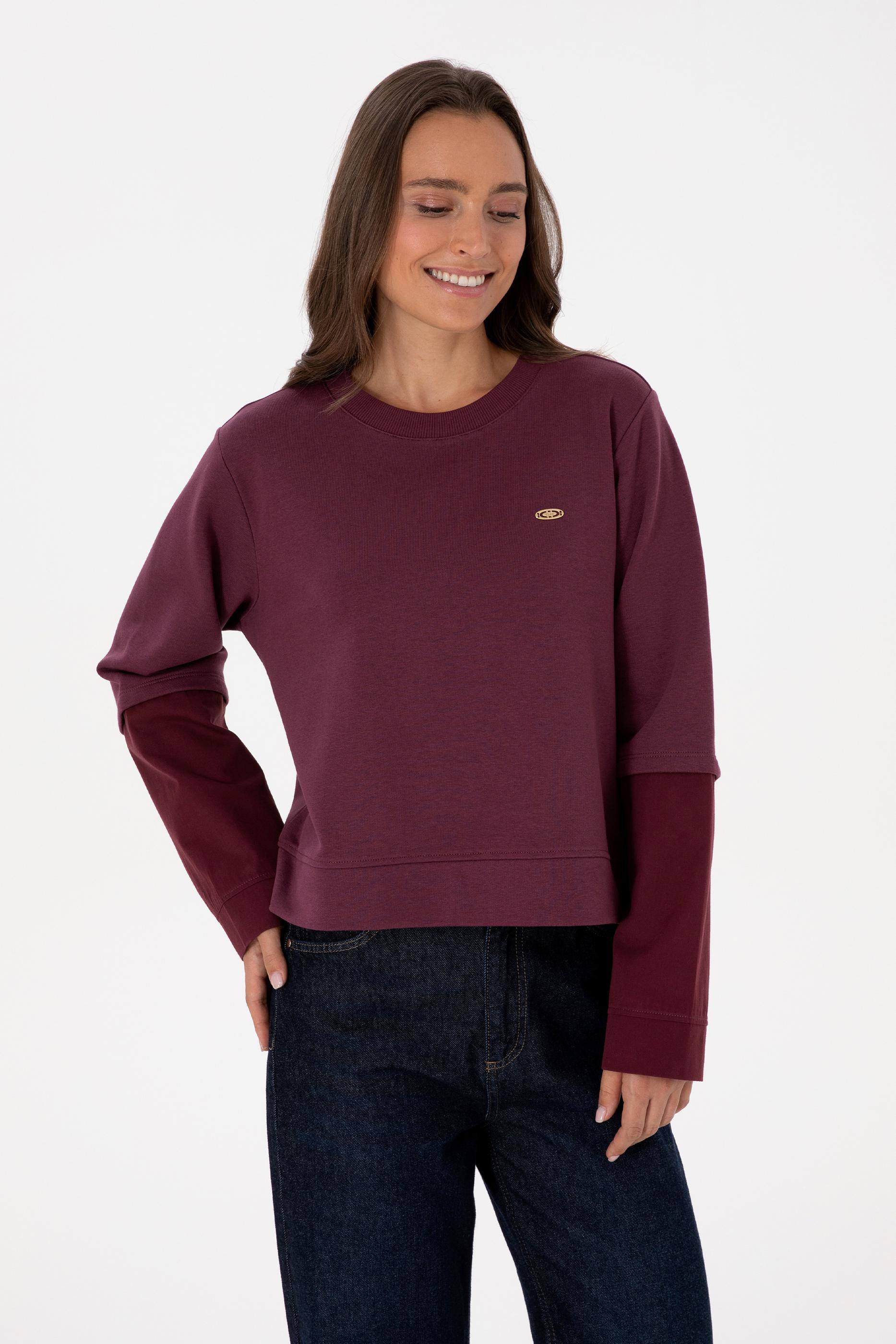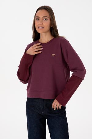 - Kadın Bordo Gömlek Detaylı Bisiklet Yaka Sweatshirt