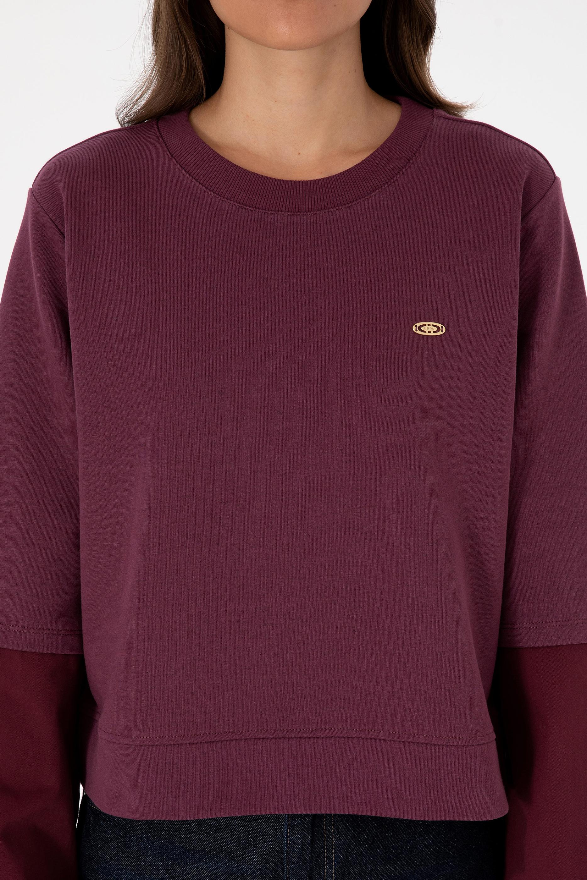 Kadın Bordo Gömlek Detaylı Bisiklet Yaka Sweatshirt