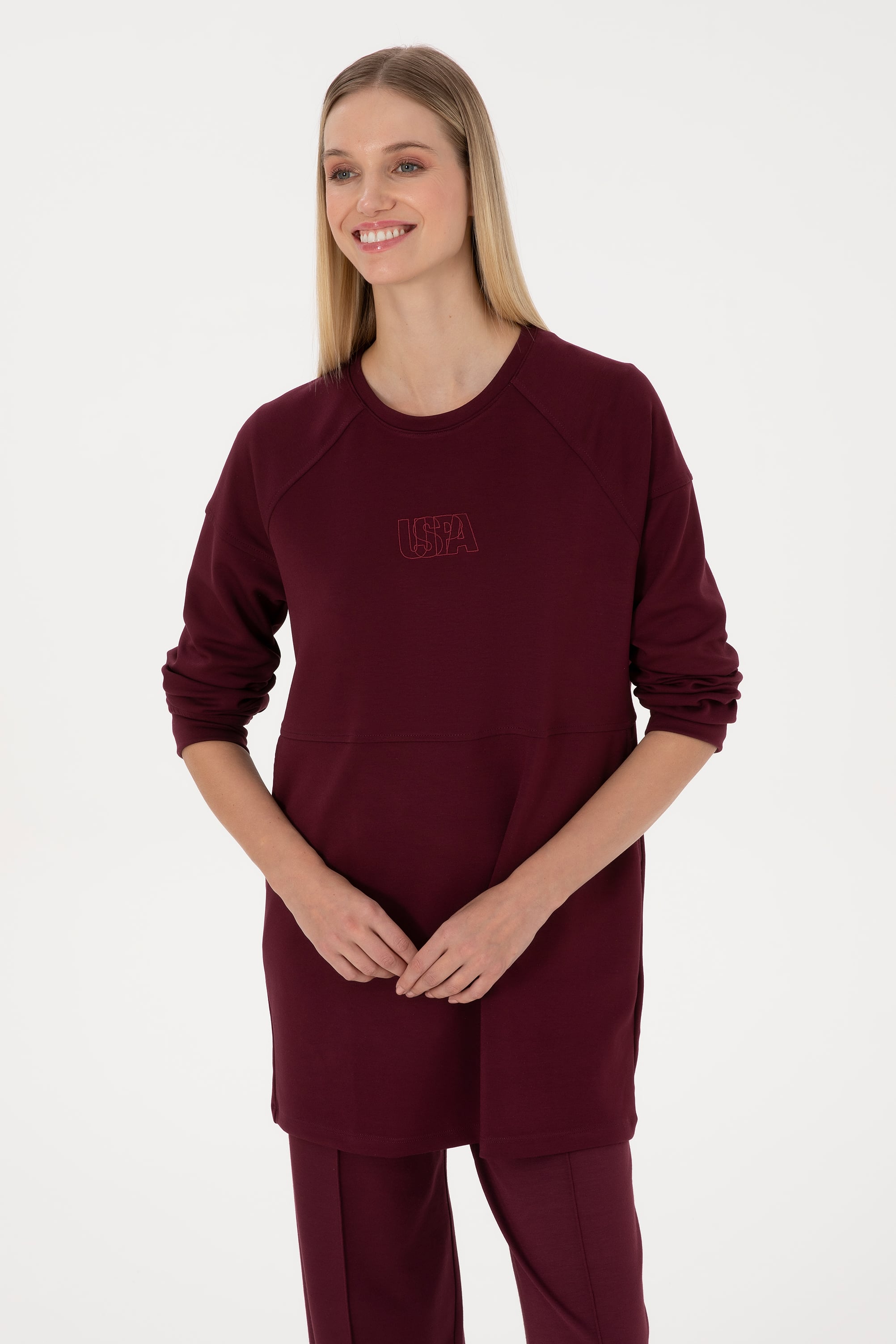 - Kadın Bordo Uzun Bisiklet Yaka Sweatshirt