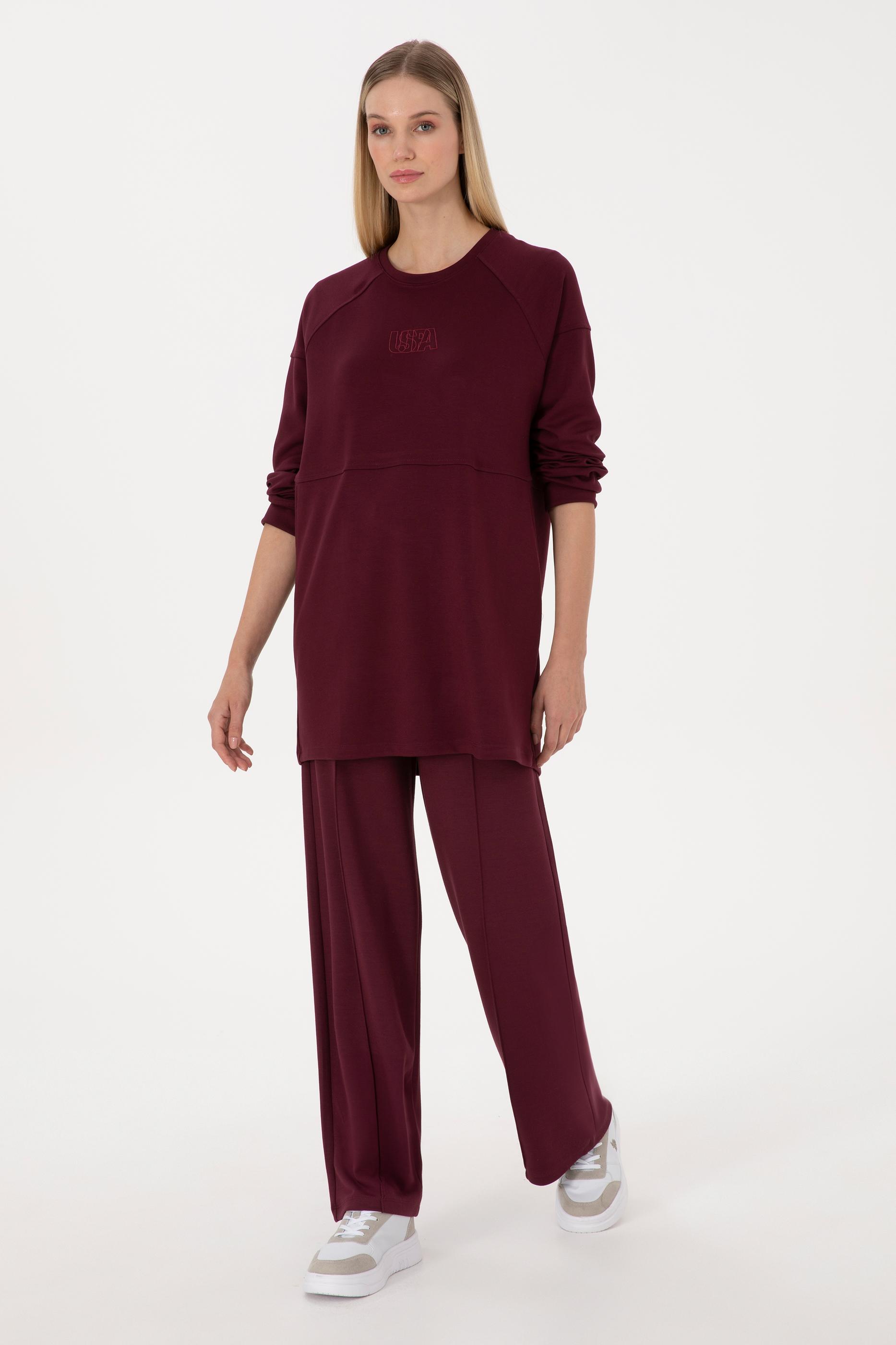 Kadın Bordo Uzun Bisiklet Yaka Sweatshirt