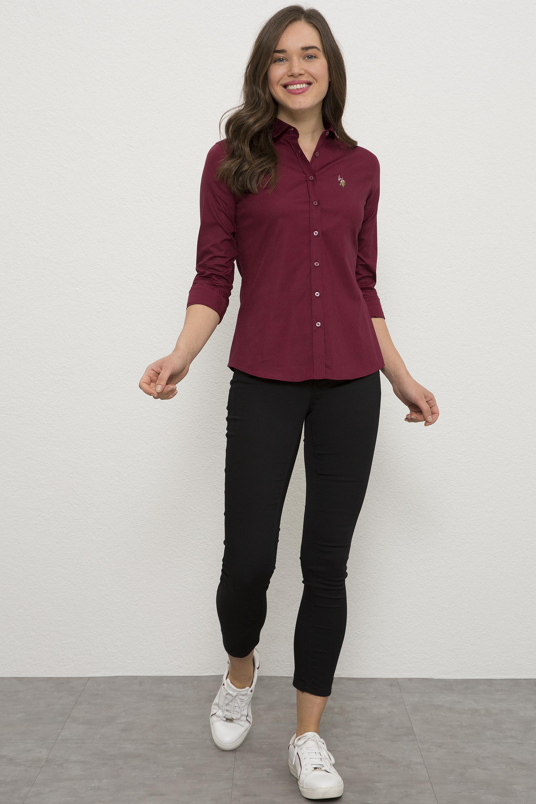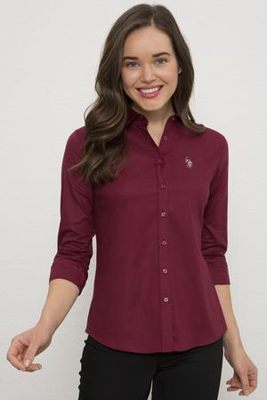 - Kadın Bordo Uzun Kollu Basic Gömlek