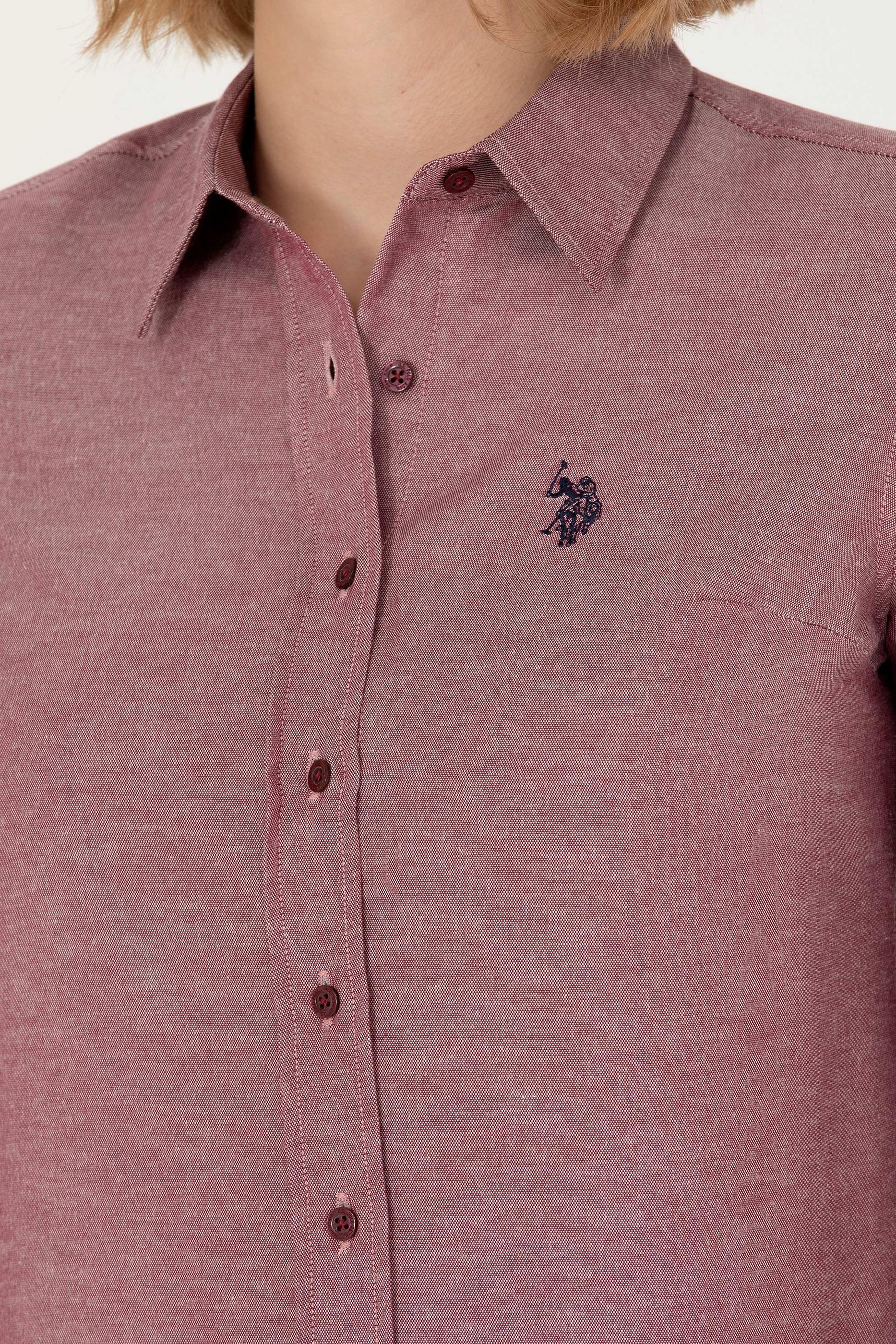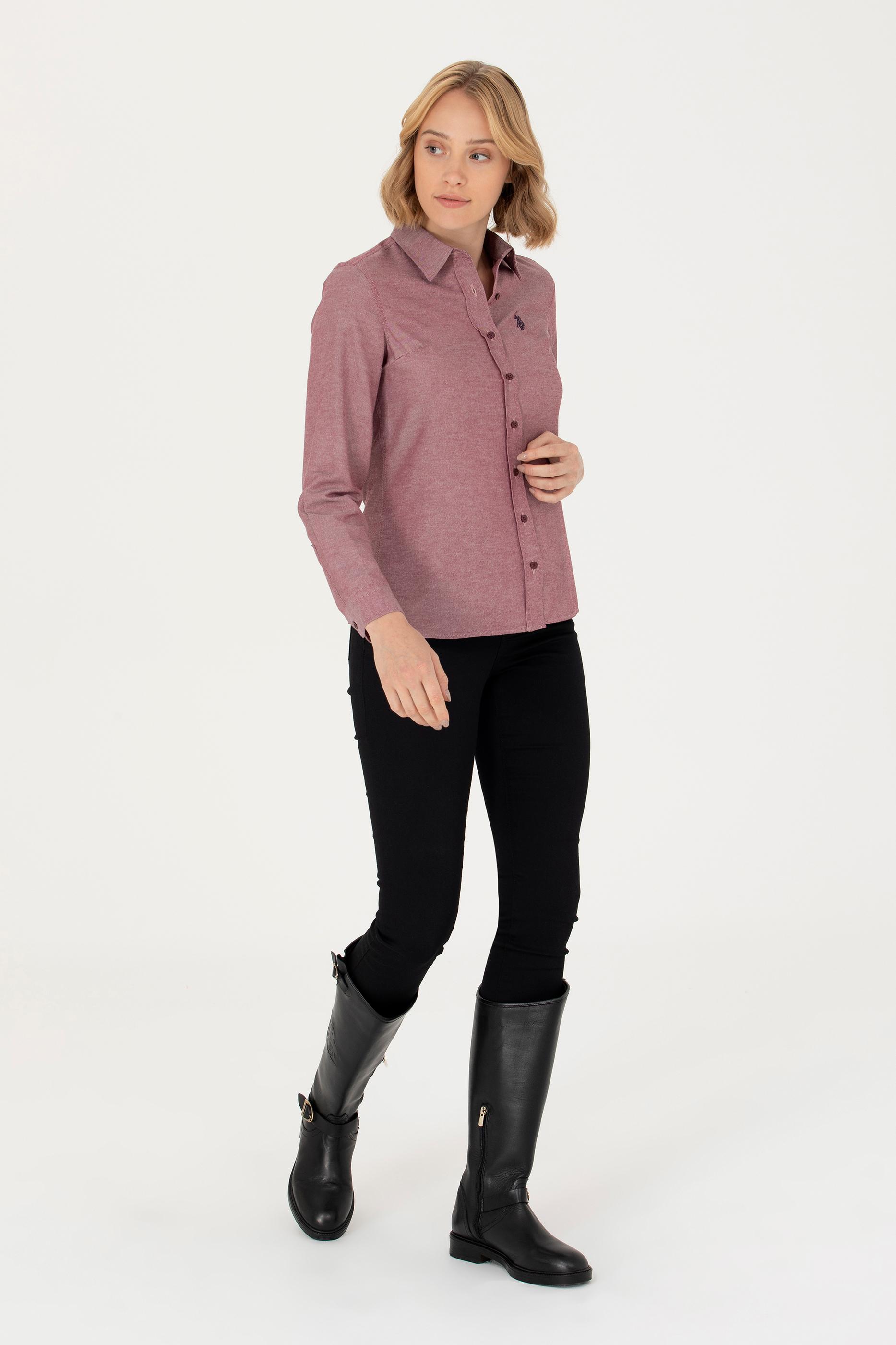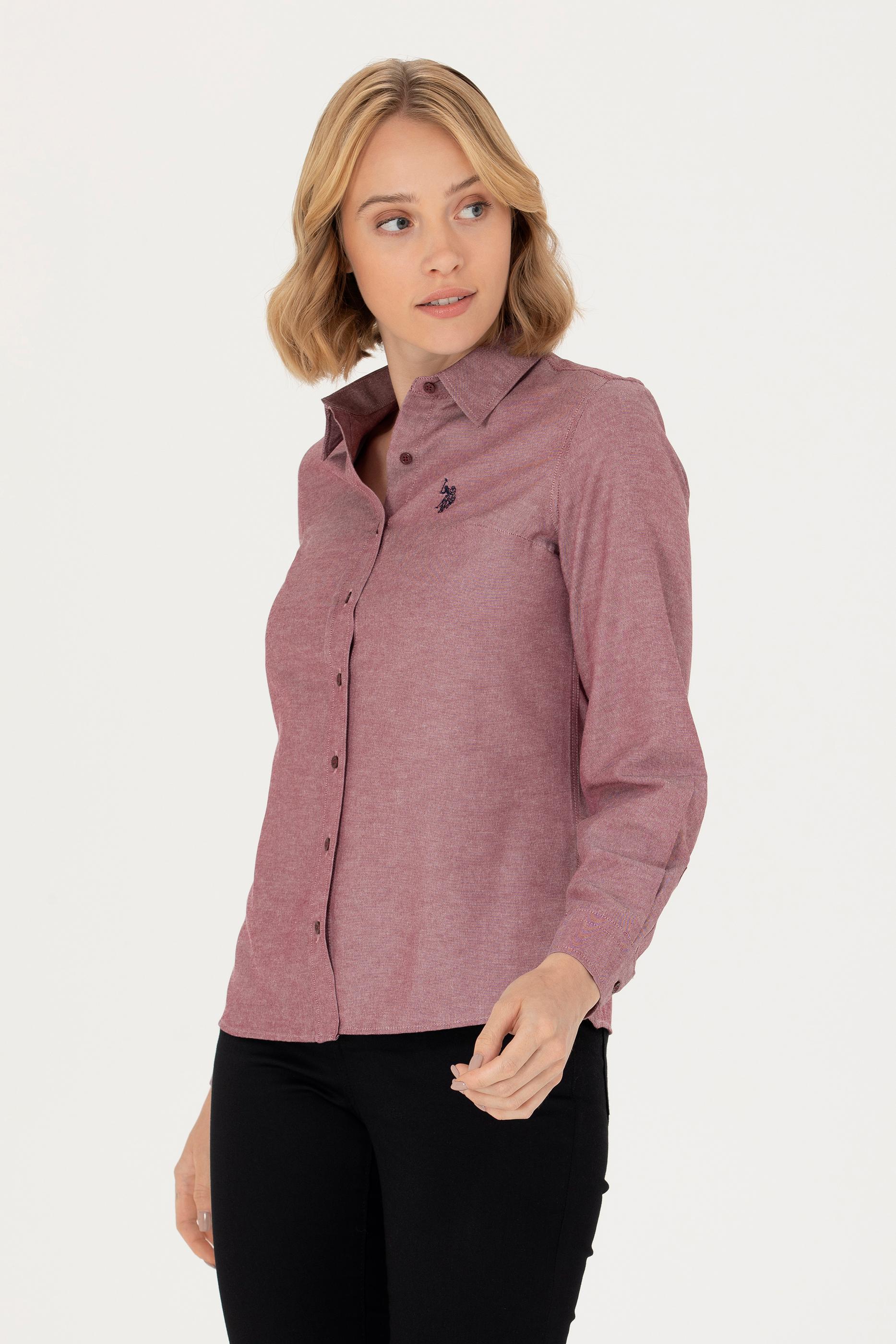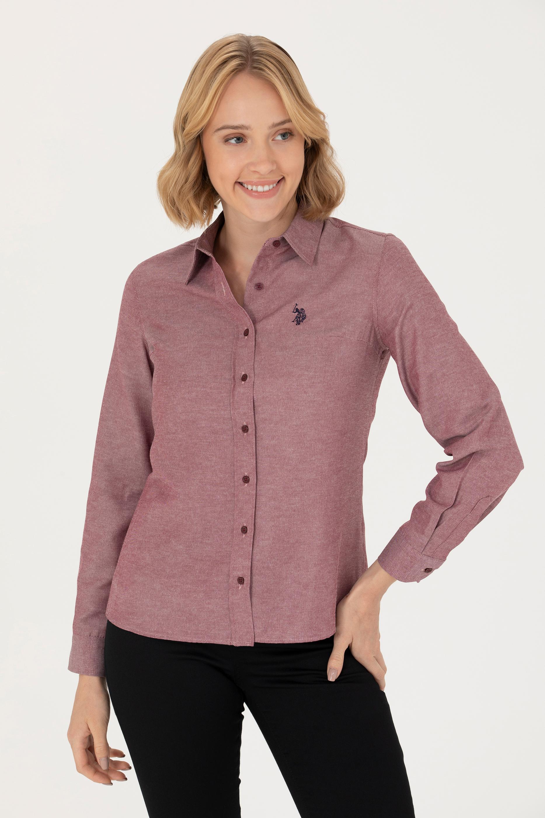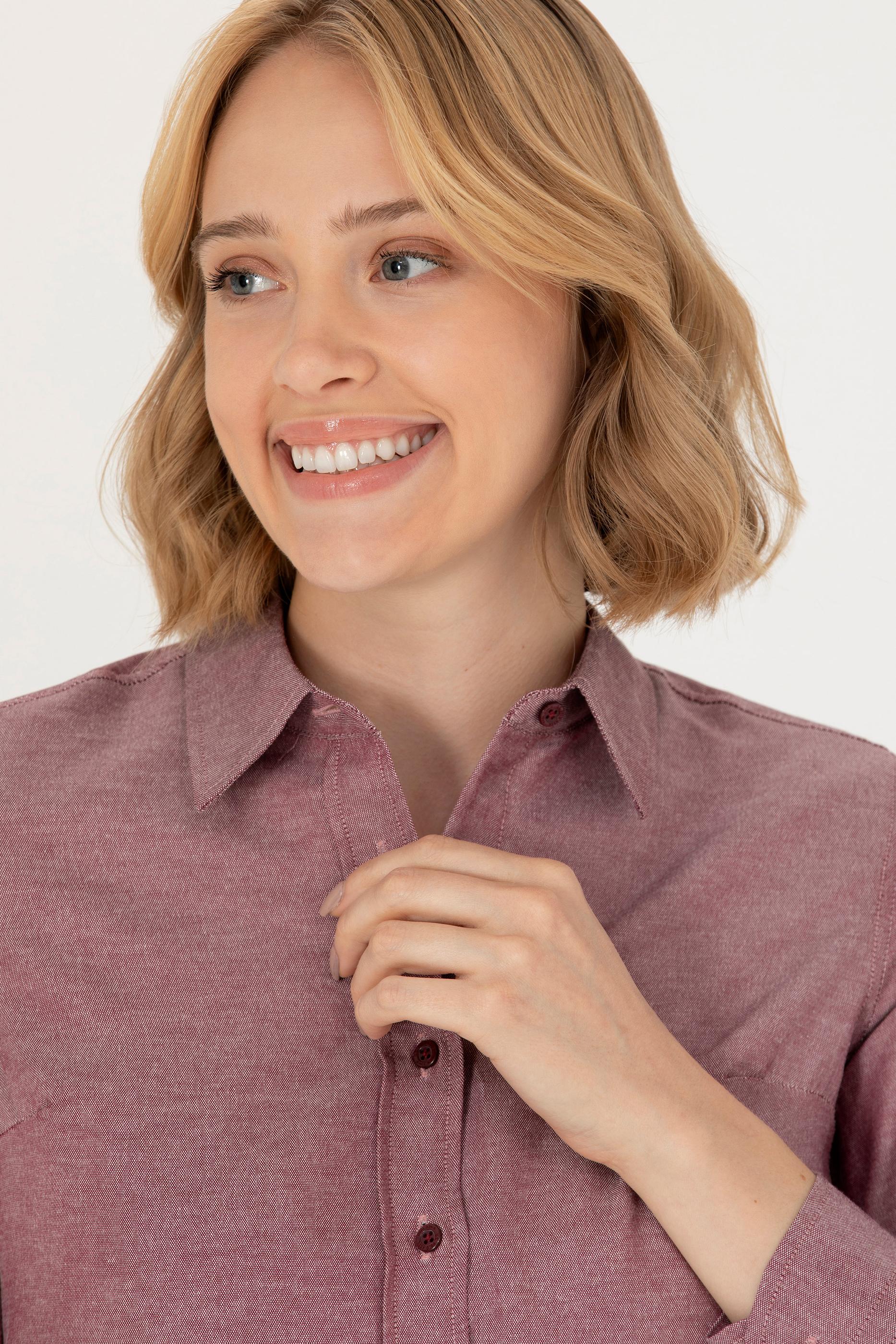 - Kadın Bordo Uzun Kollu Basic Gömlek