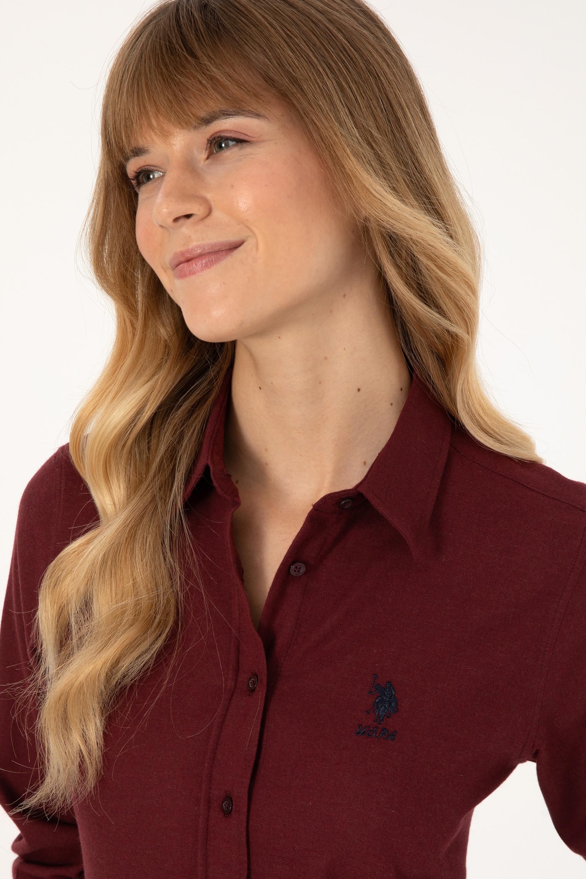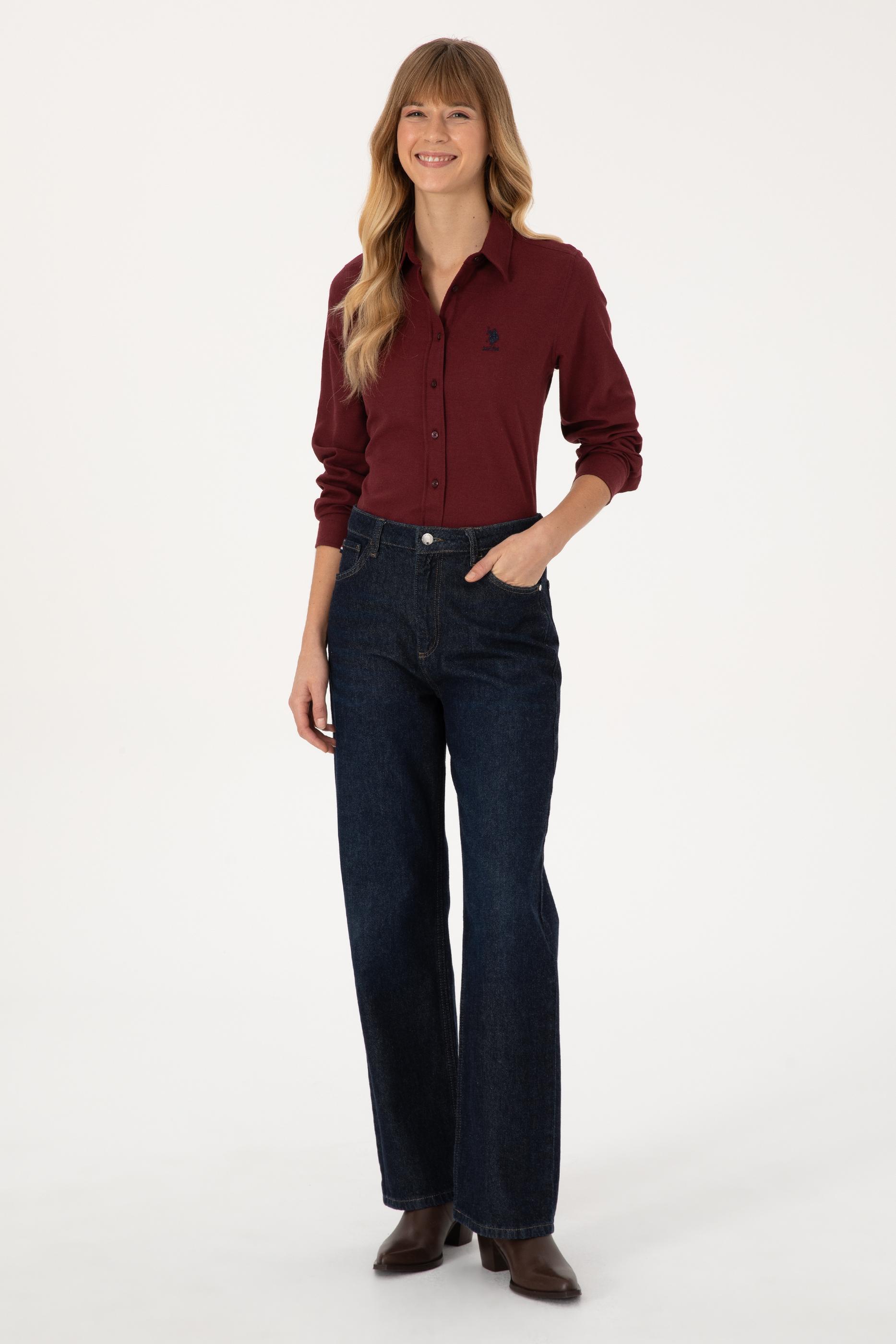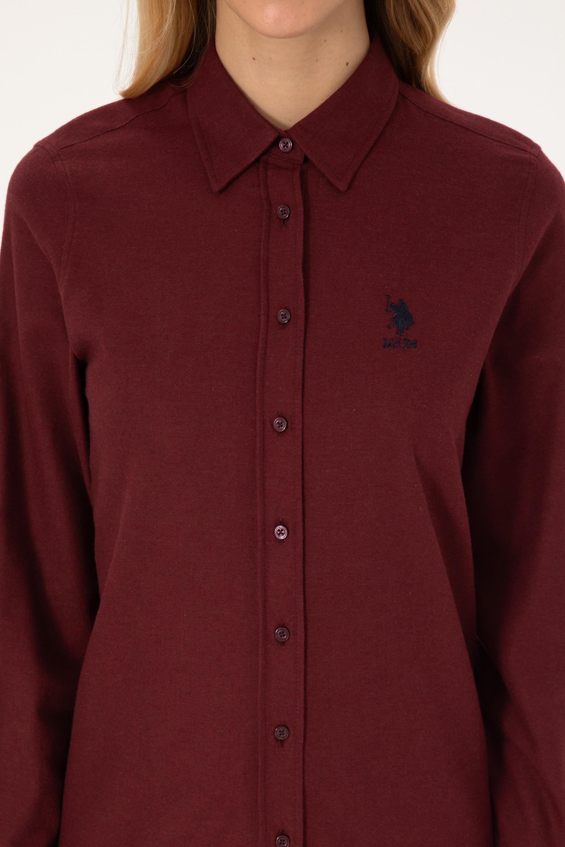 Kadın Bordo Uzun Kollu Basic Gömlek
