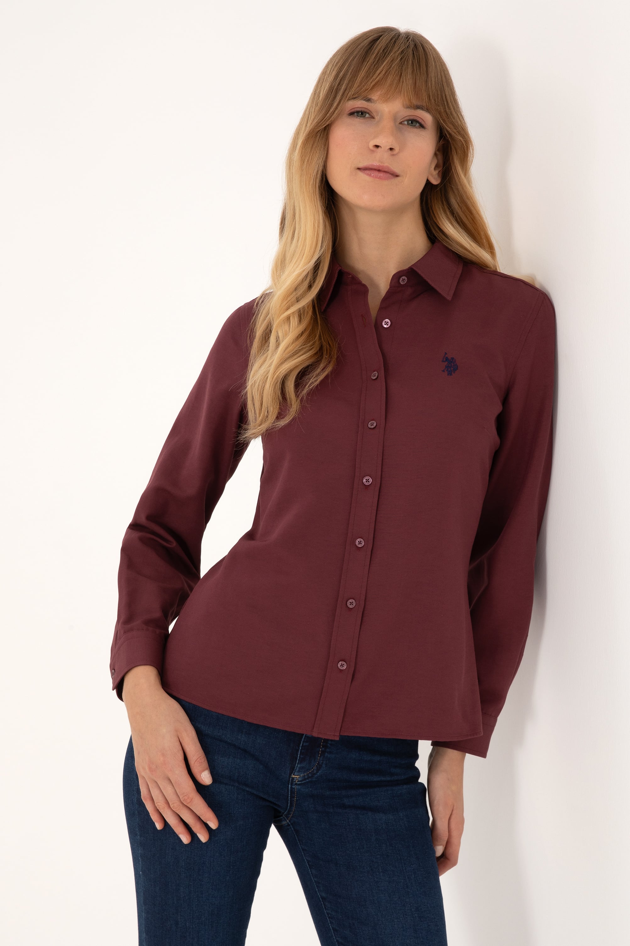 - Kadın Bordo Uzun Kollu Basic Gömlek