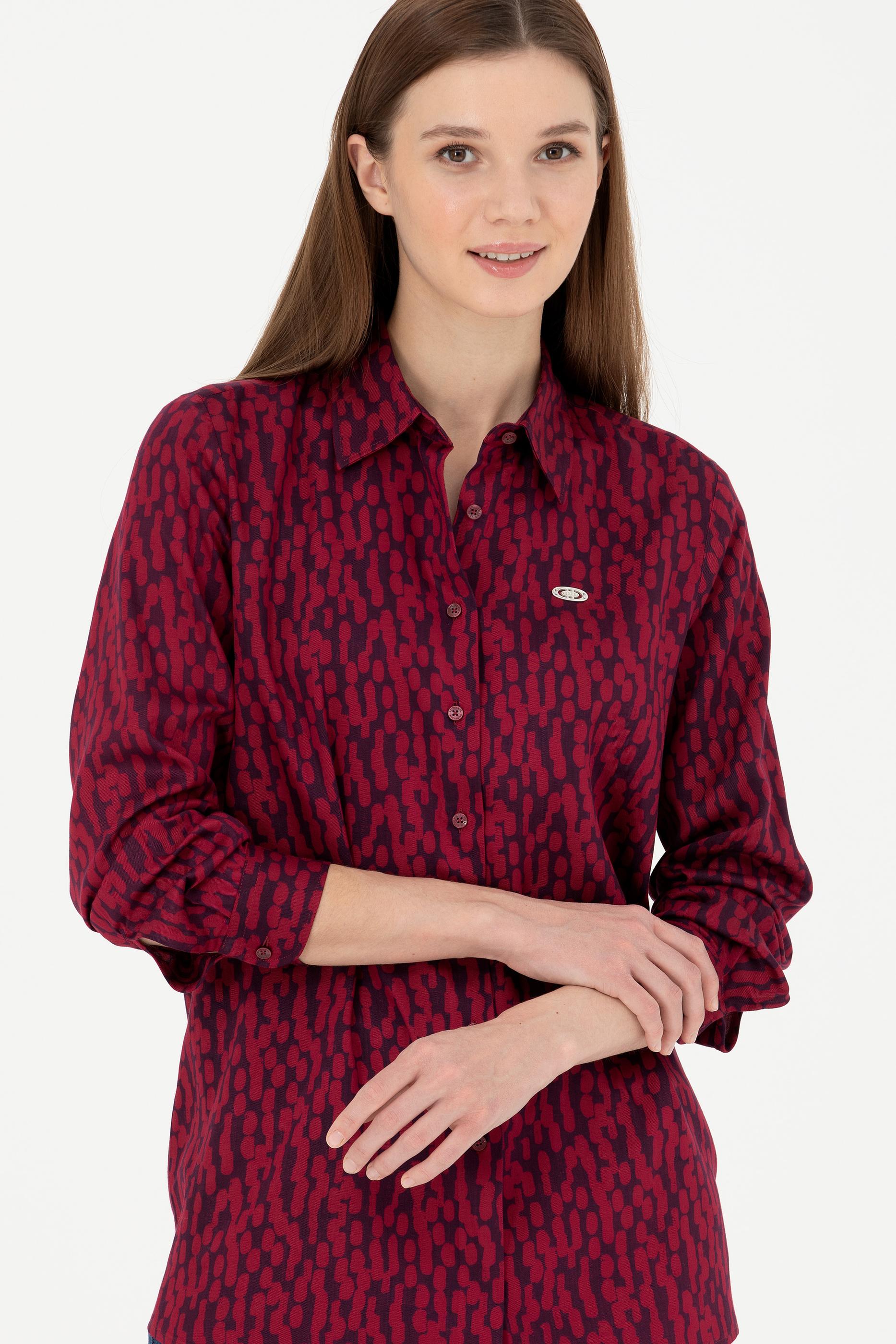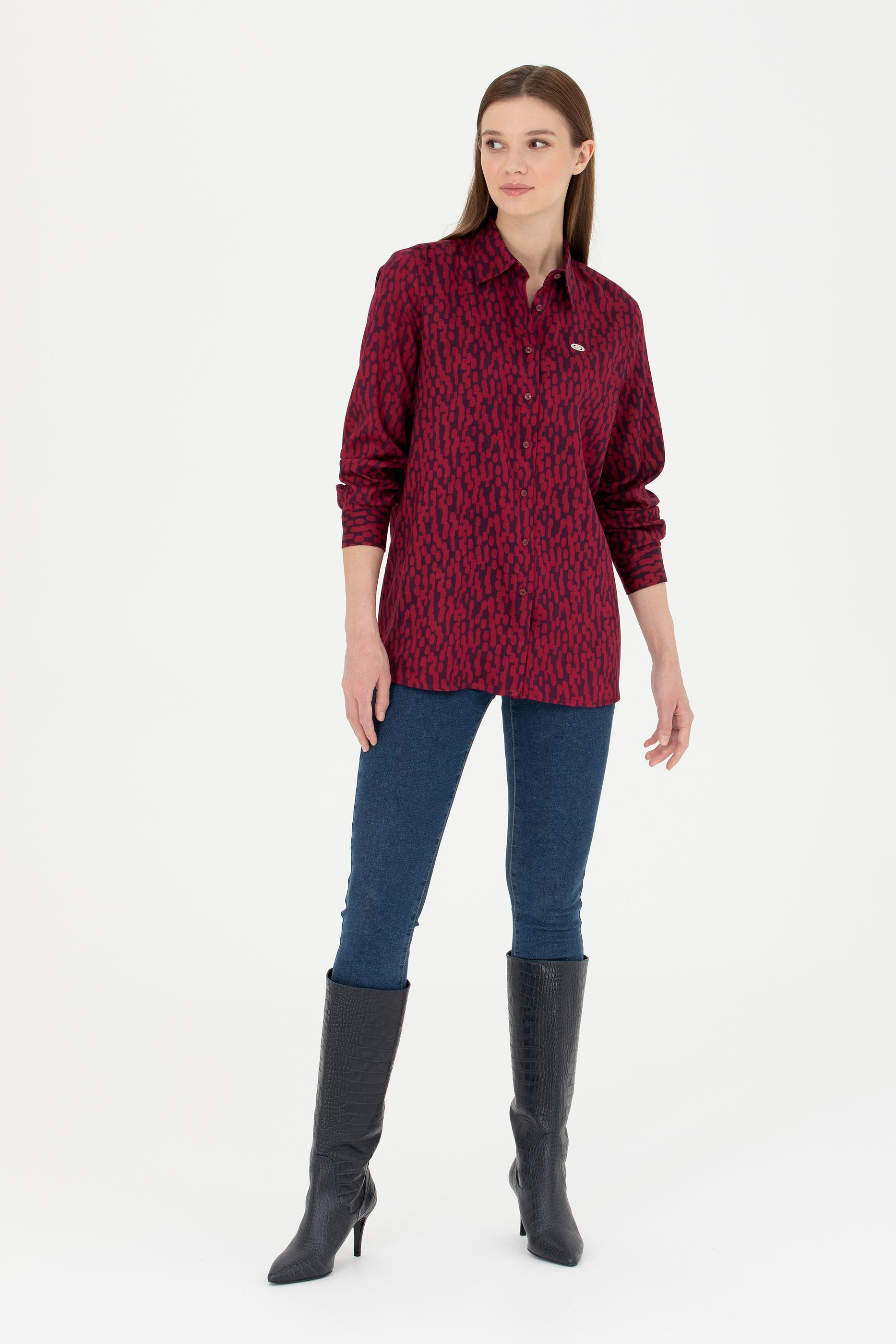"name": "Kadın Bordo Uzun Kollu Gömlek",
