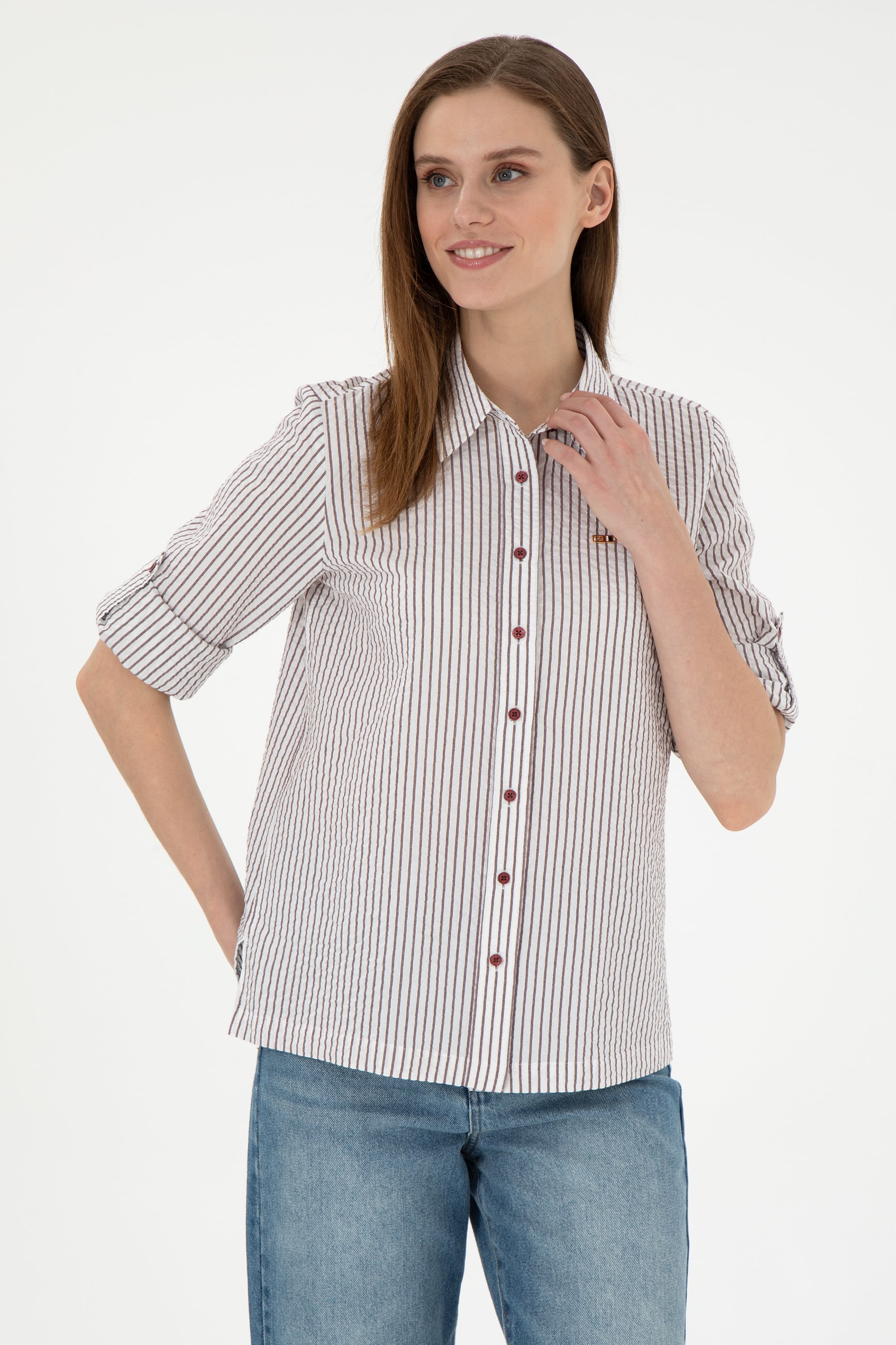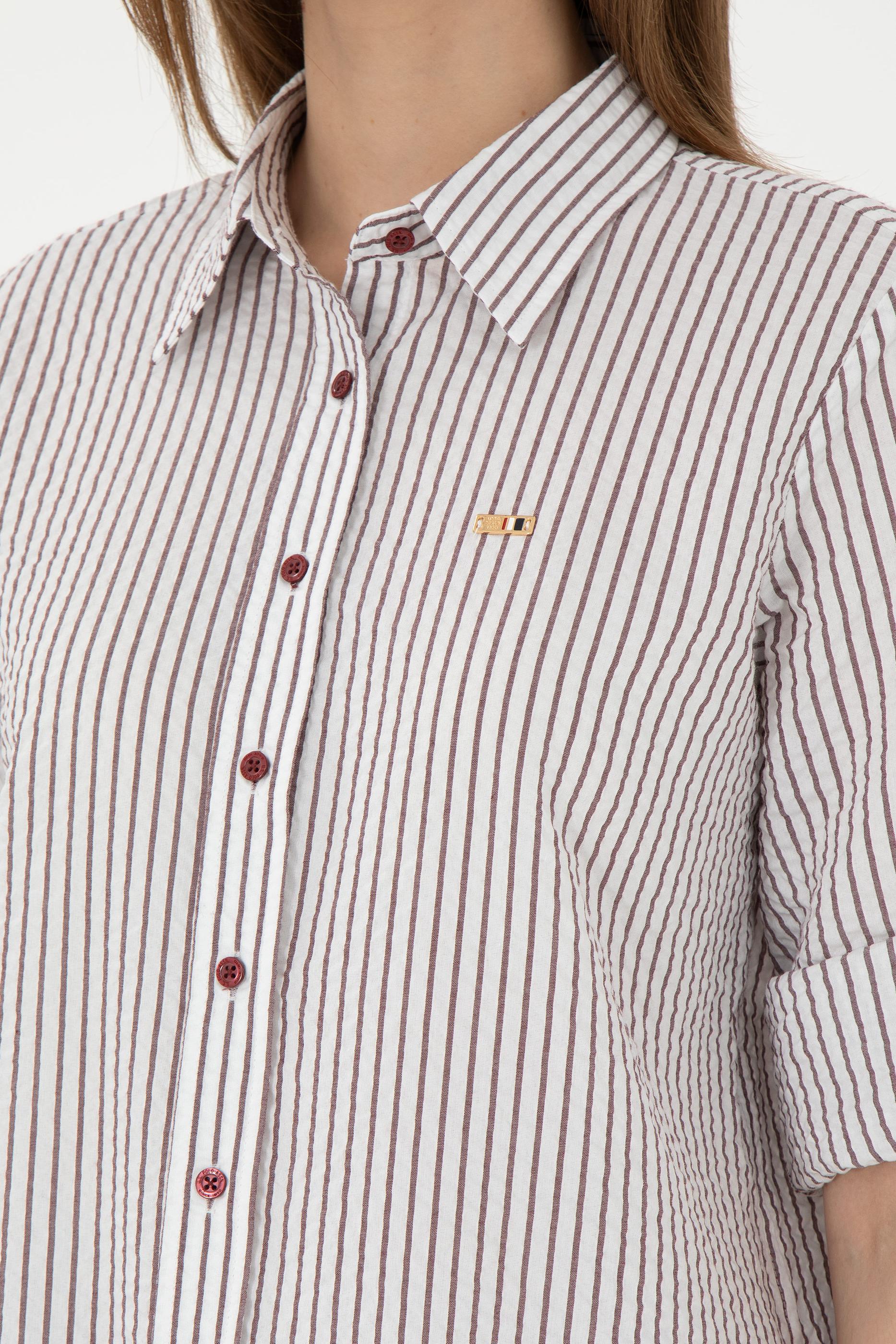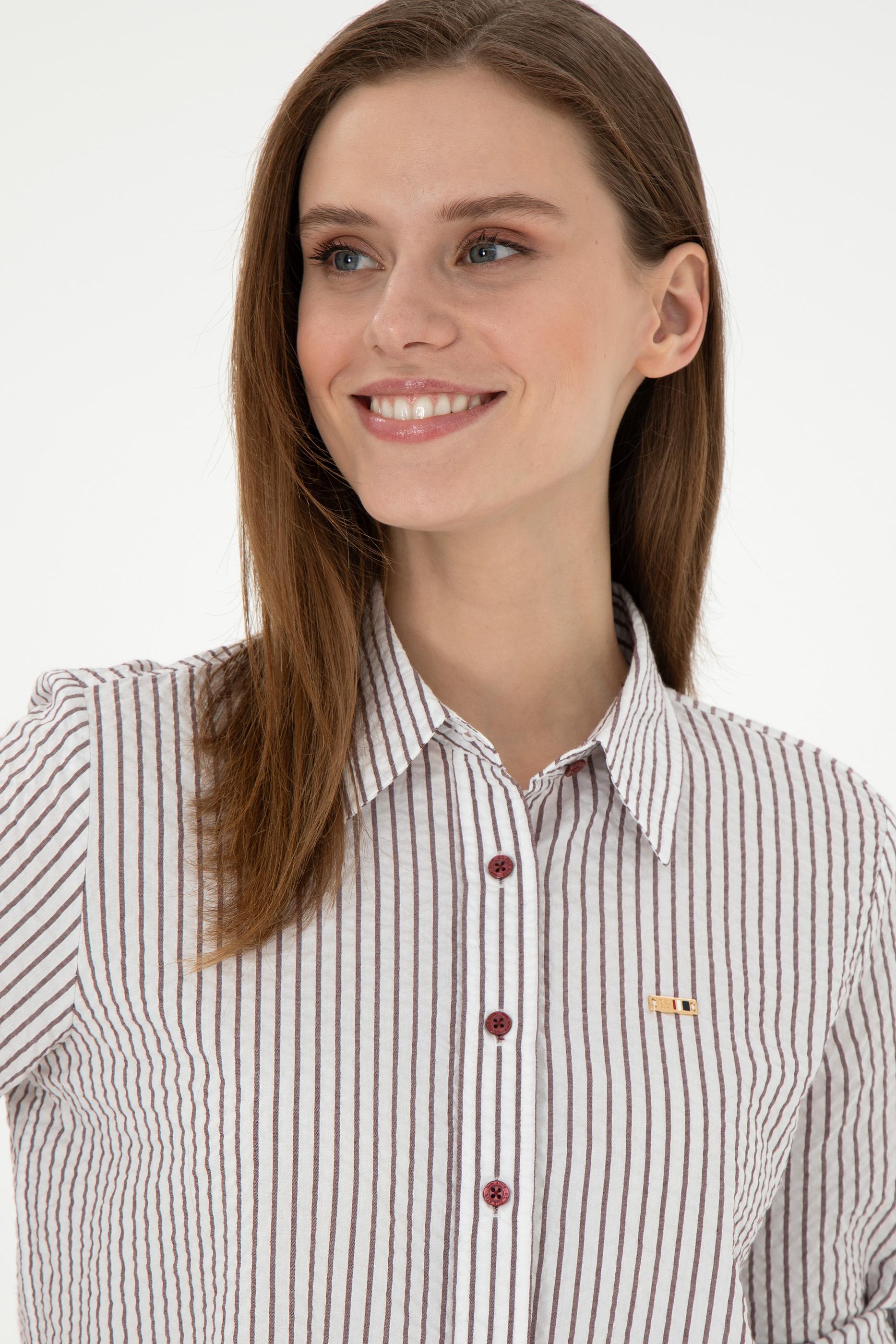 Kadın Bordo Uzun Kollu Çizgili Gömlek - 50297106020
