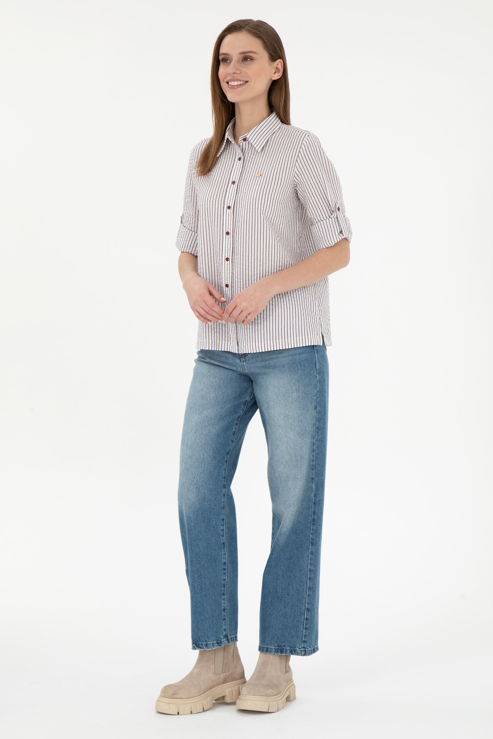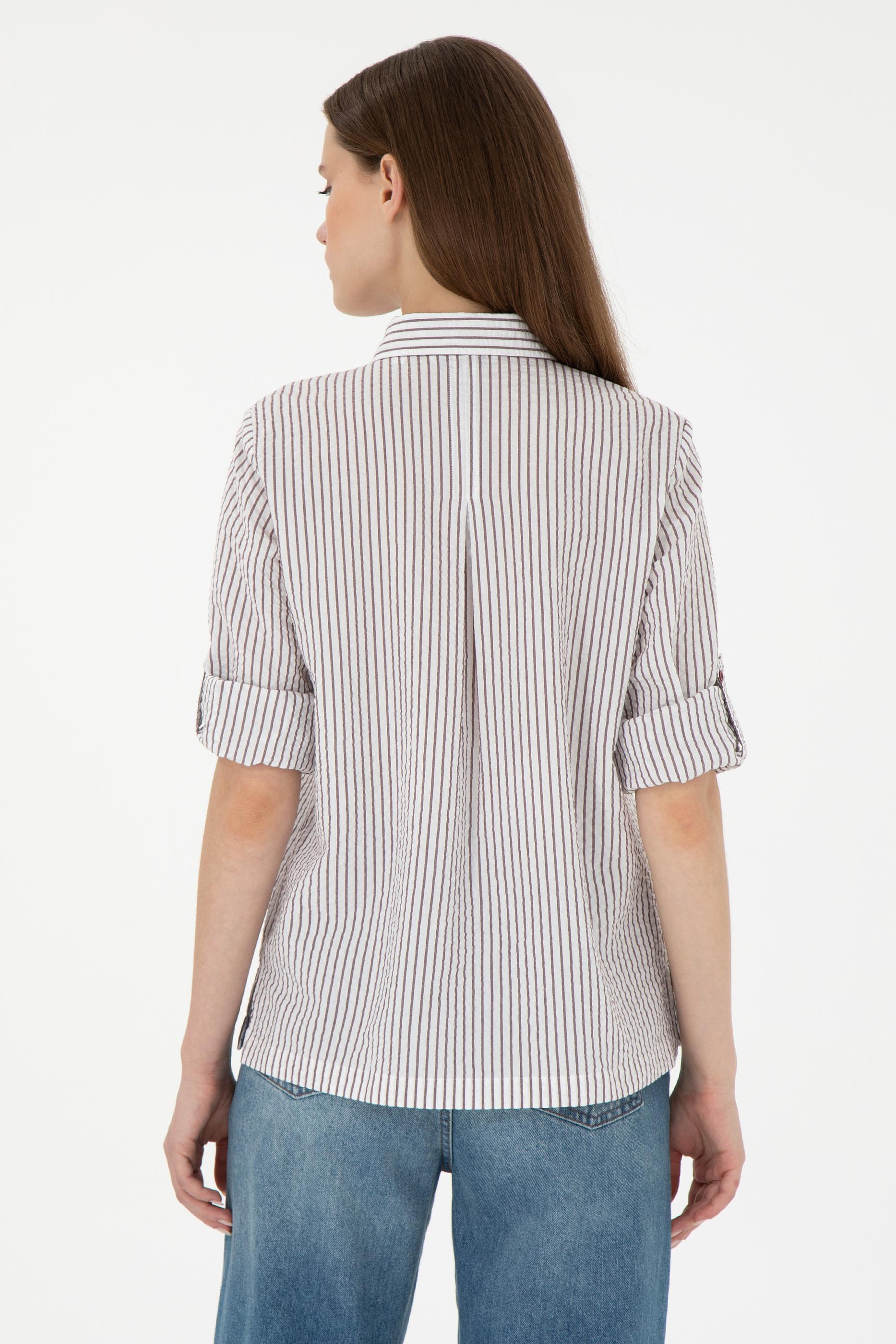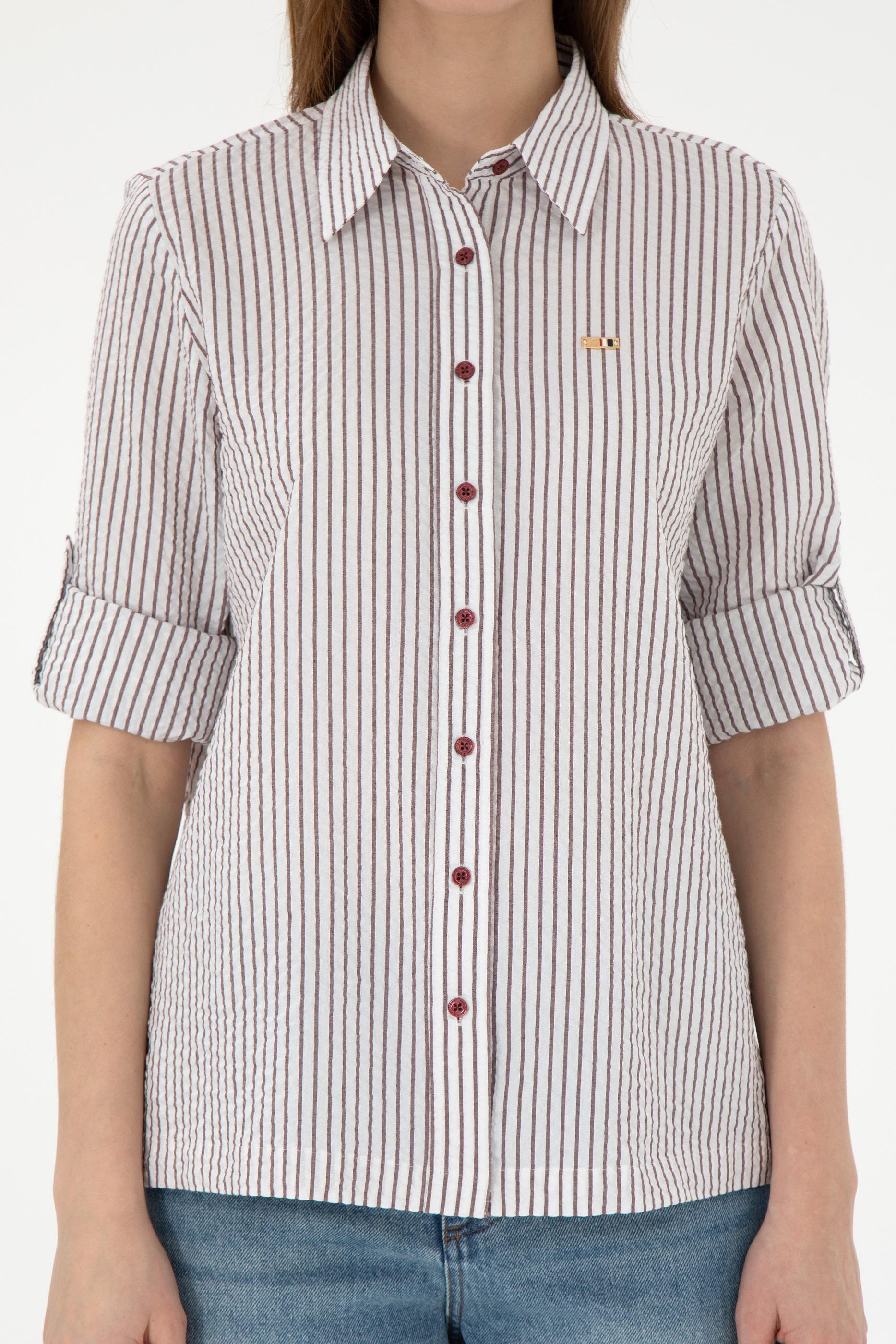Kadın Bordo Uzun Kollu Çizgili Gömlek - 50297106020