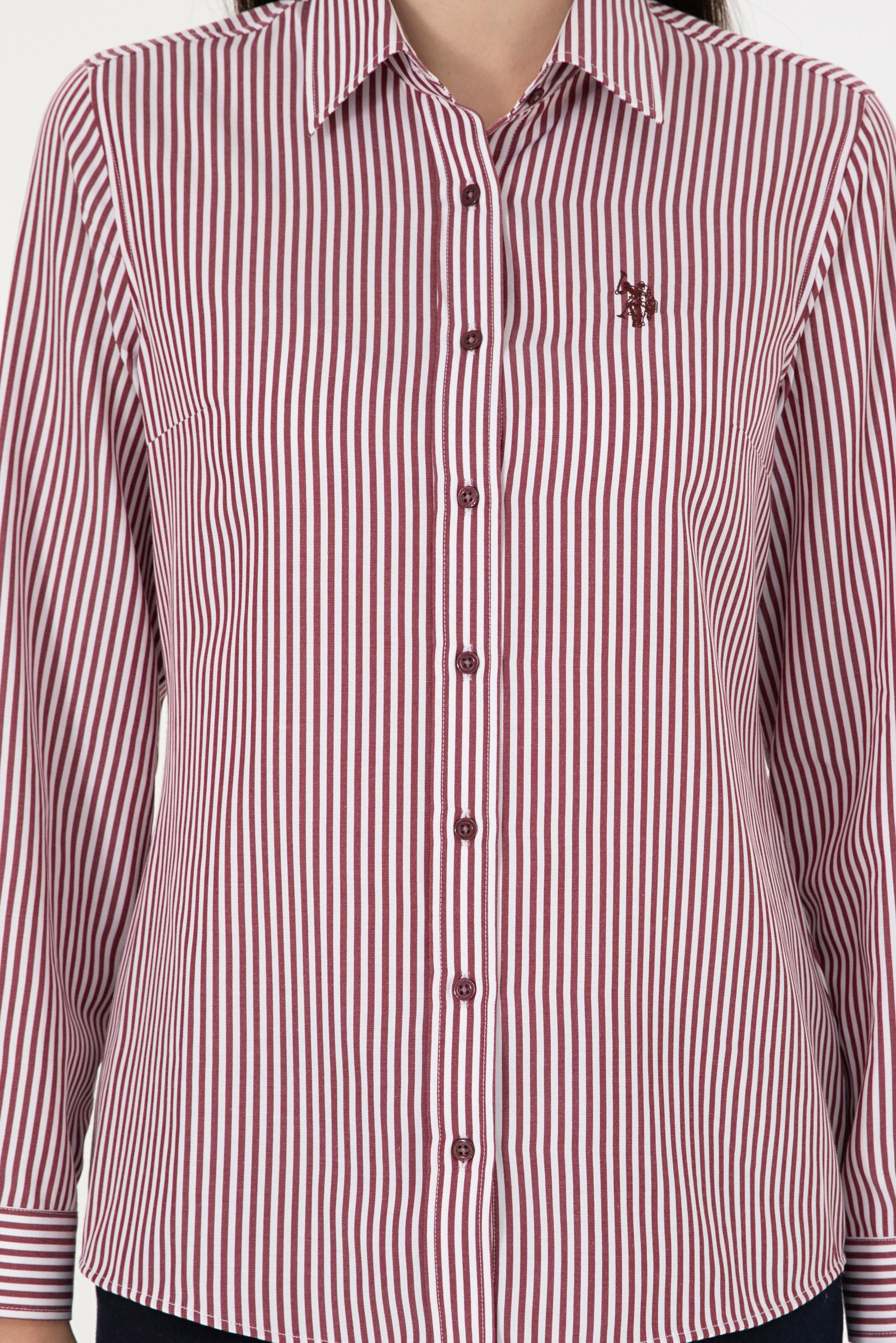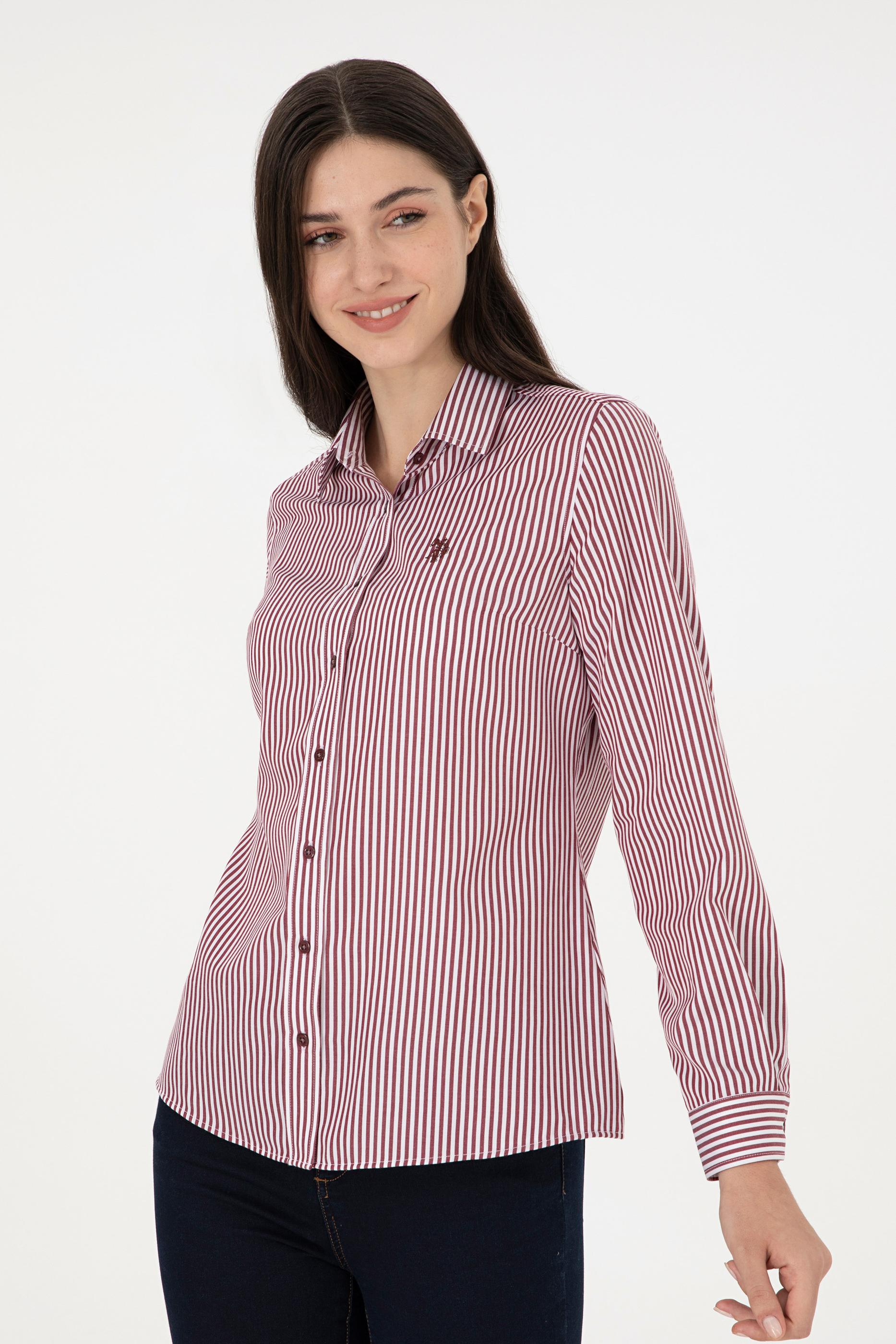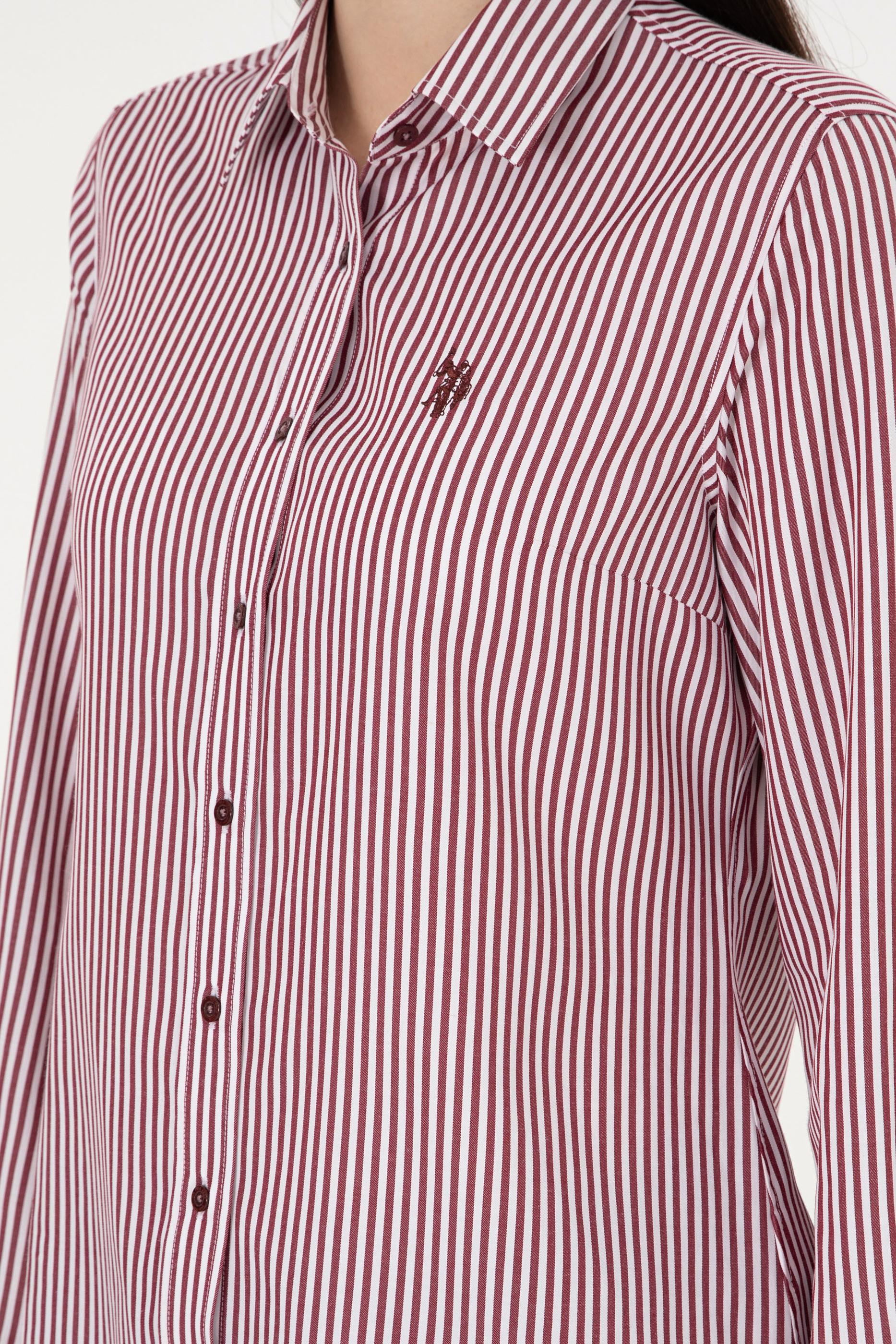 Kadın Bordo Uzun Kollu Çizgili Gömlek