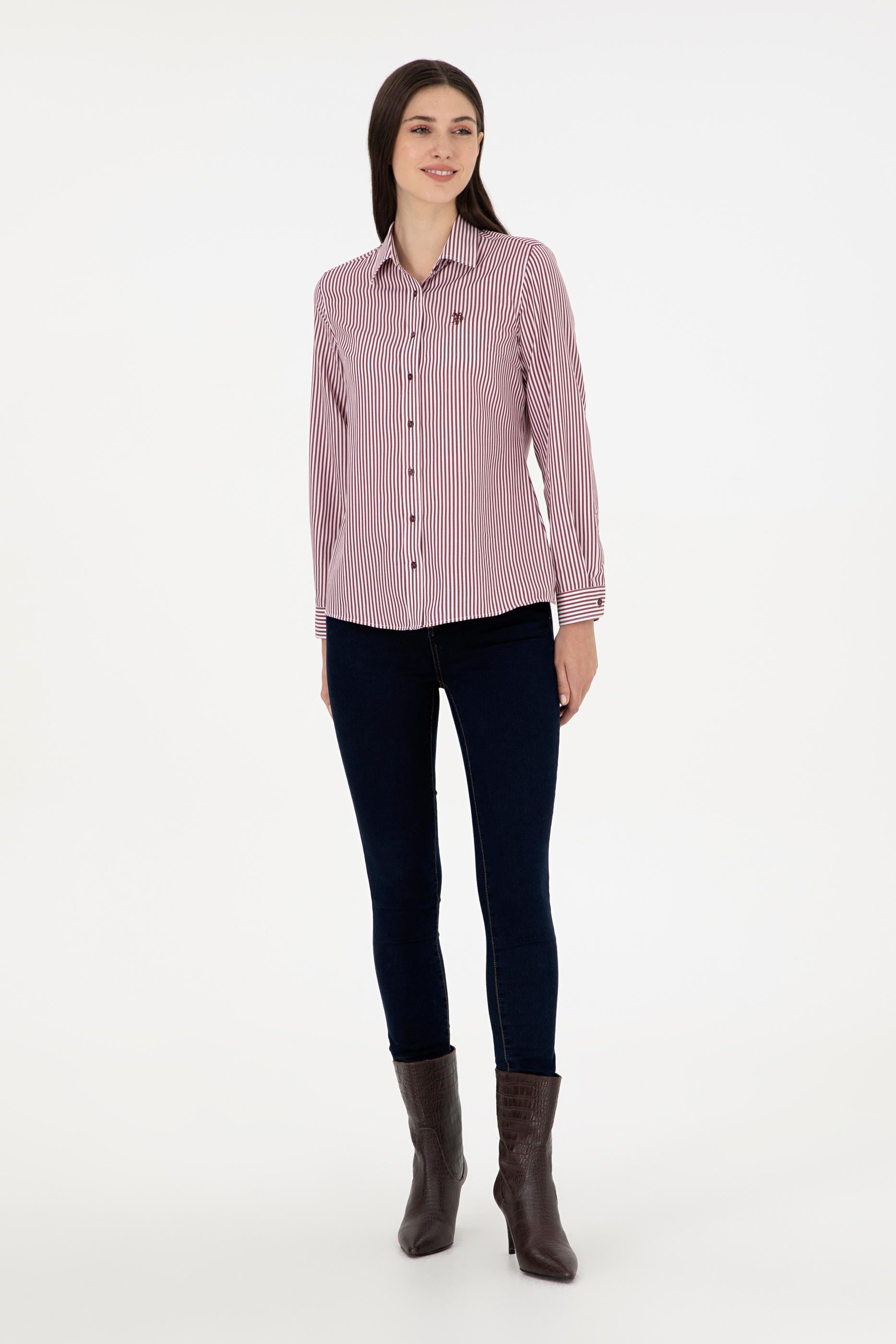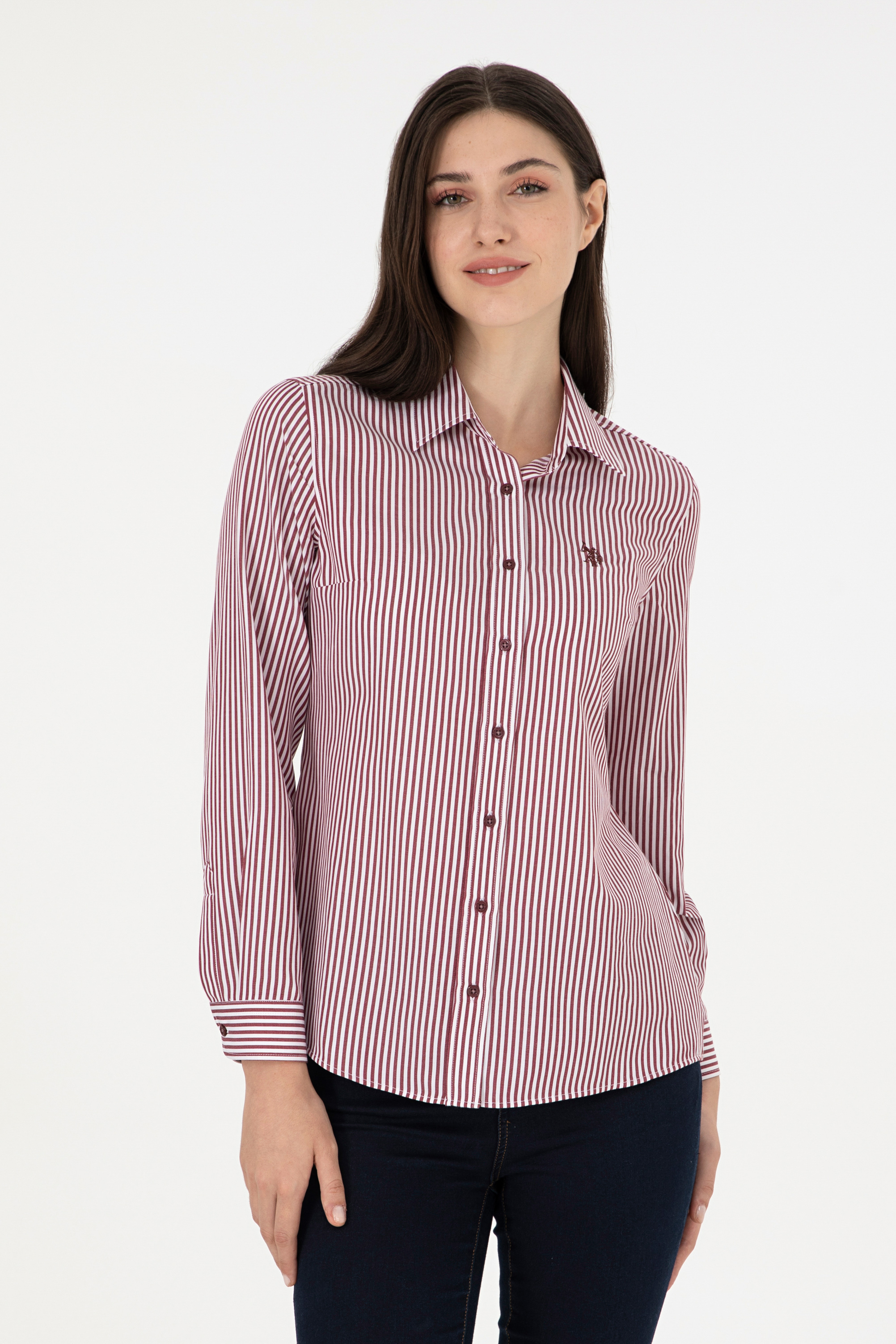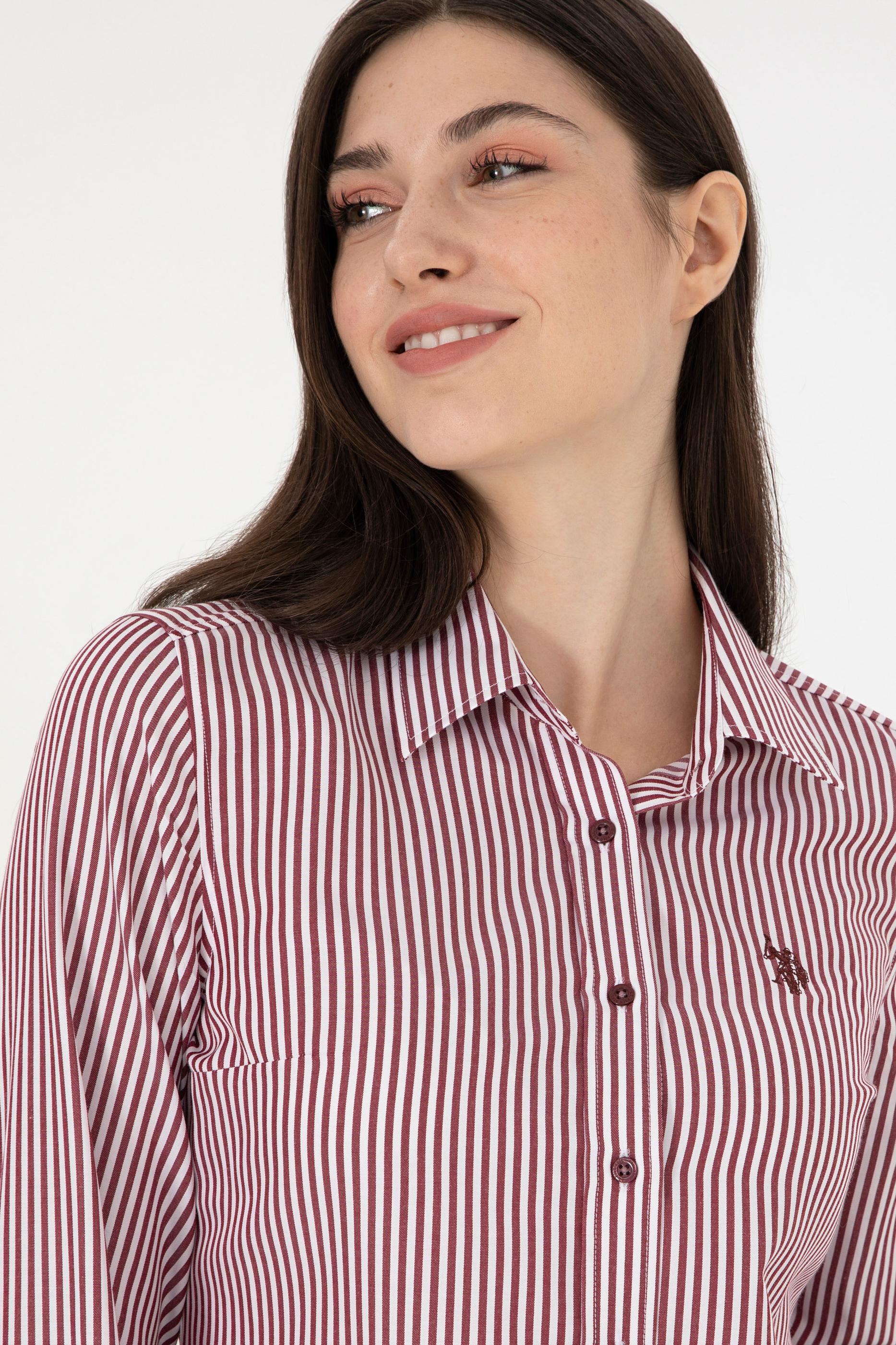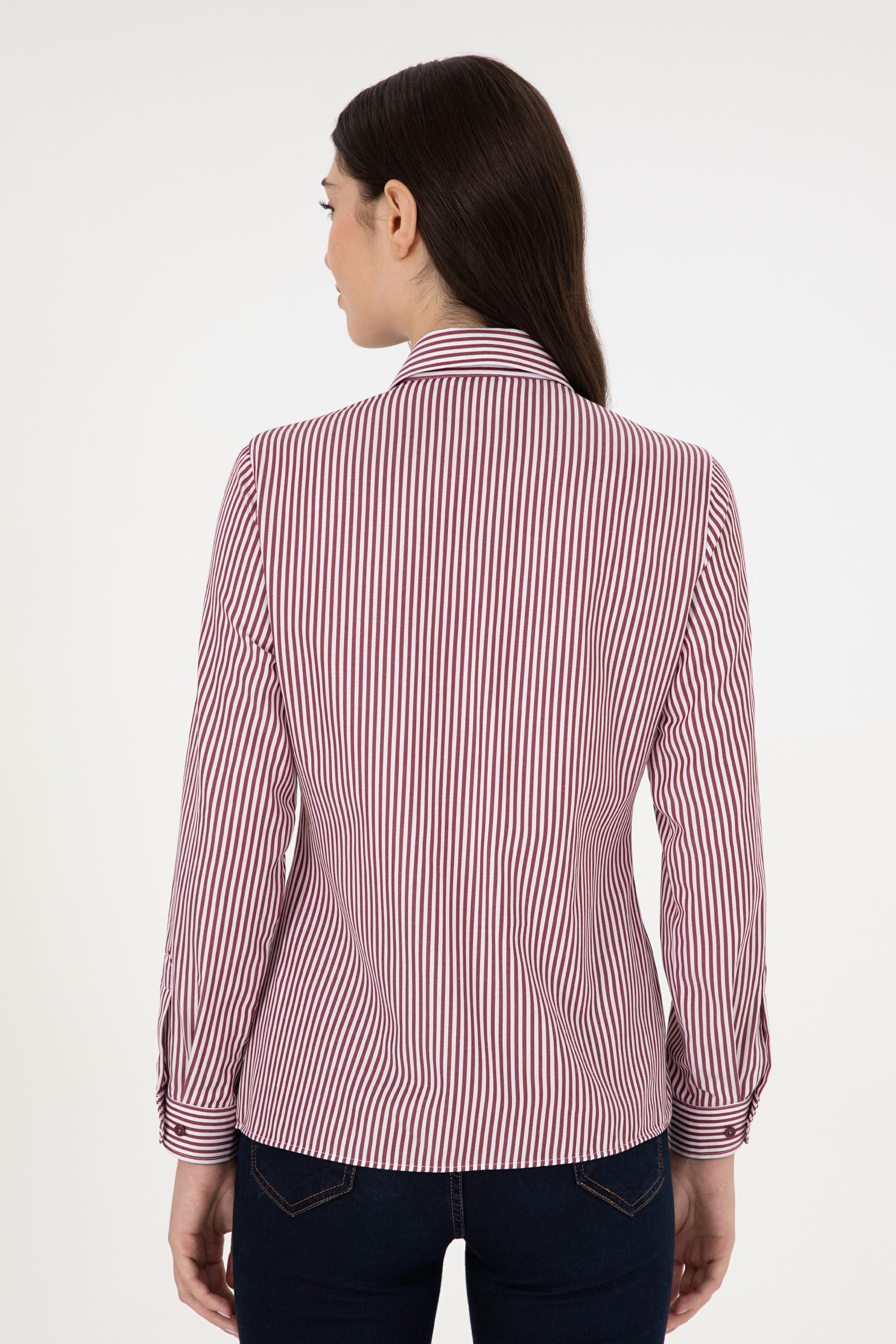 Kadın Bordo Uzun Kollu Çizgili Gömlek