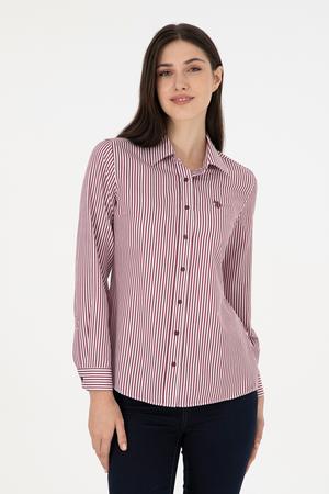 - Kadın Bordo Uzun Kollu Çizgili Gömlek