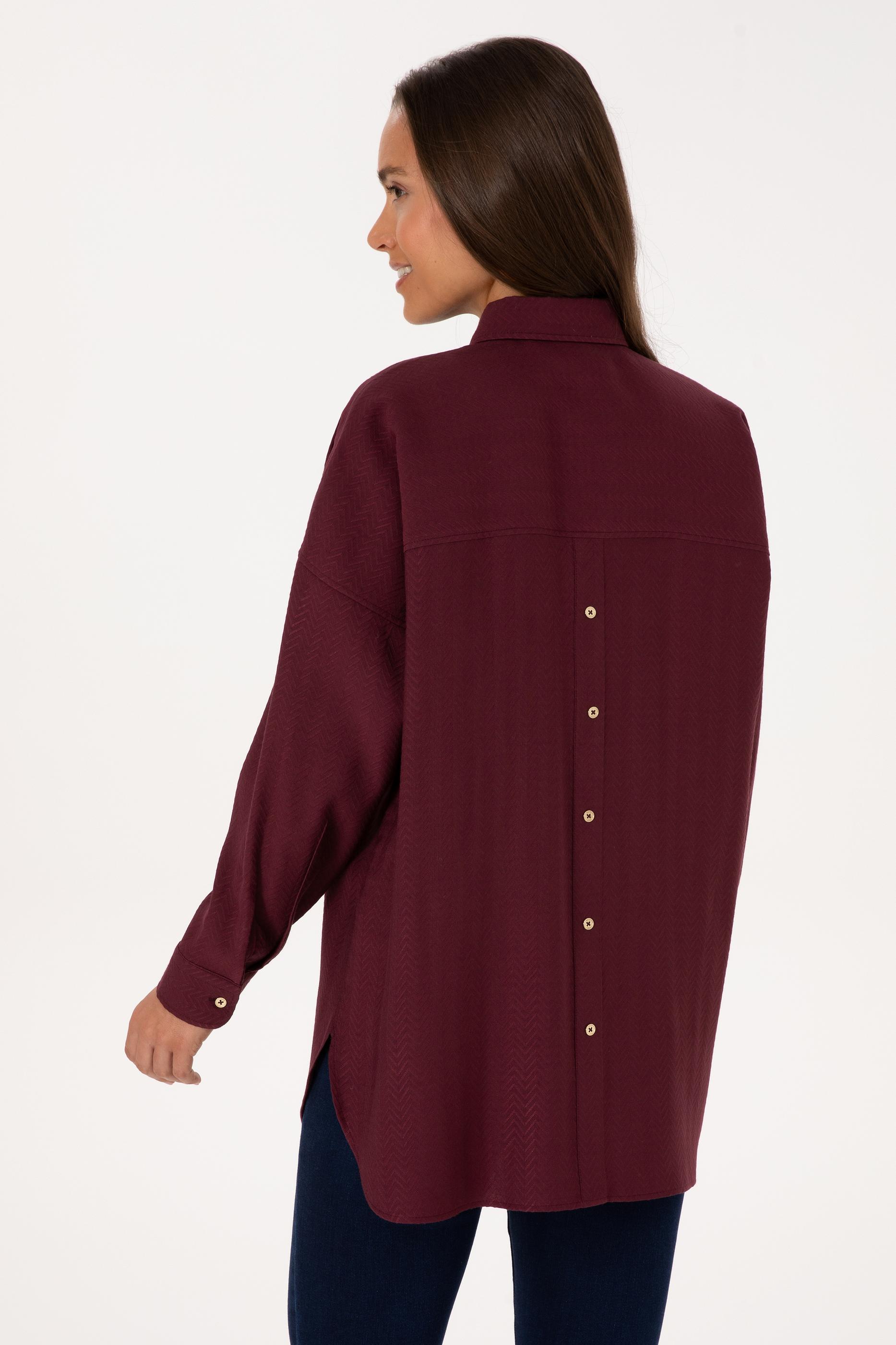 - Kadın Bordo Uzun Kollu Oversize Desenli Gömlek
