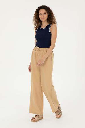 Kadın Camel Loose Relax Fit Kanvas Pantolon