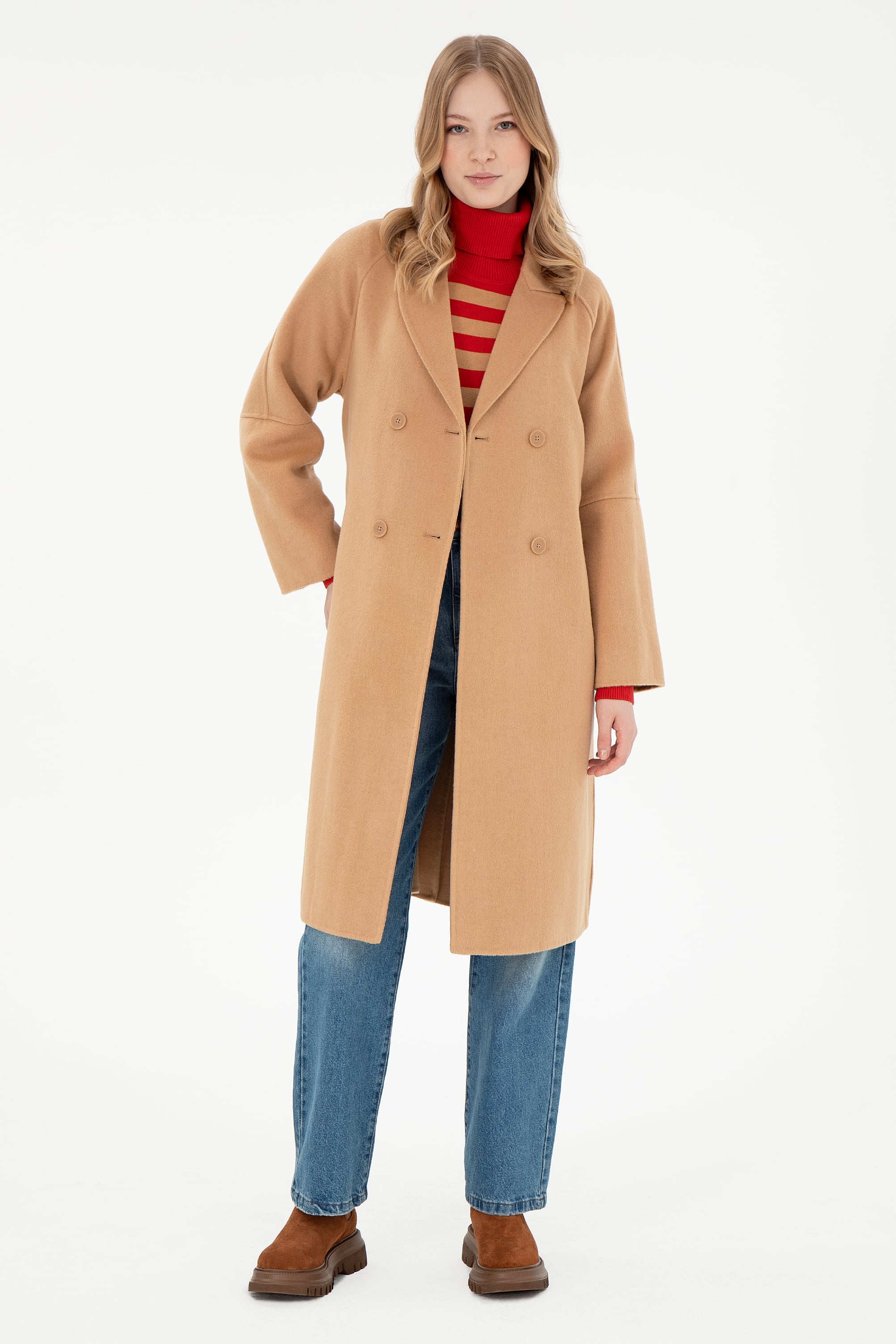 Kadın Camel Kaşe Kaban