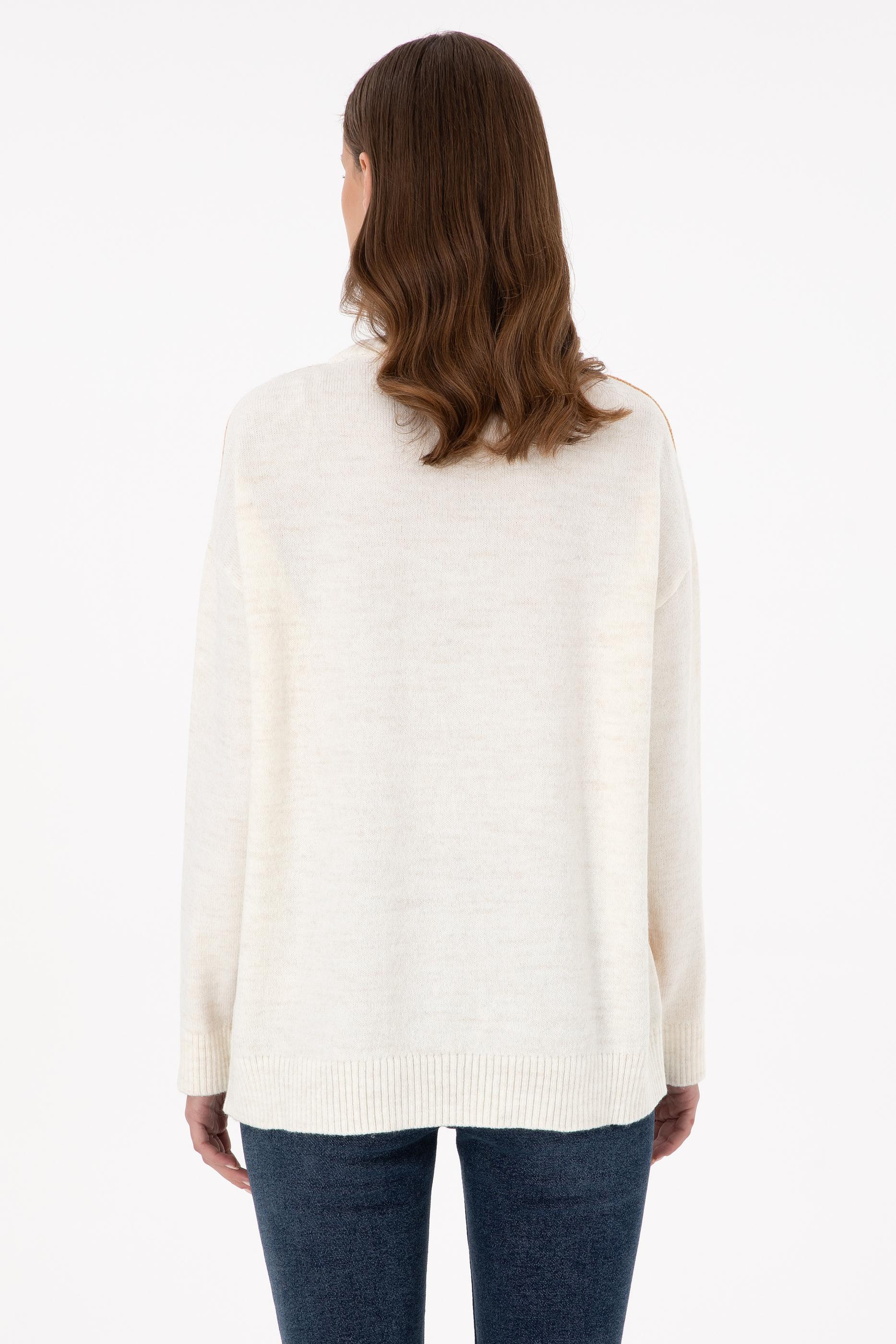 Kadın Camel Melanj Bisiklet Yaka Kazak